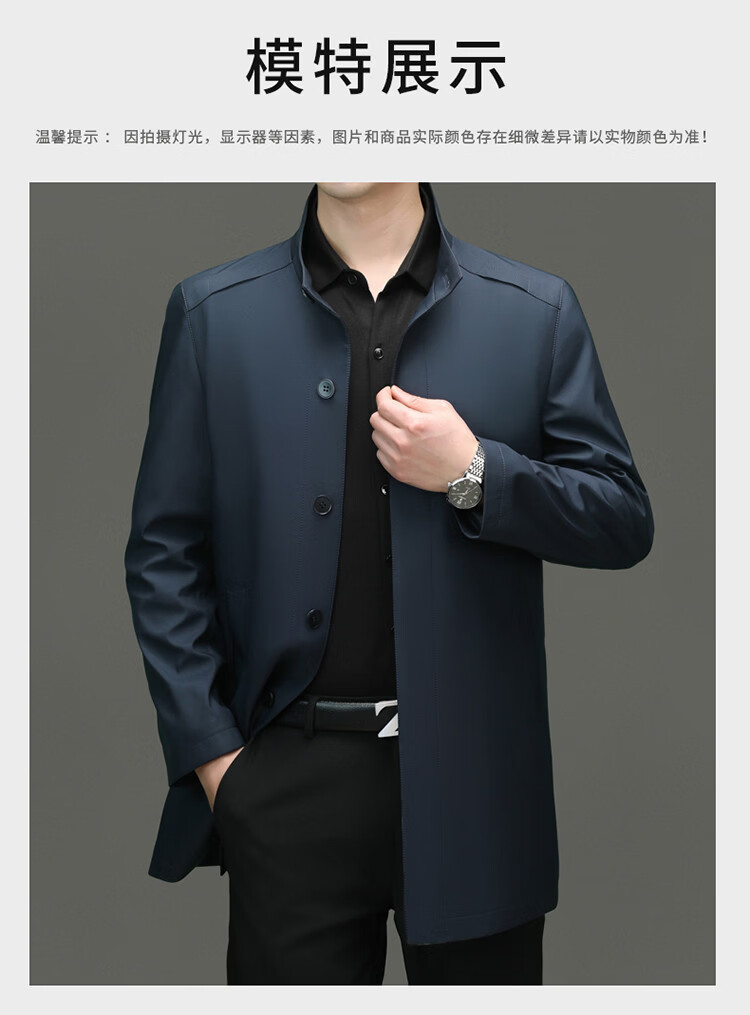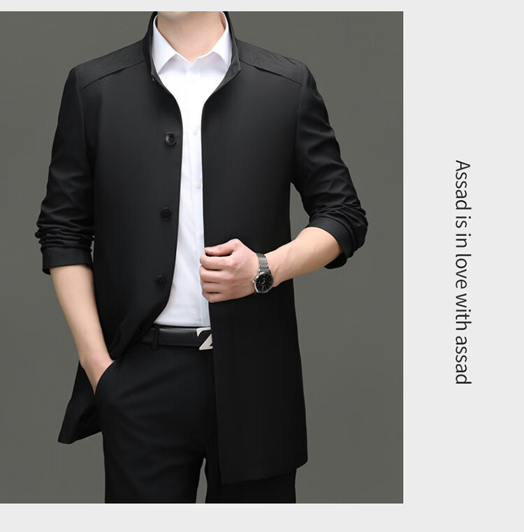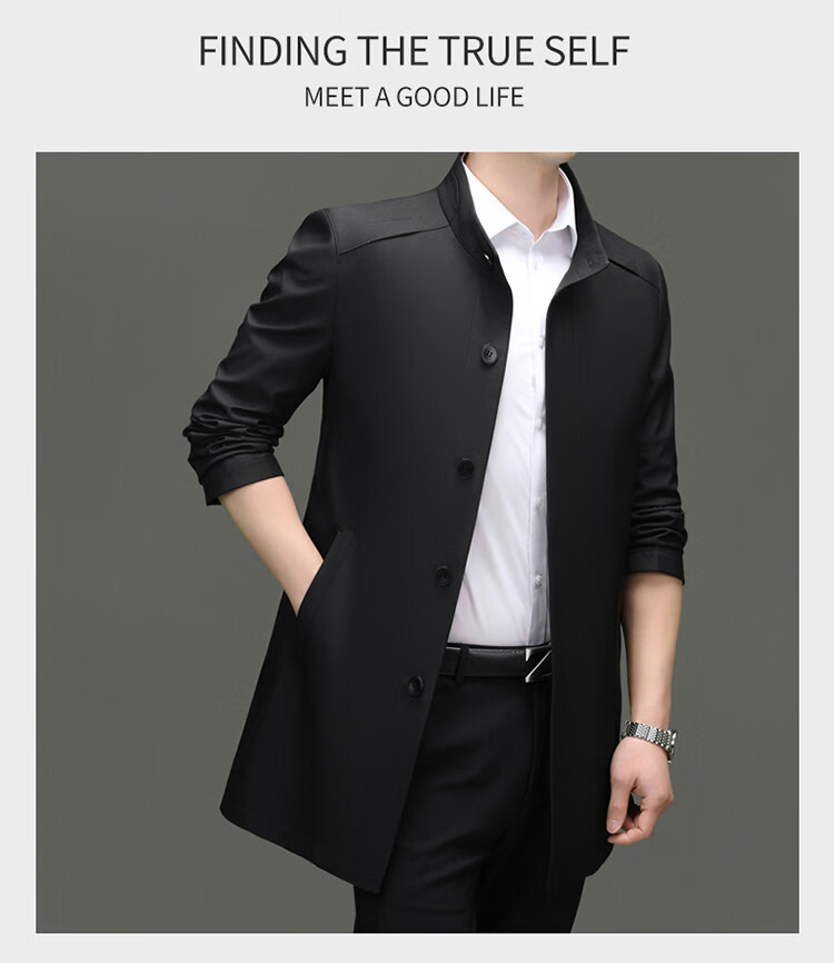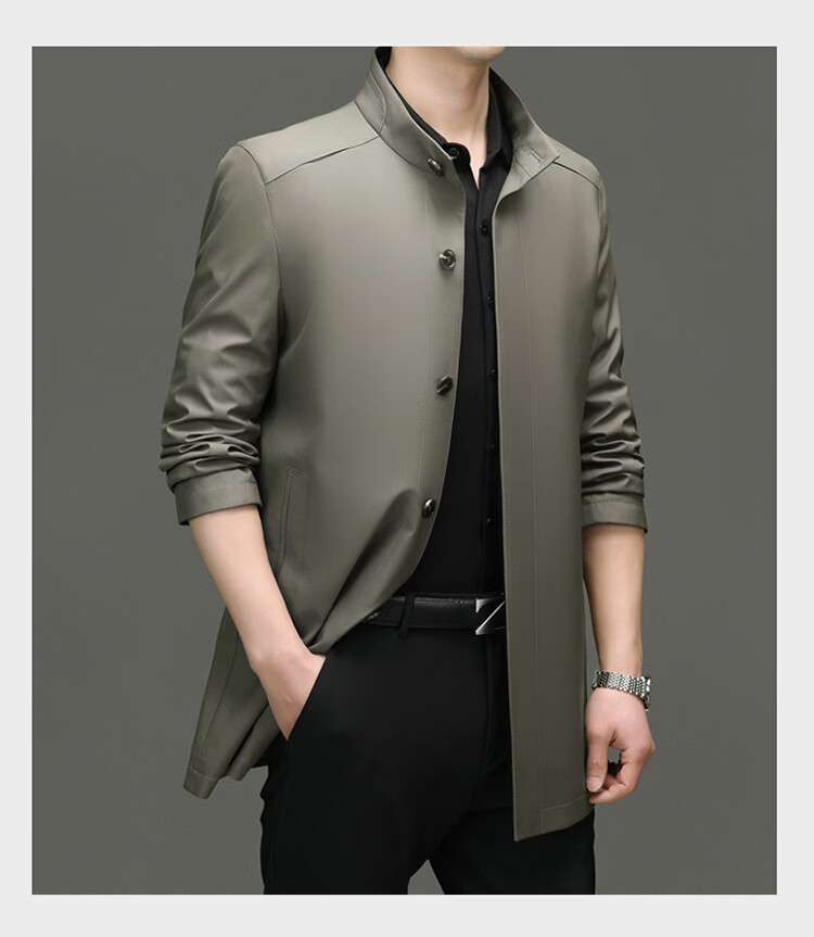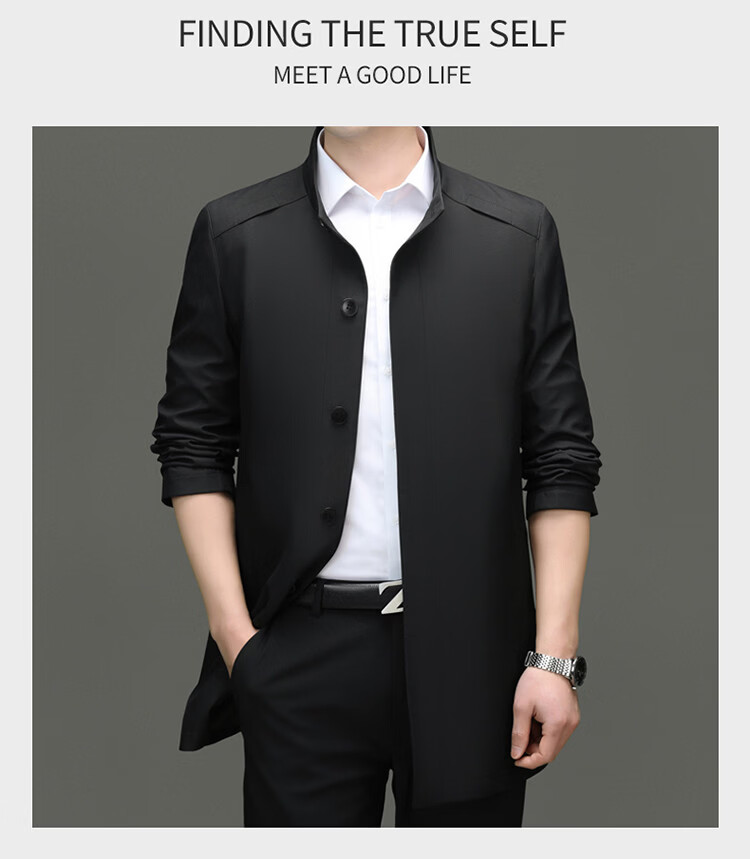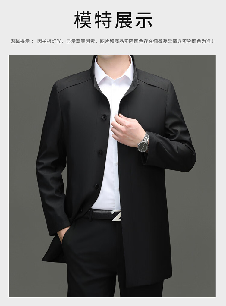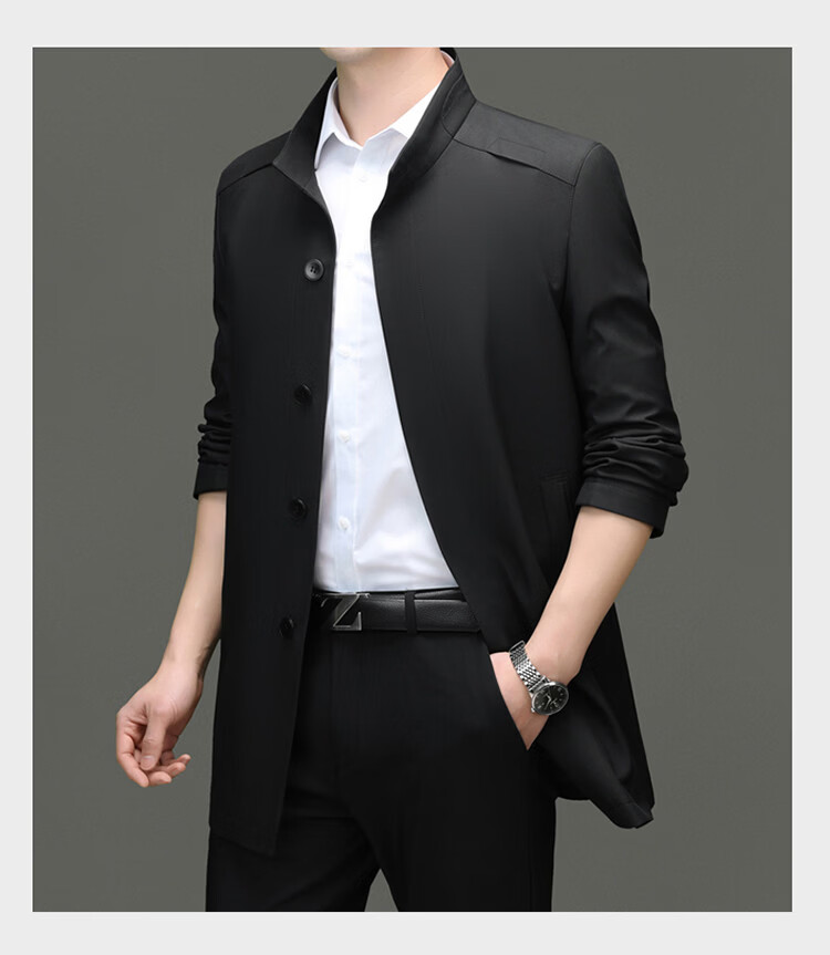 ROMON mid-length windbreaker men's spring and autumn new middle-aged dad business casual stand-up collar jacket men's top black M