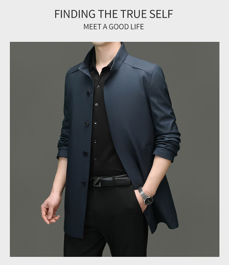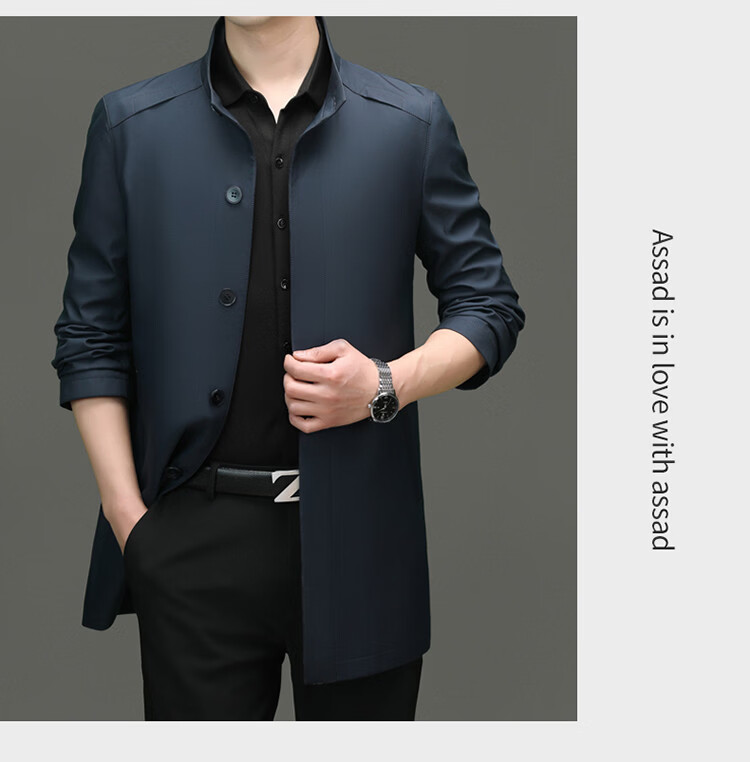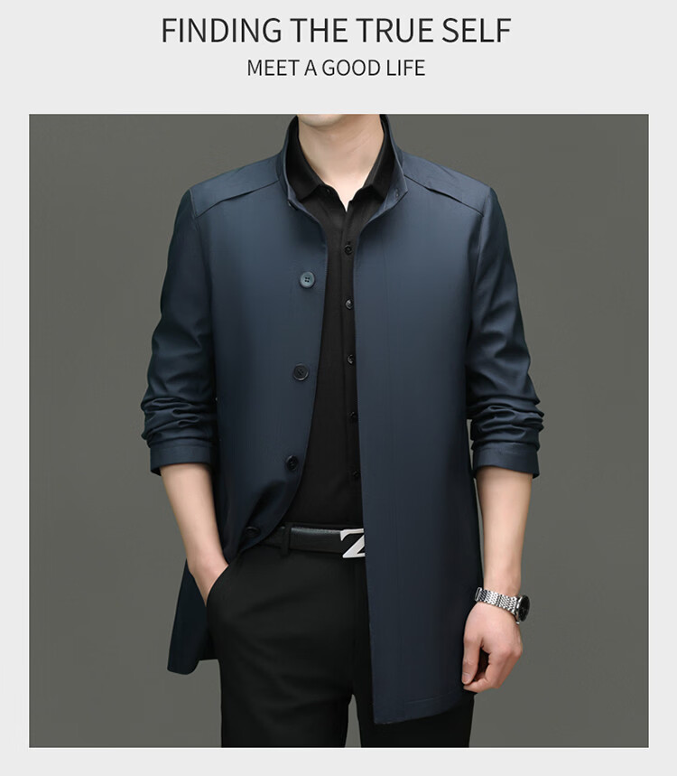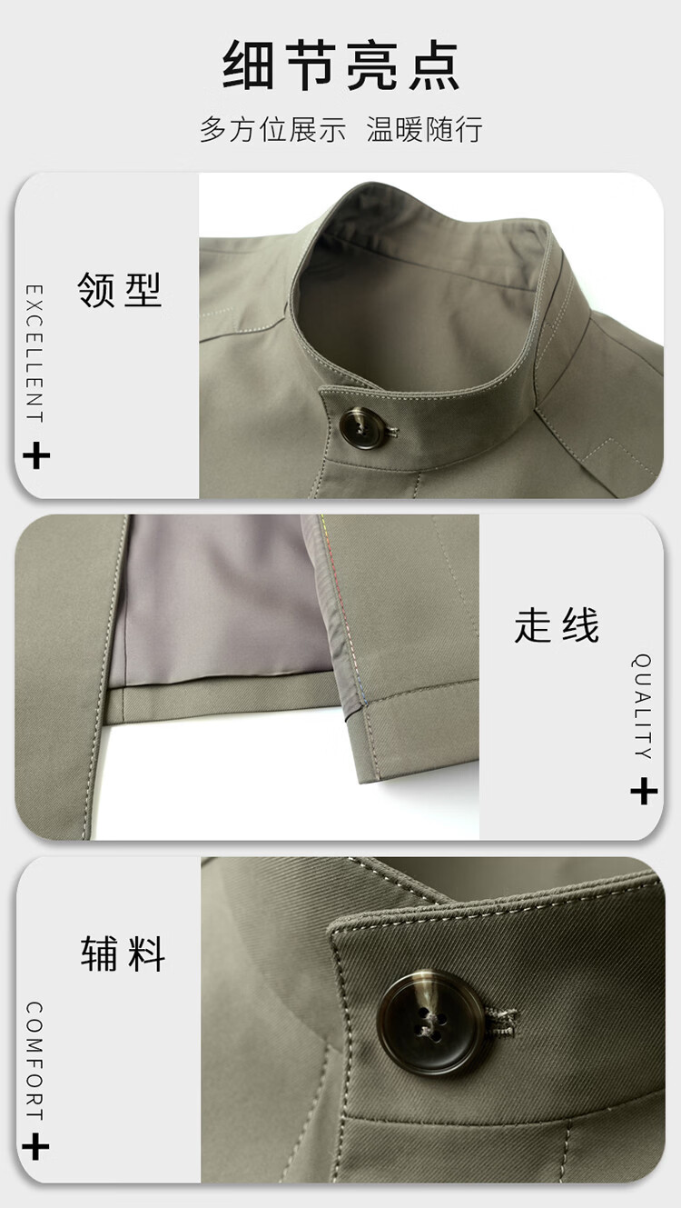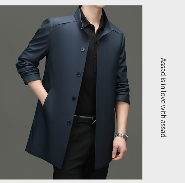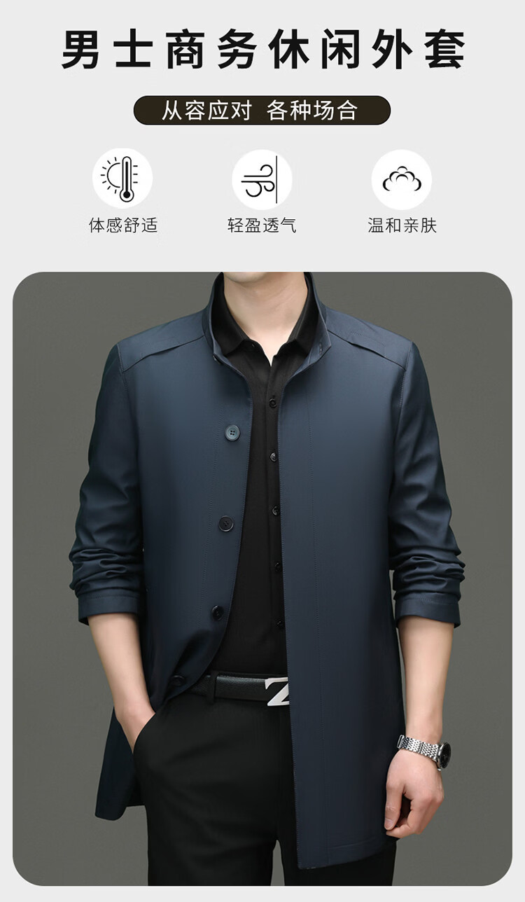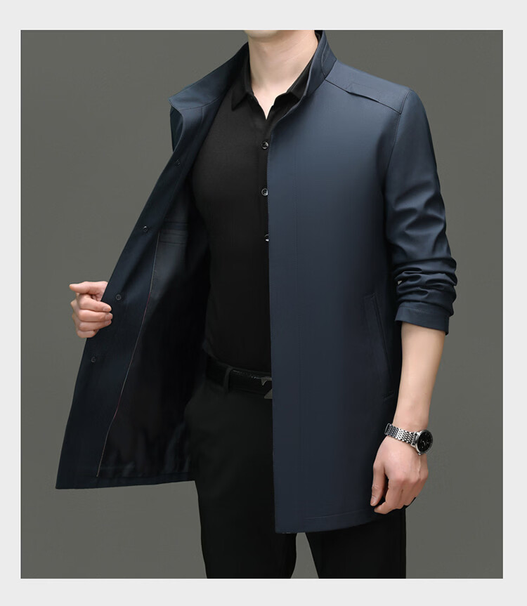 ROMON mid-length windbreaker men's spring and autumn new middle-aged dad business casual stand-up collar jacket men's top black M