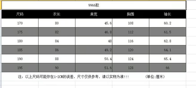 China (cm) 165 / 88-90 170 / 96-98 175 / 108-110 180 / 118-122 185 / 126-130