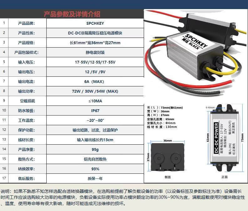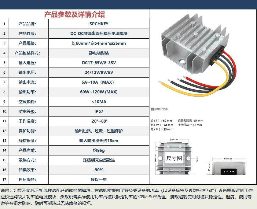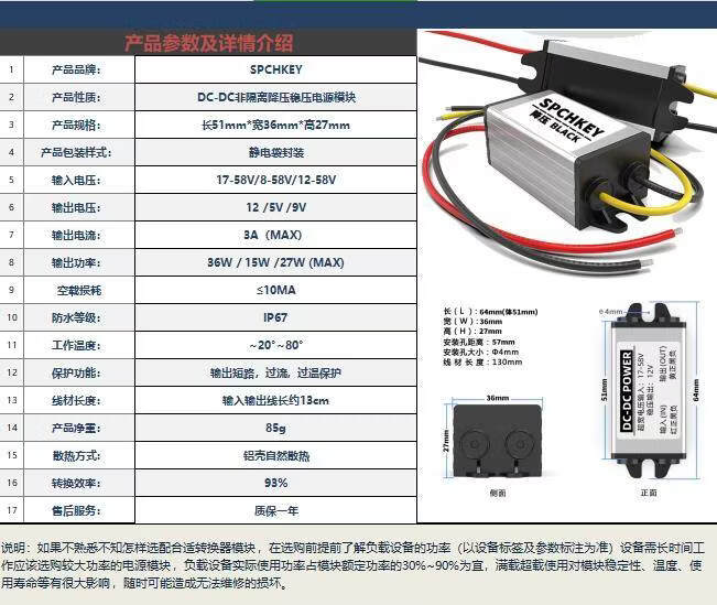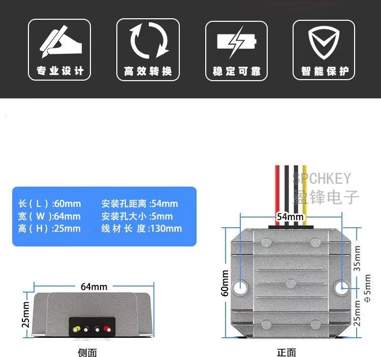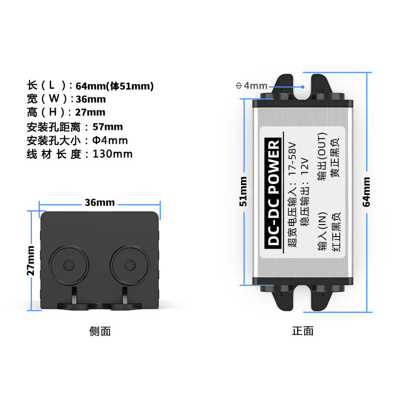 DC vehicle transformer 60V48V24V to 12V3A5A10A20A DC regulated power supply converter step-down module yellow