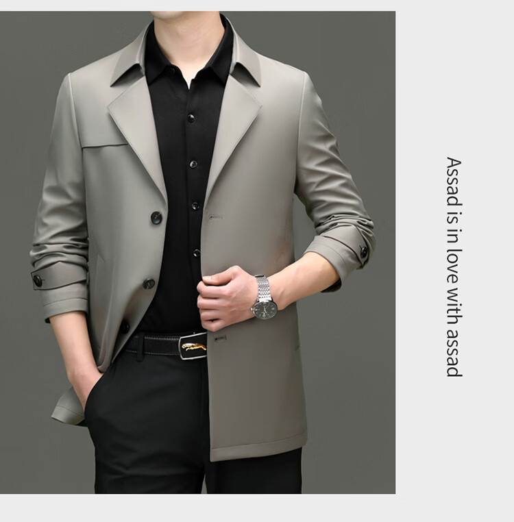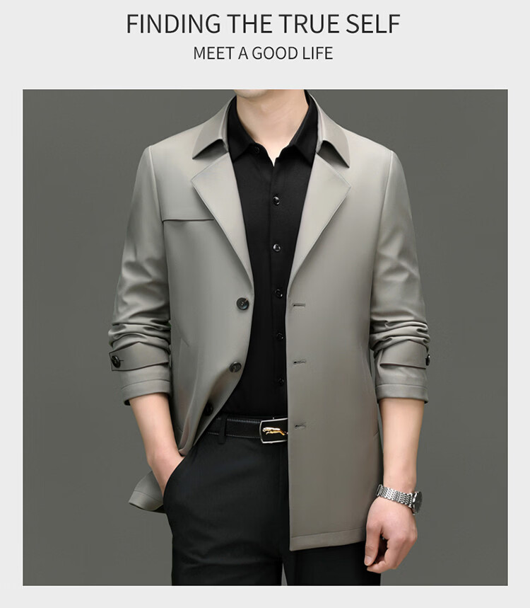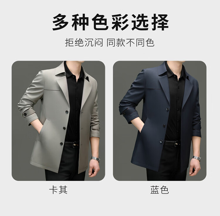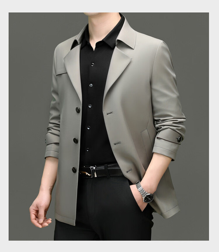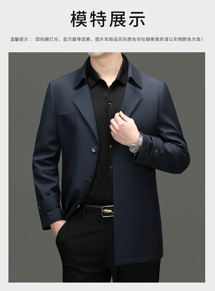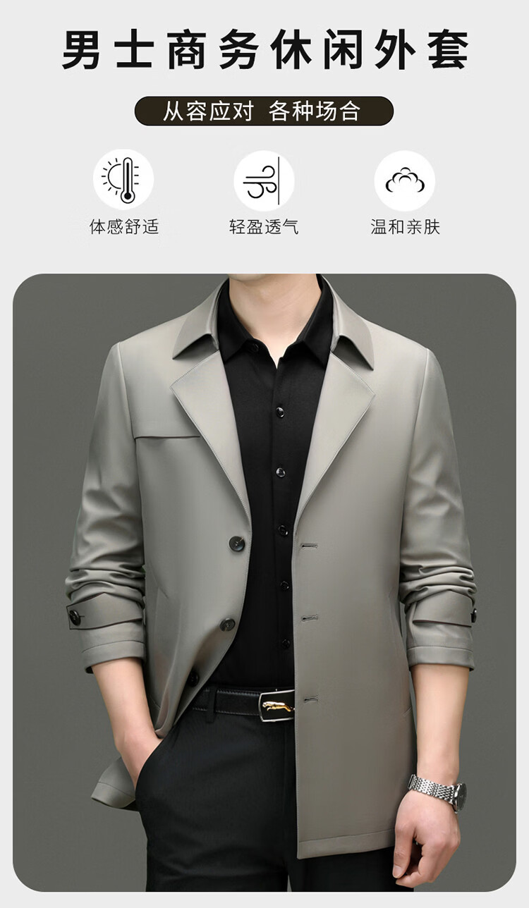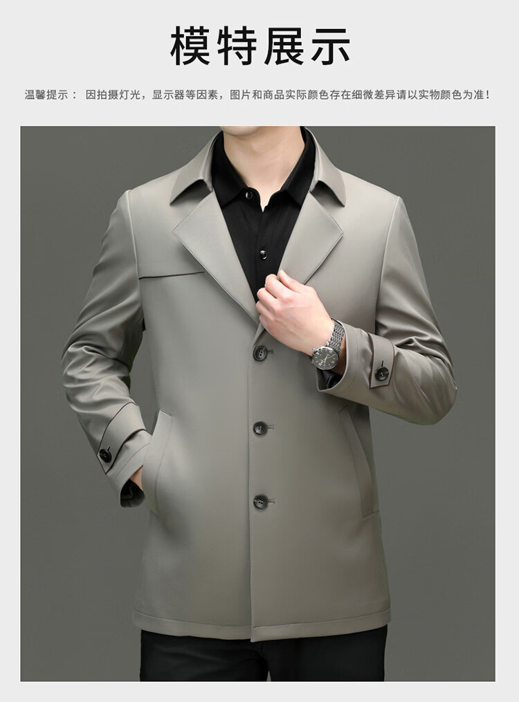 ROMON high-end mulberry silk windbreaker men's mid-length 2026 spring and autumn business casual suit collar jacket middle-aged tops khaki M 170