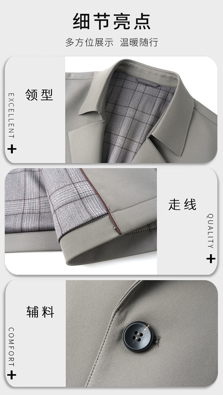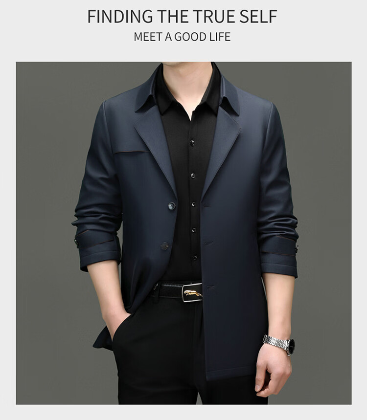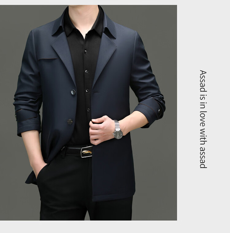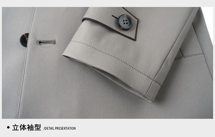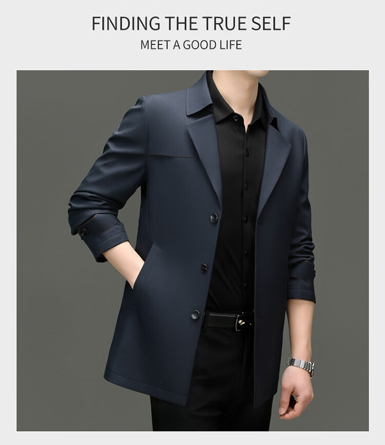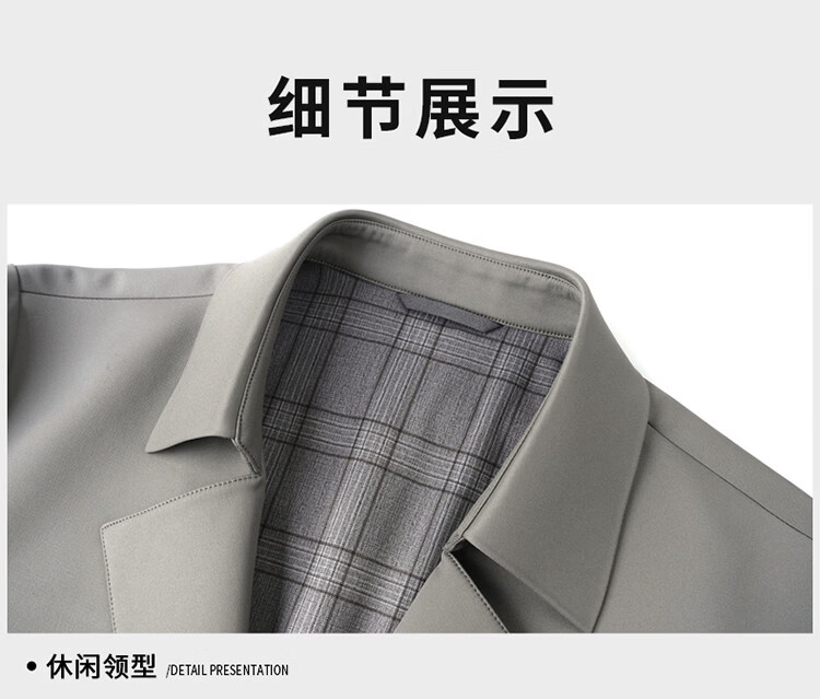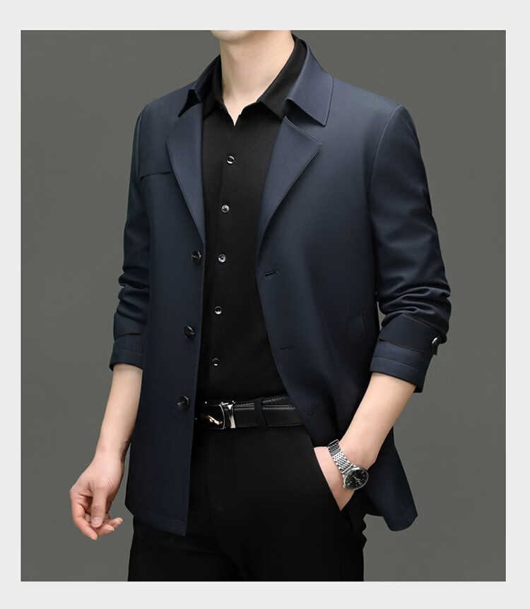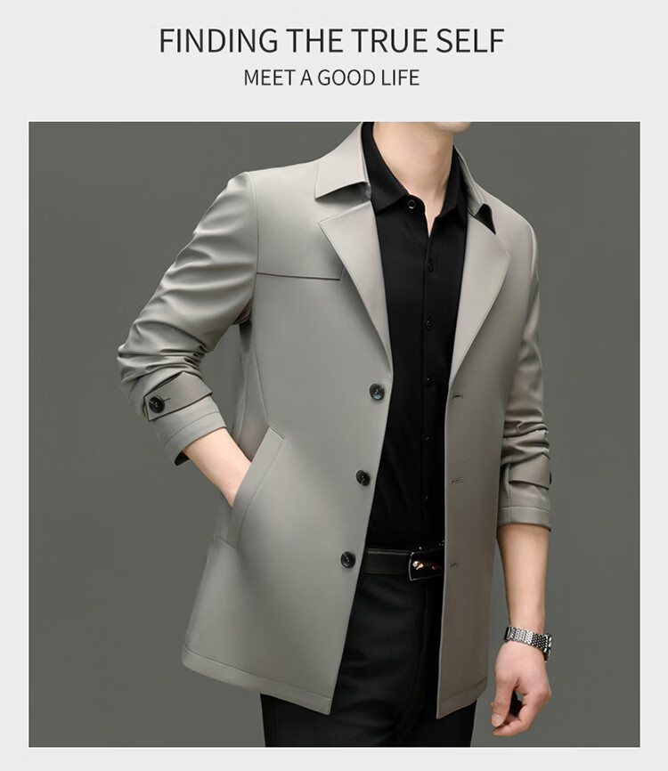 ROMON high-end mulberry silk windbreaker men's mid-length 2026 spring and autumn business casual suit collar jacket middle-aged tops khaki M 170