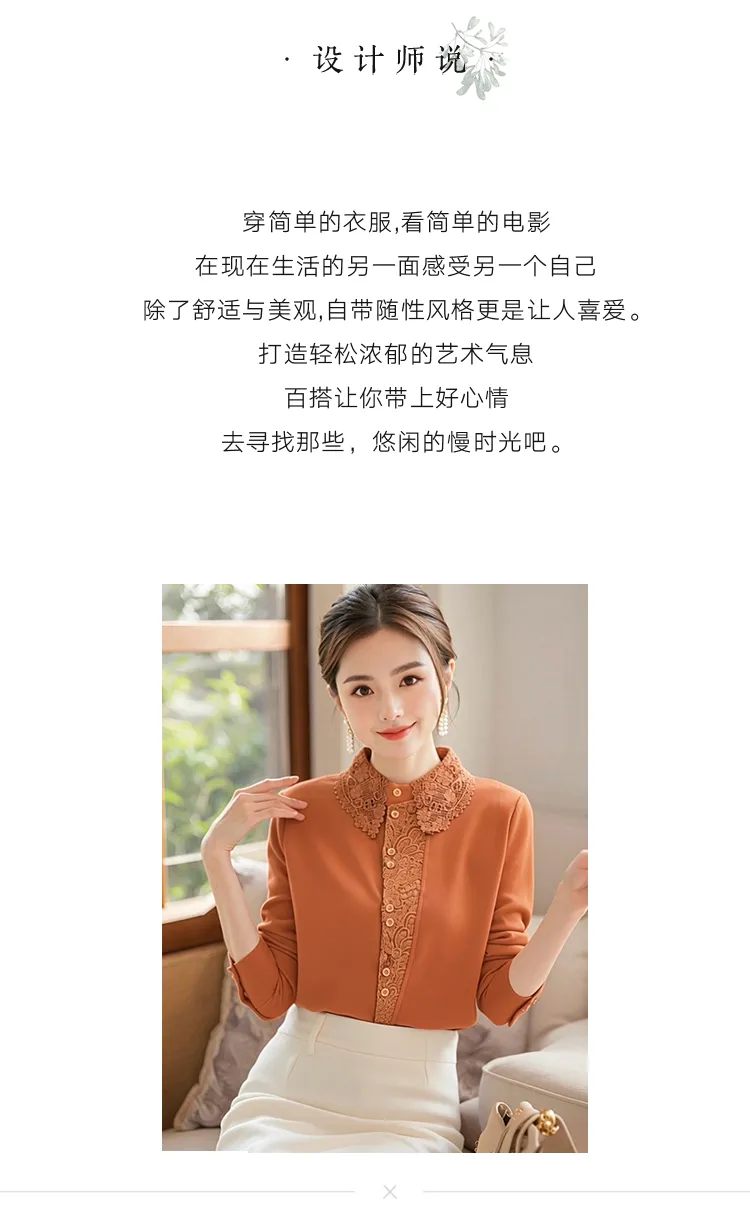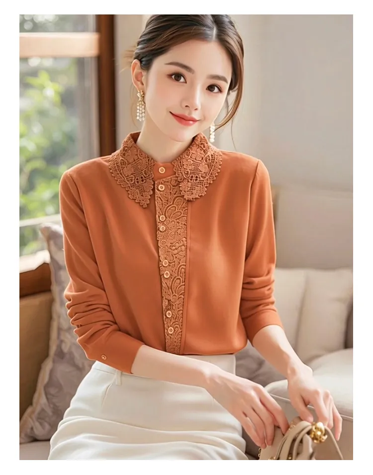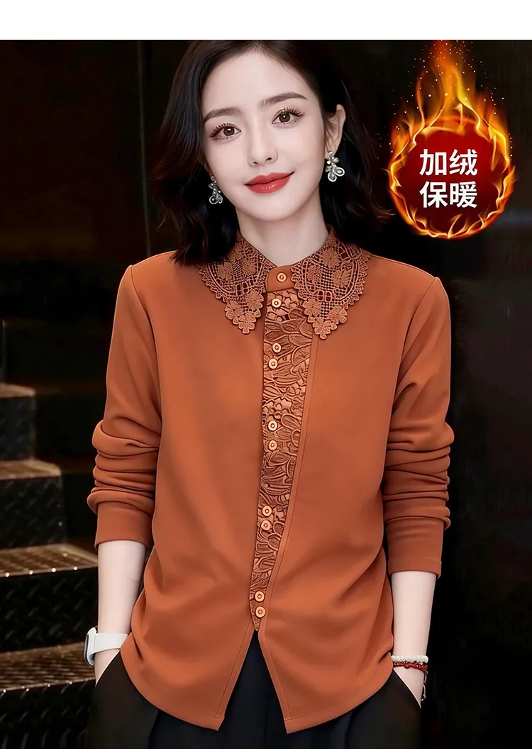 Sudian Women's Original Brand Flagship Store Fashionable and Western Style Velvet Thickened Lace Lapel Waist Revealing Warm Shirt Winter Orange XL