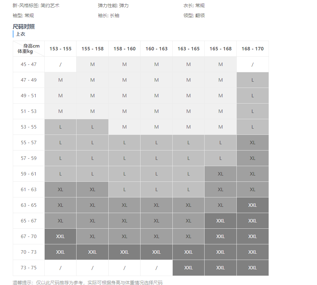 China (cm) 160-165/84-86 165-170 / 88-90 167-172 / 92-96 168-173 / 98-102 170-176 / 106-110