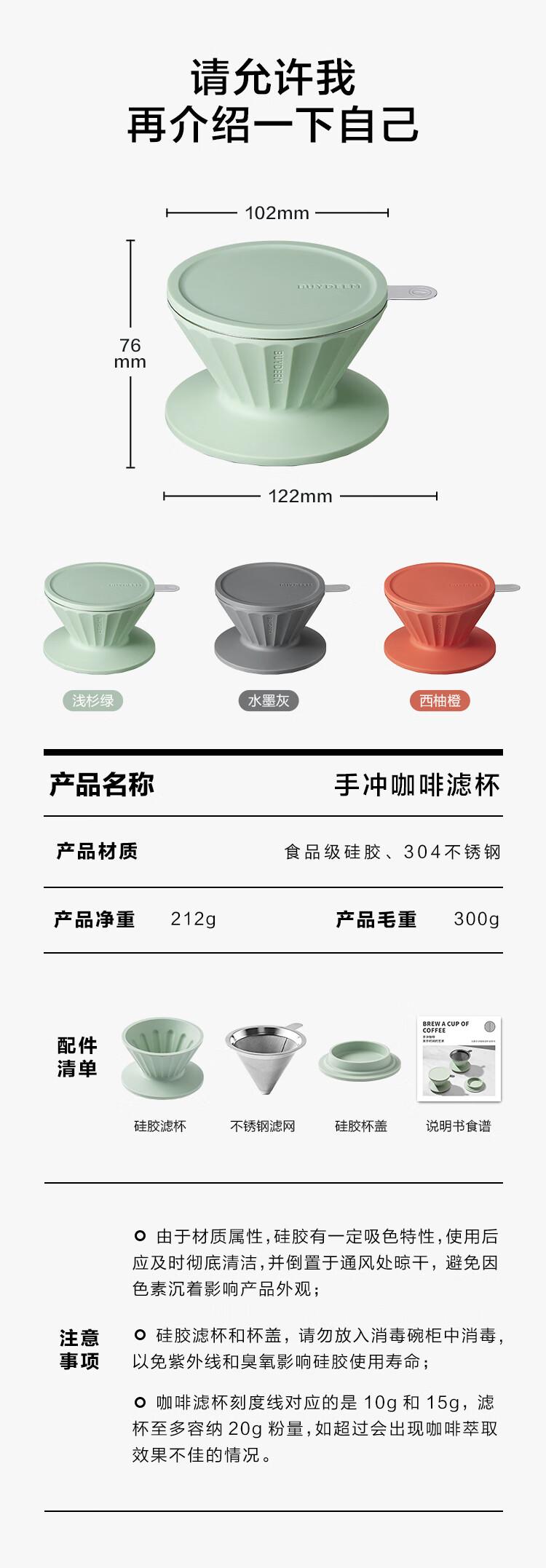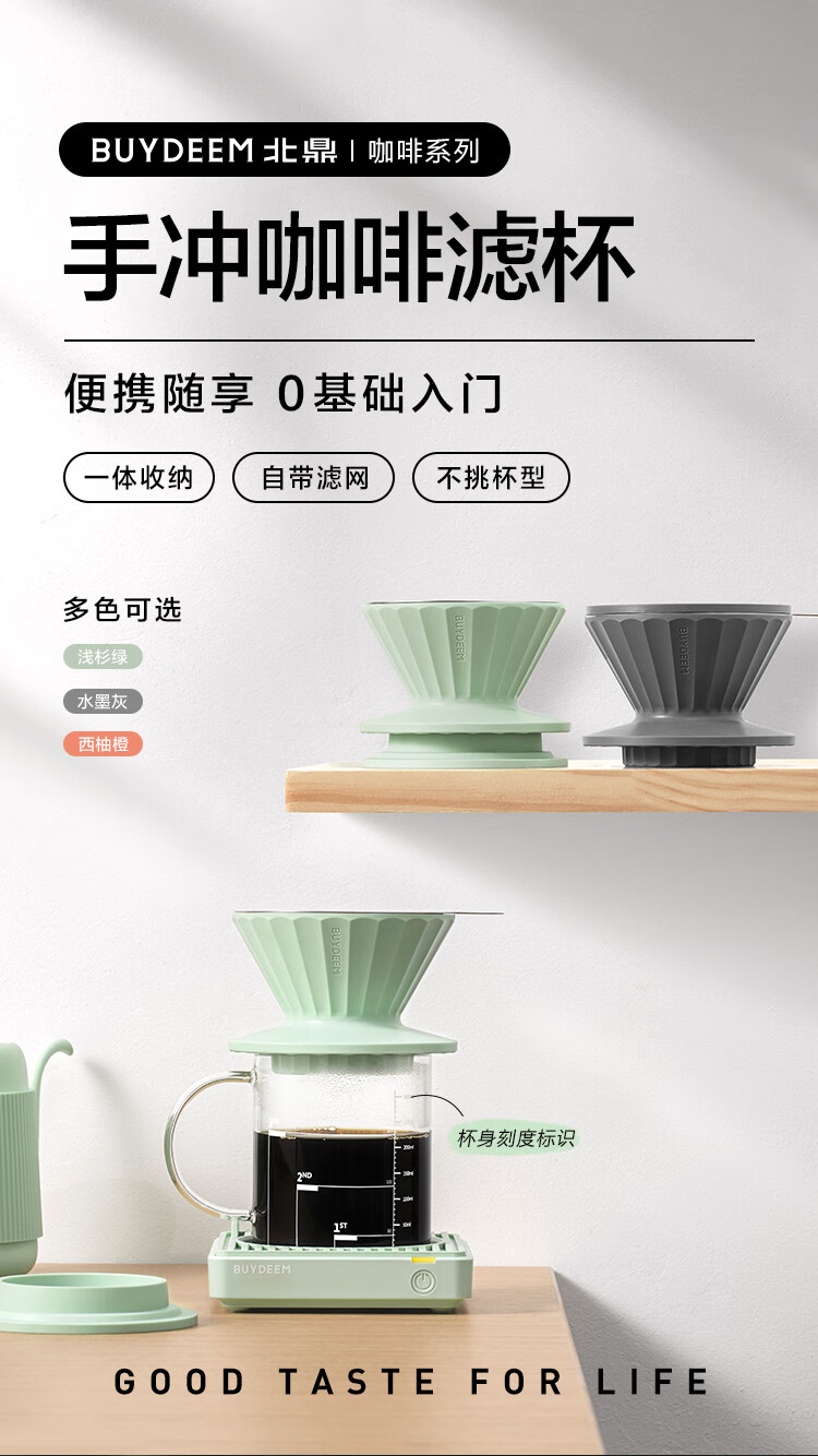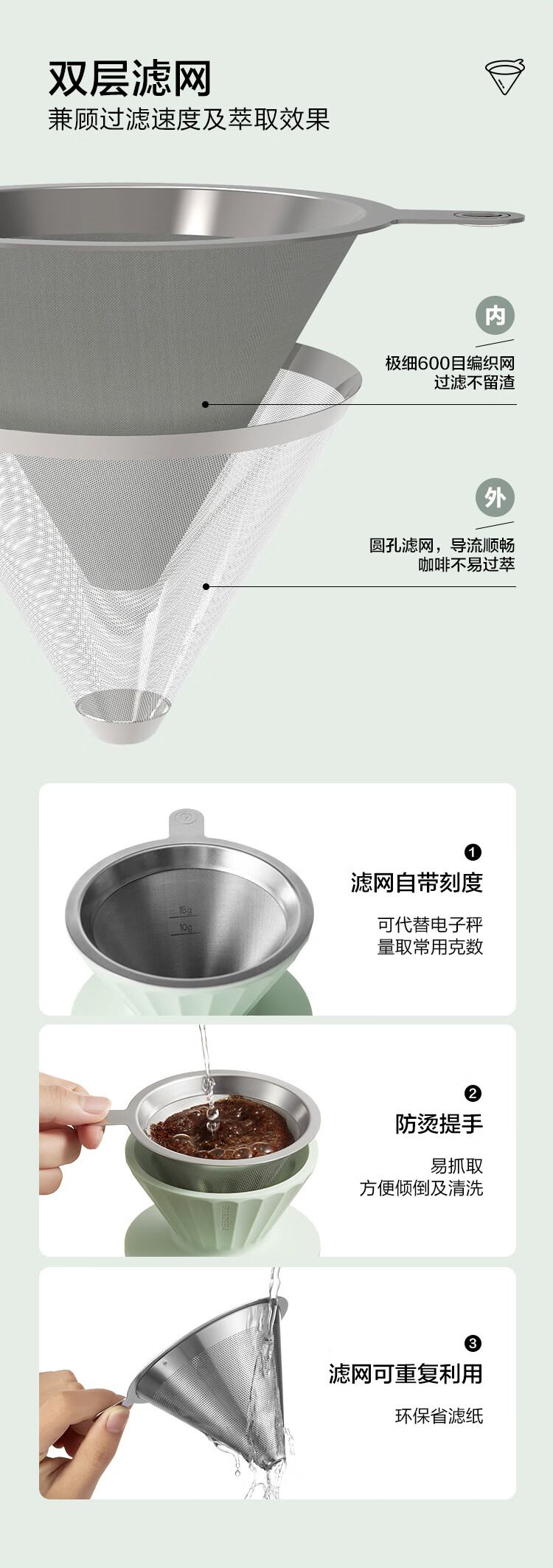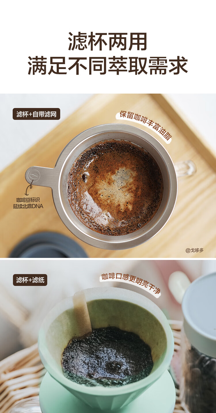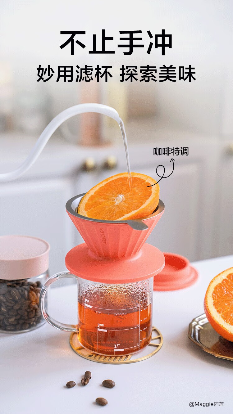Coffee filter cup, double layer filter, hand-brewed coffee set, funnel filter, tools, filter paper-free, portable, grapefruit orange coffee filter cup