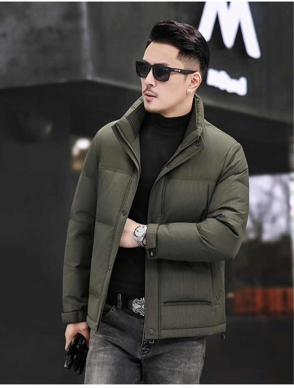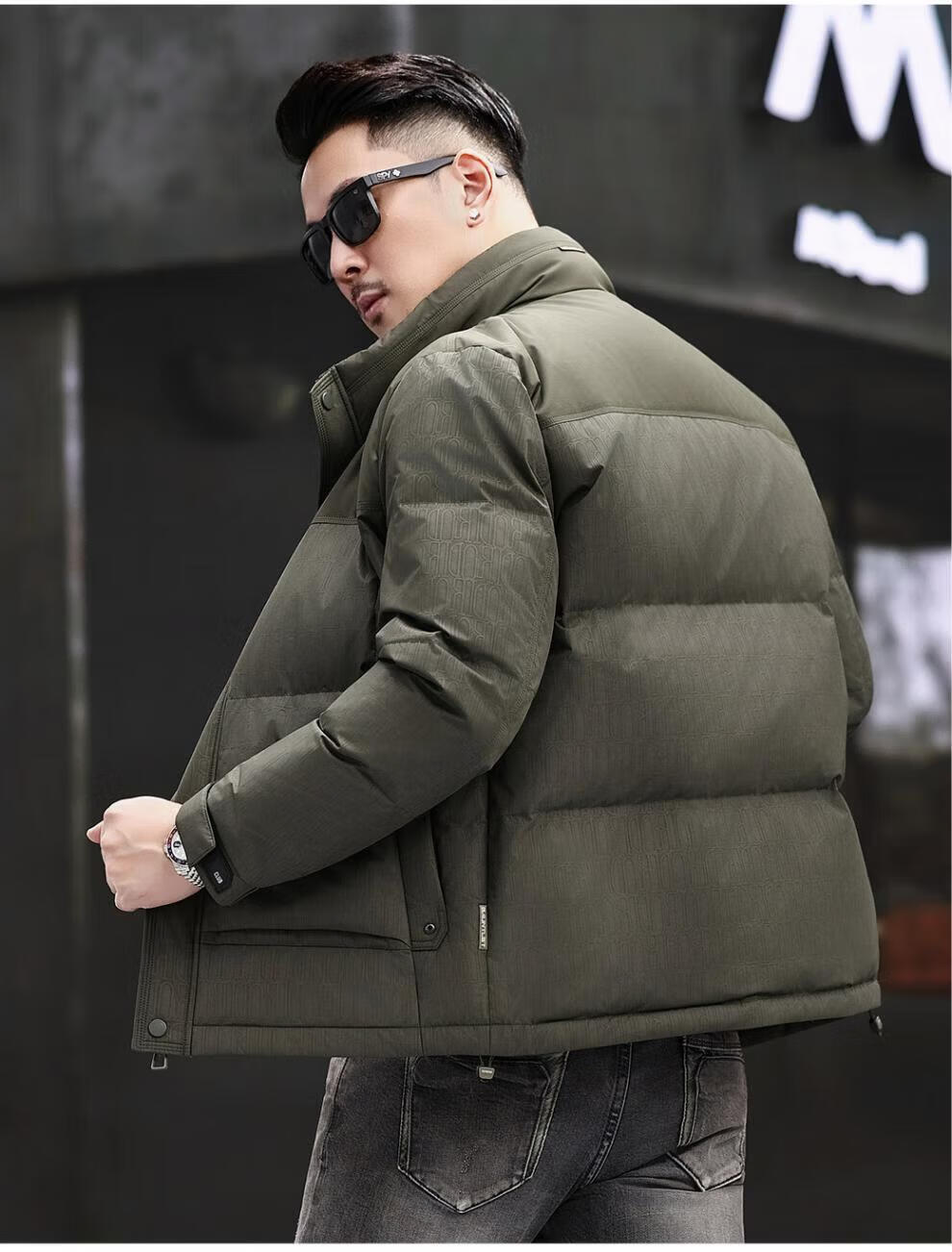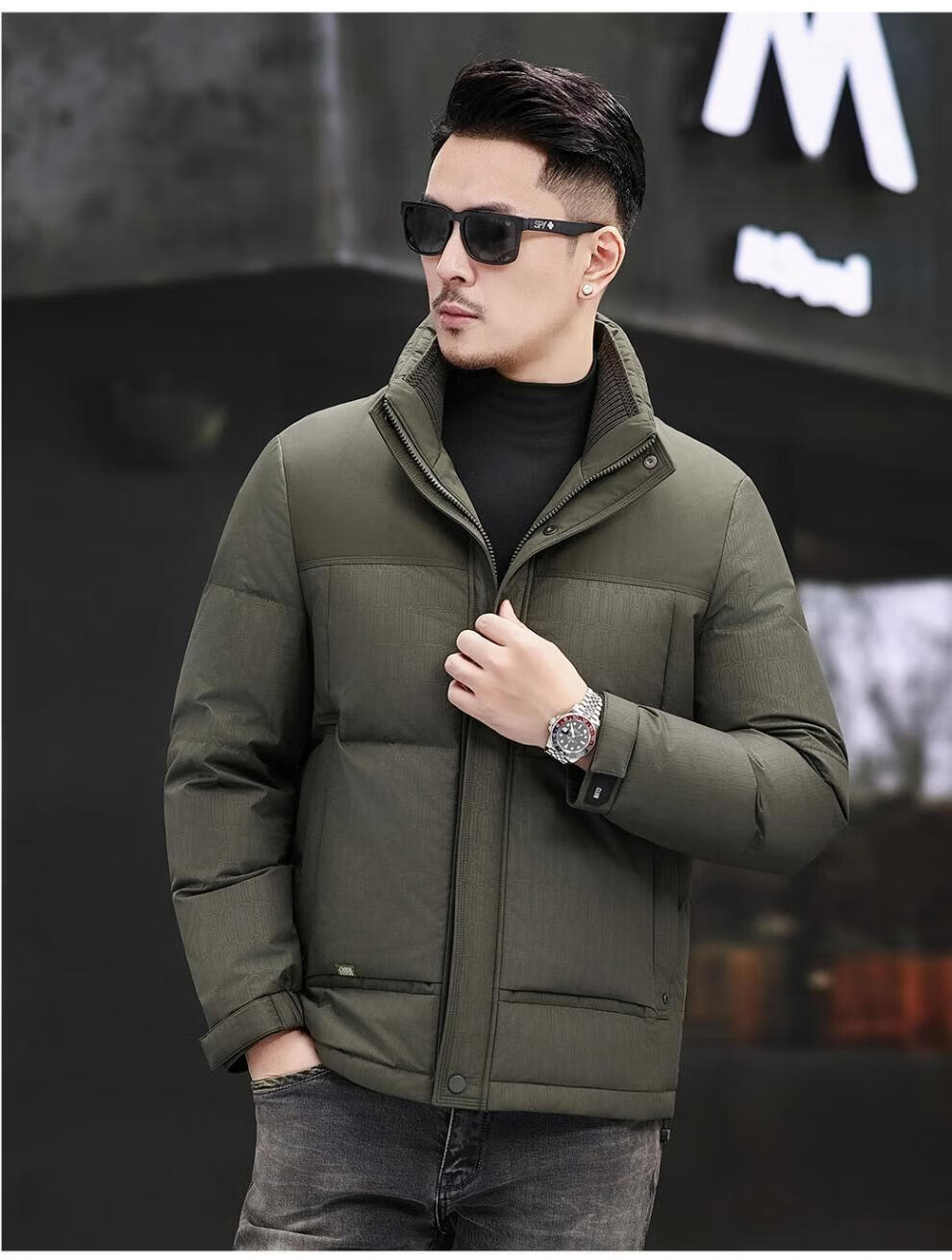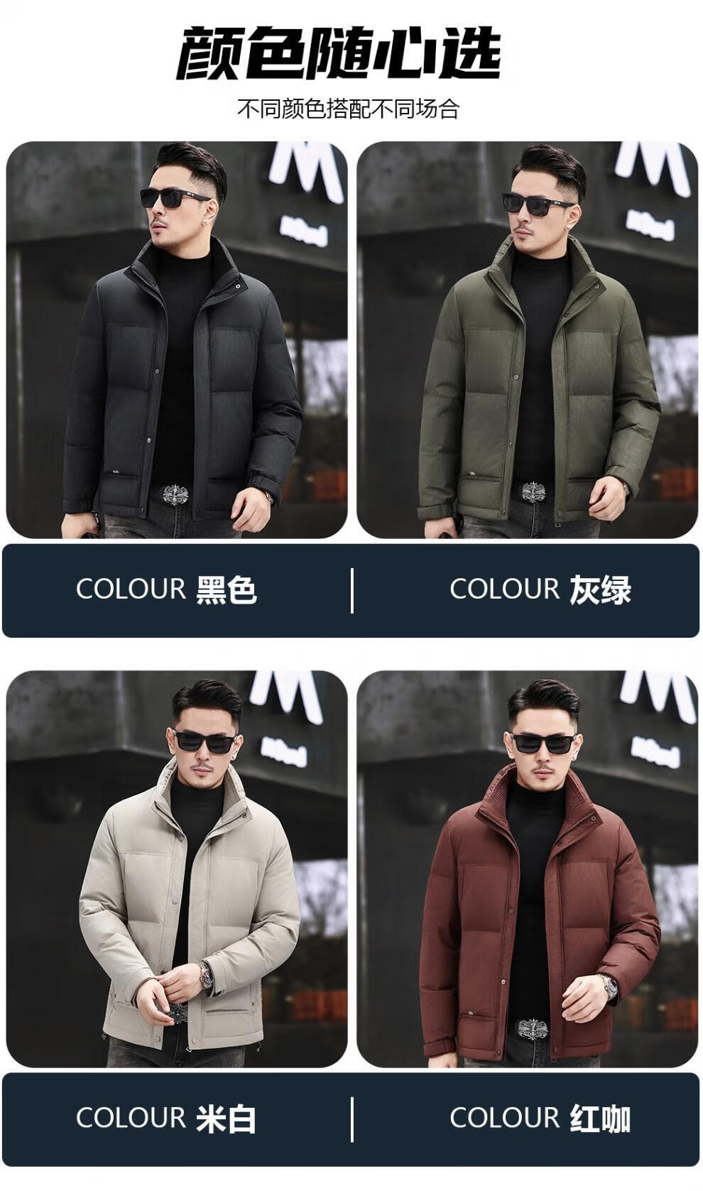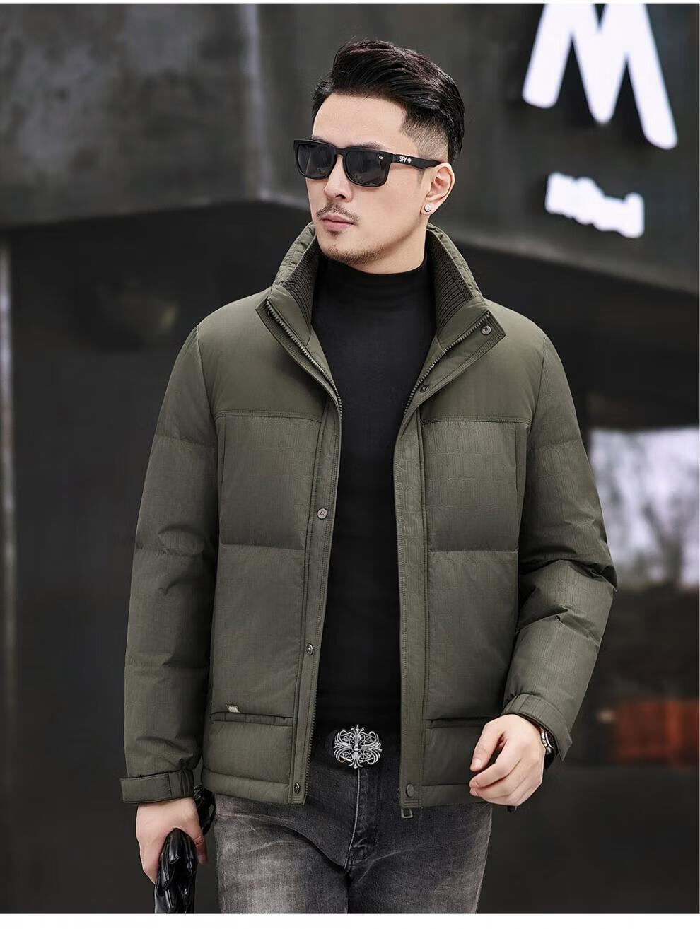 JEEP SPIRIT Jeep Fashion Stand Collar Down Jacket Men's 2026 Winter New Middle-aged Business Short Warm and Coldproof Jacket Trend B65 Gray Green 2XL 185 Recommended 150-170Jin Jin is equal to 0.5 kg