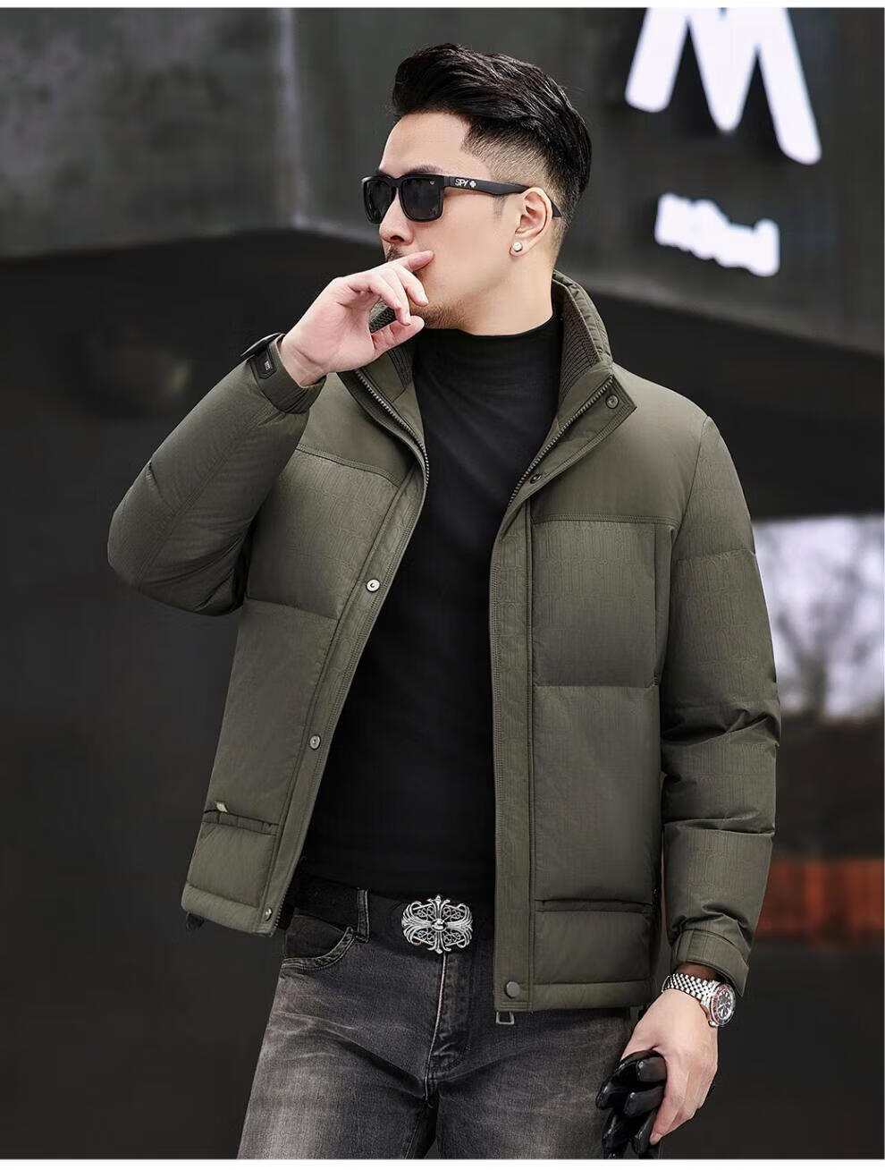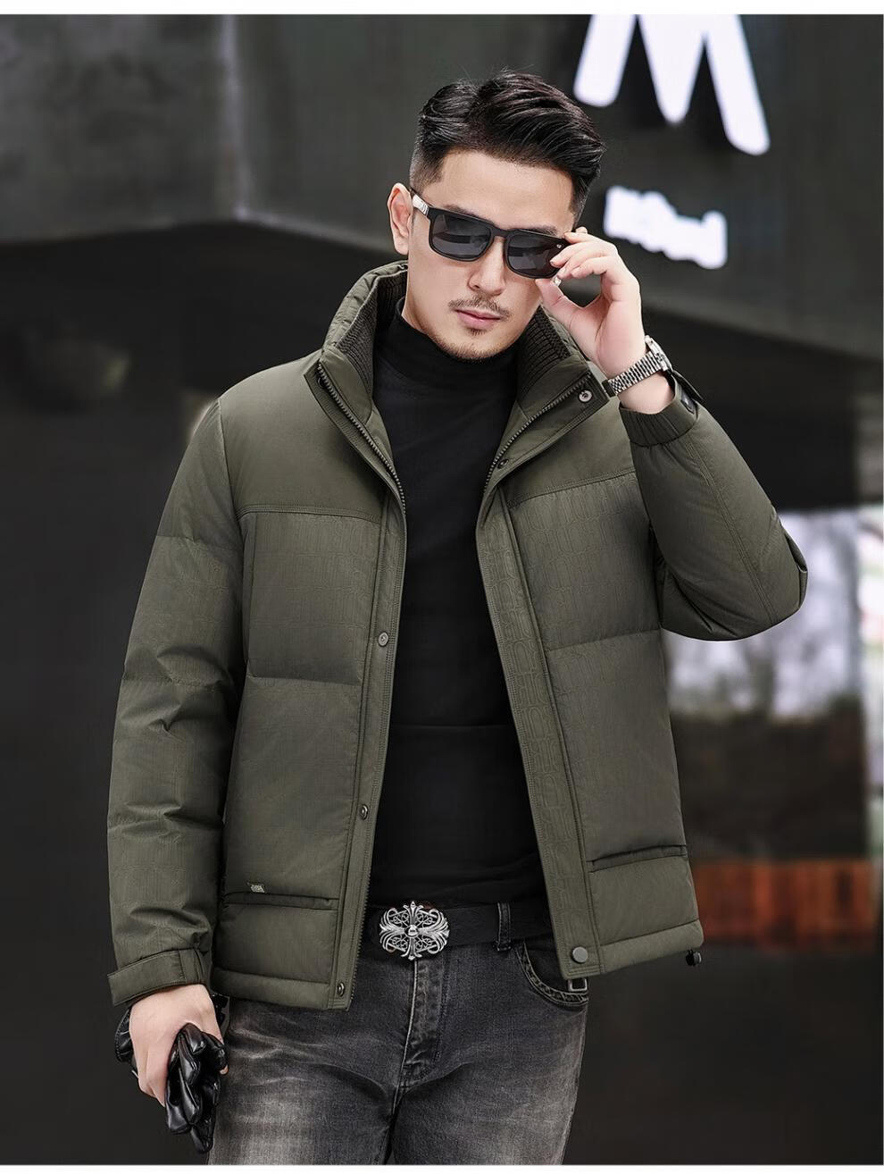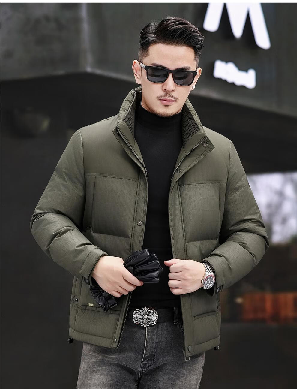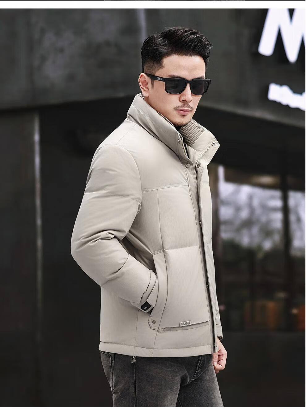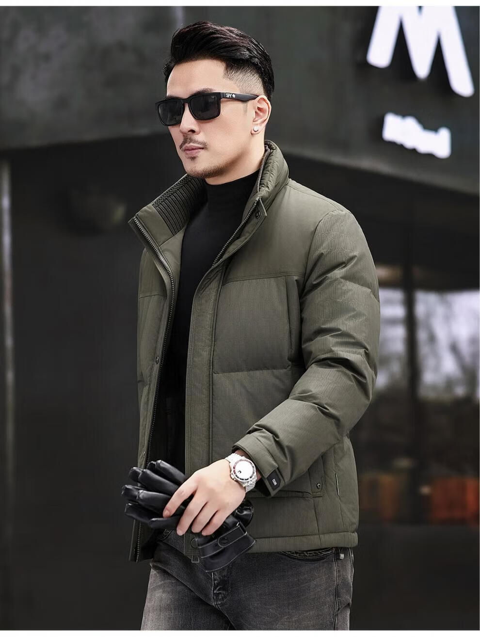 JEEP SPIRIT Jeep Fashion Stand Collar Down Jacket Men's 2026 Winter New Middle-aged Business Short Warm and Coldproof Jacket Trend B65 Gray Green 2XL 185 Recommended 150-170Jin Jin is equal to 0.5 kg