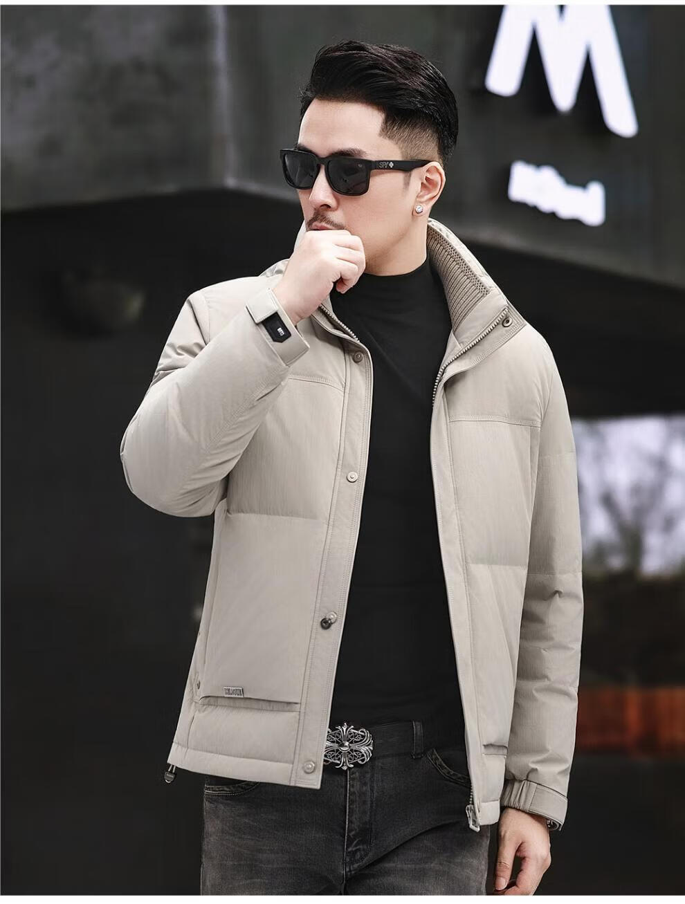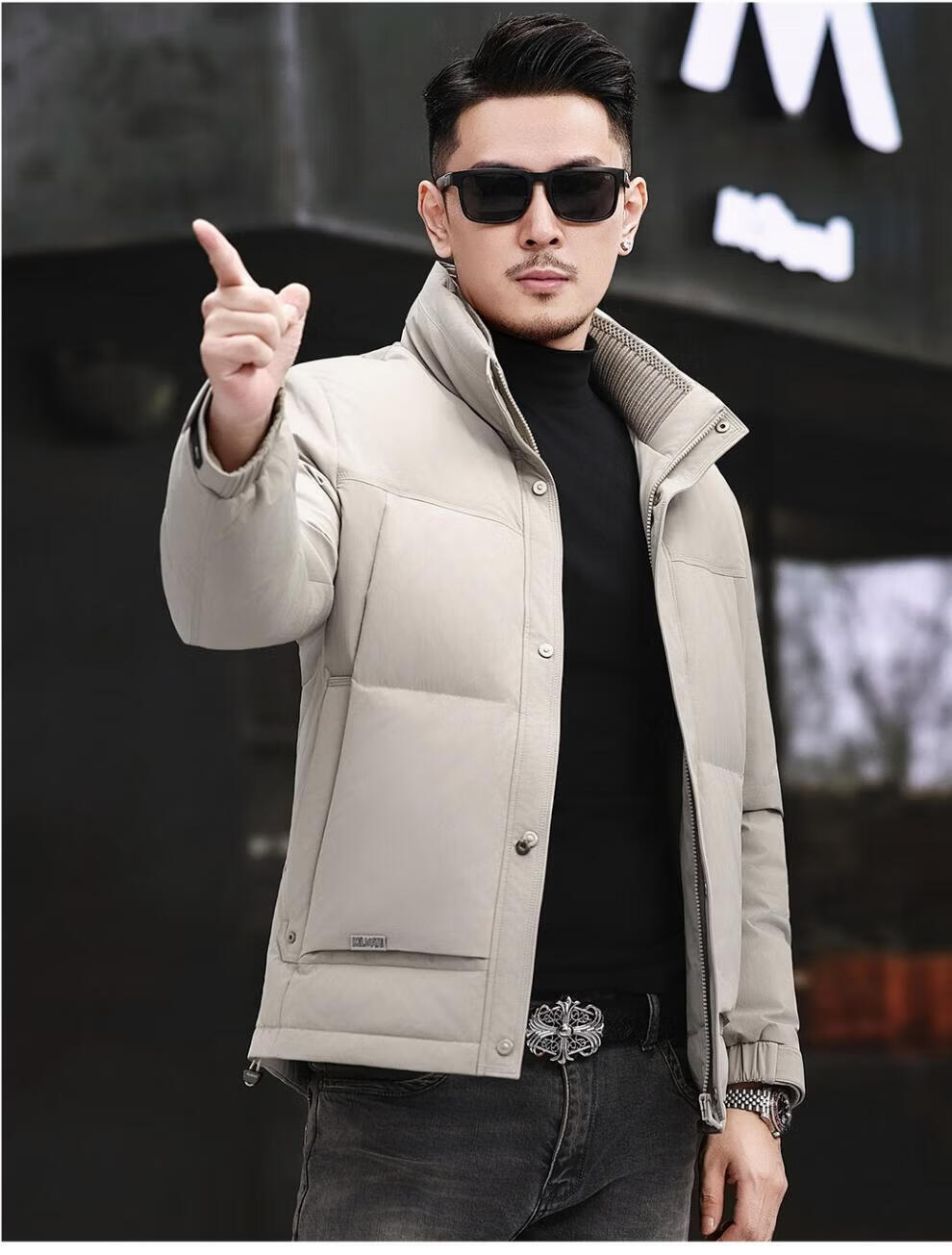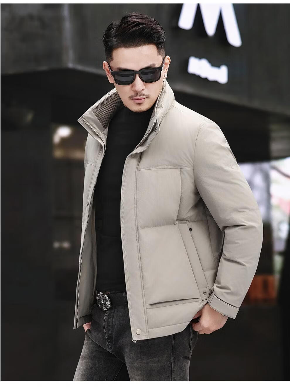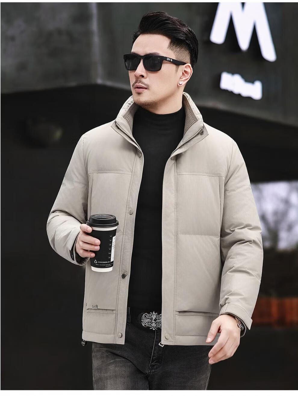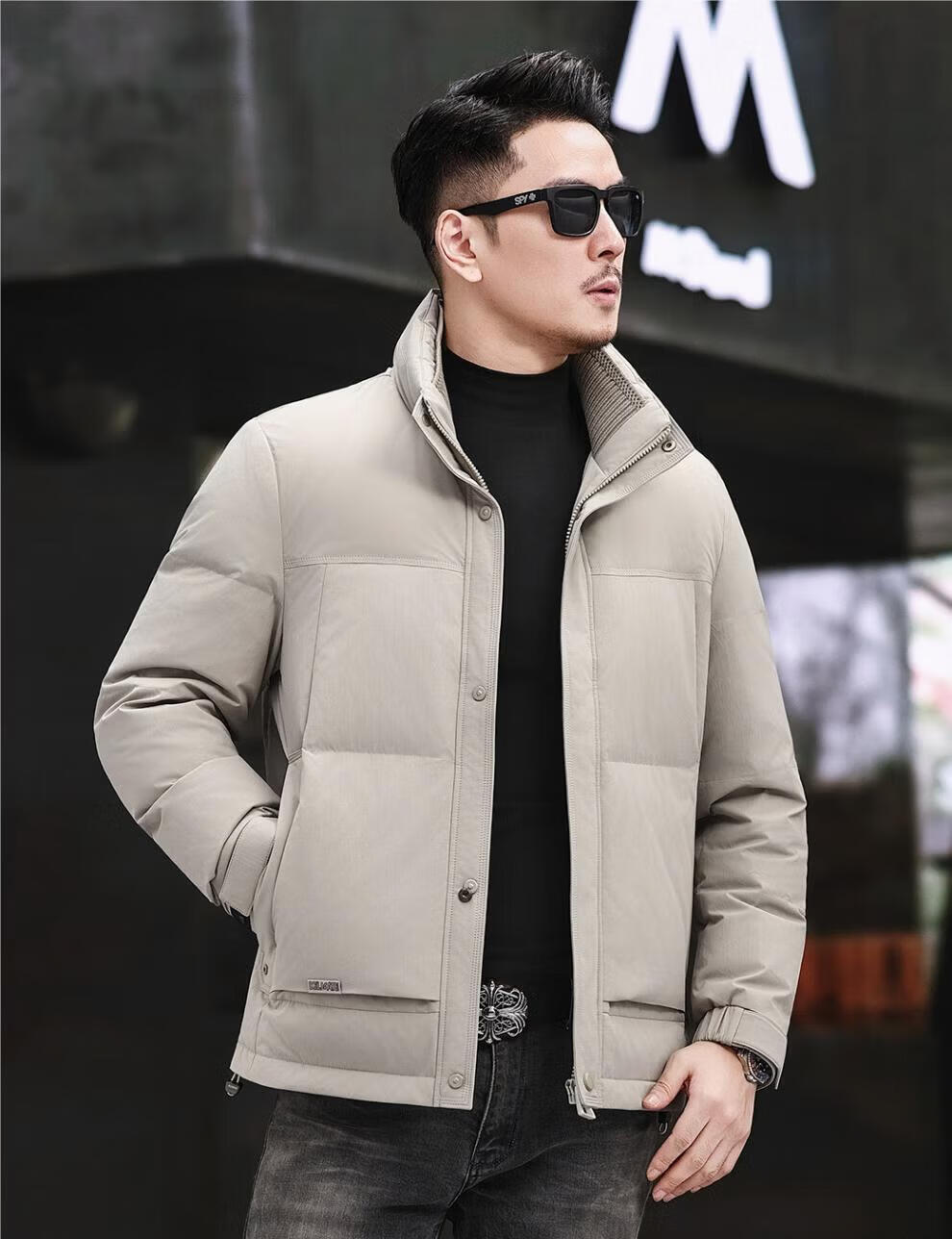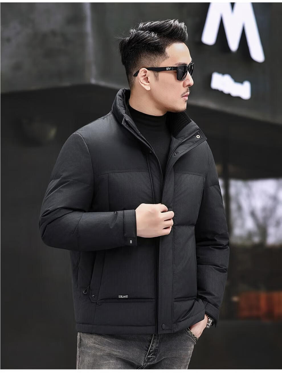 JEEP SPIRIT Jeep Fashion Stand Collar Down Jacket Men's 2026 Winter New Middle-aged Business Short Warm and Coldproof Jacket Trend B65 Gray Green 2XL 185 Recommended 150-170Jin Jin is equal to 0.5 kg