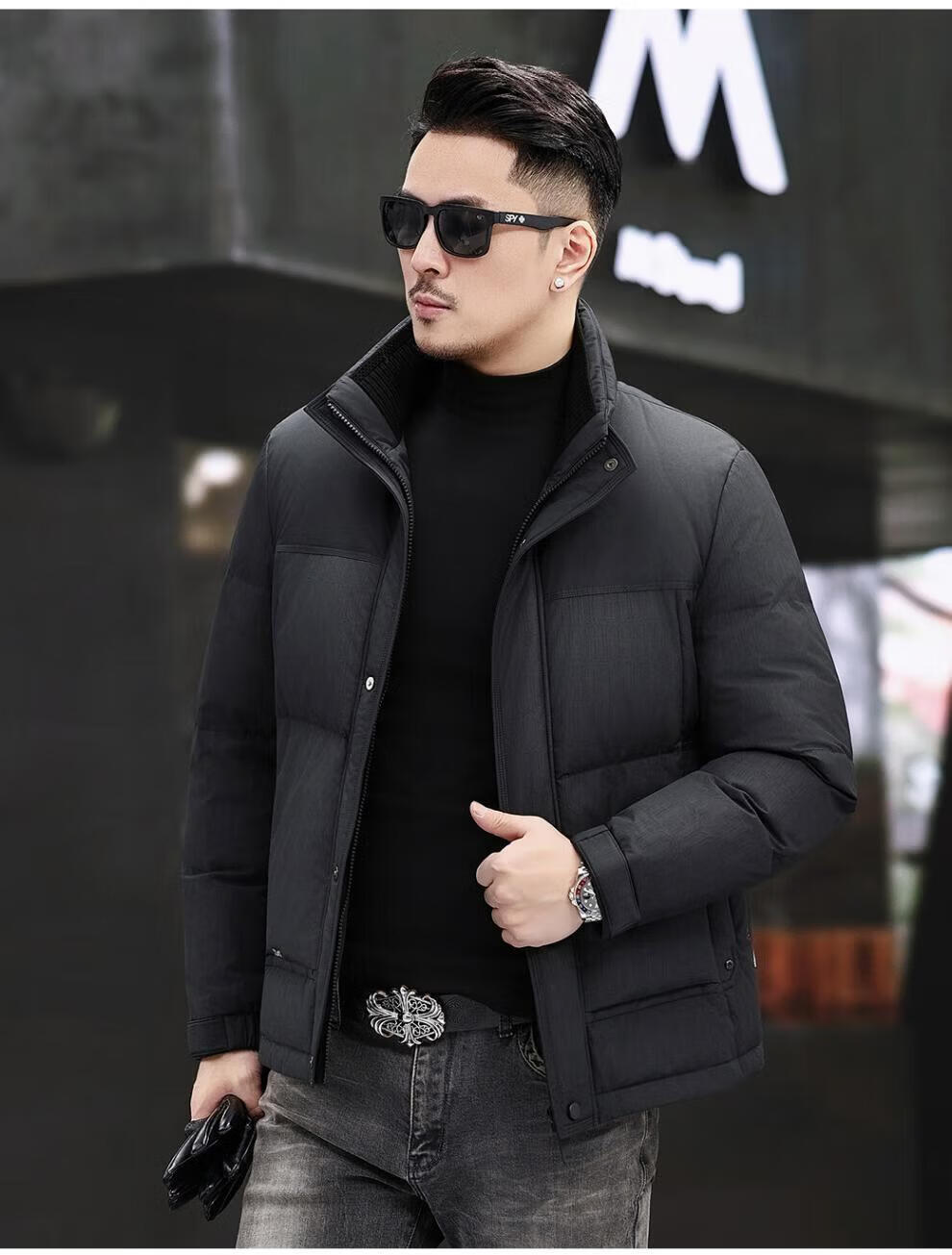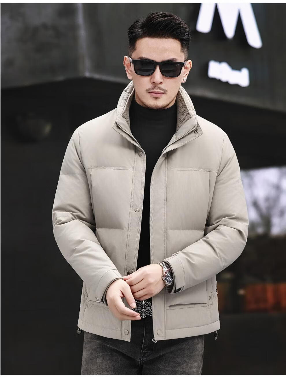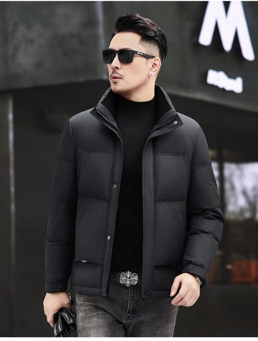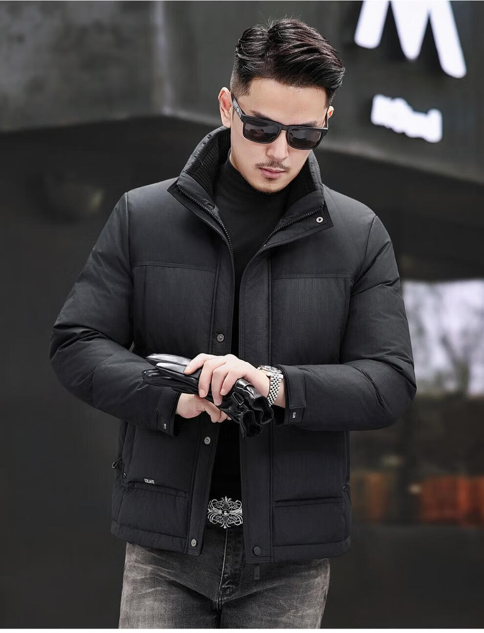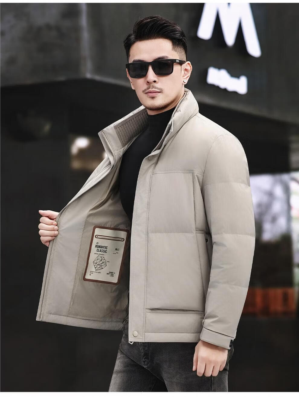 JEEP SPIRIT Jeep Fashion Stand Collar Down Jacket Men's 2026 Winter New Middle-aged Business Short Warm and Coldproof Jacket Trend B65 Gray Green 2XL 185 Recommended 150-170Jin Jin is equal to 0.5 kg