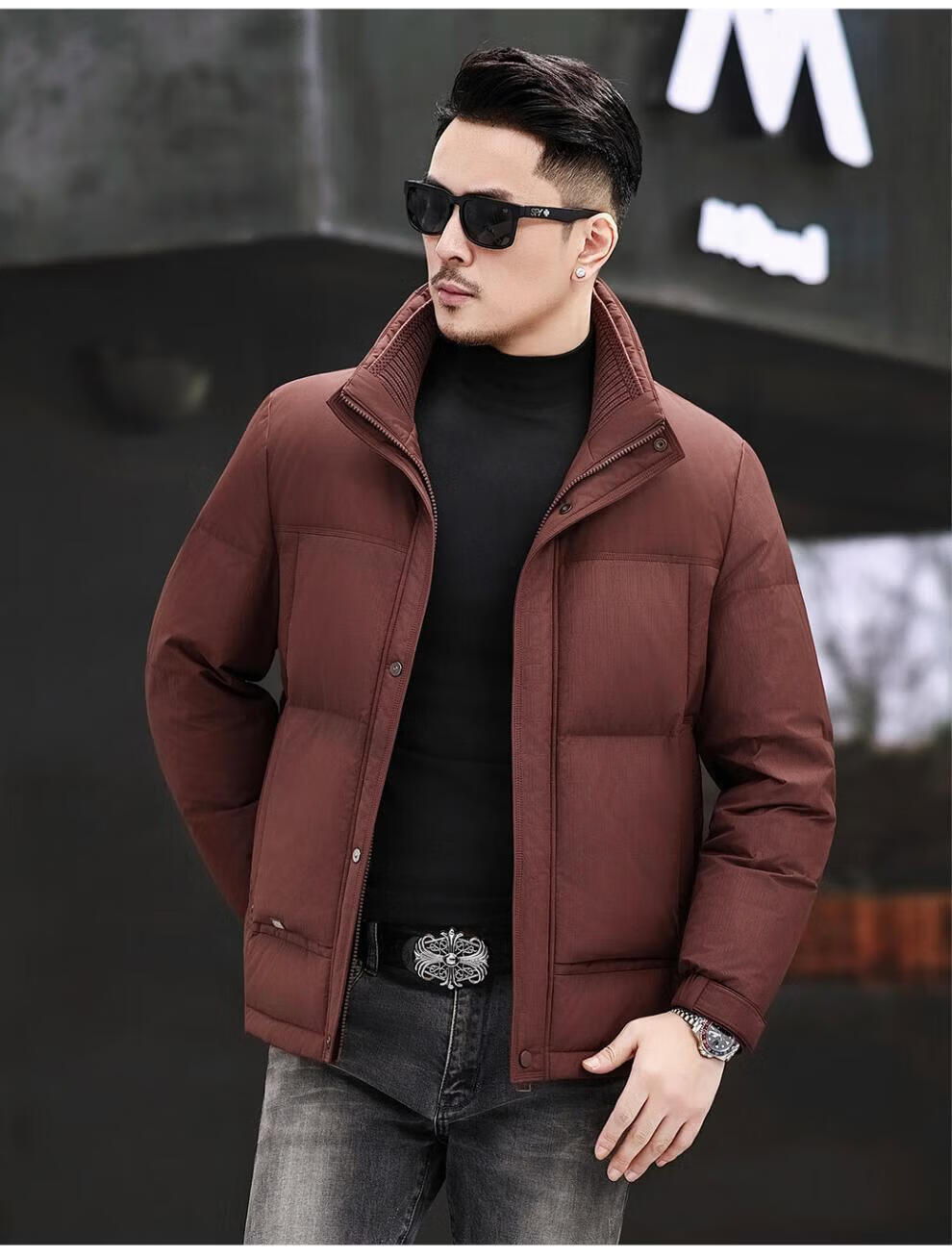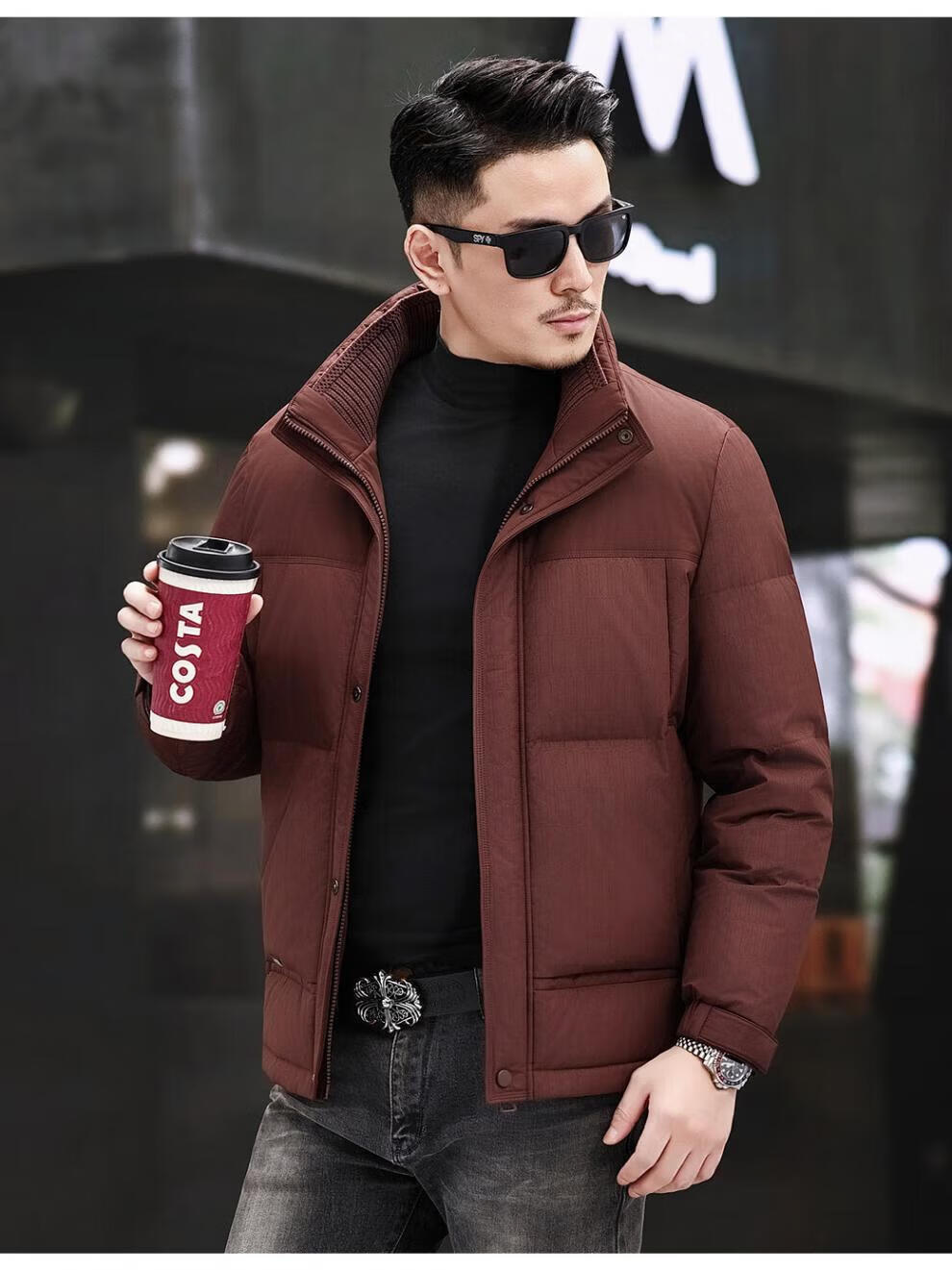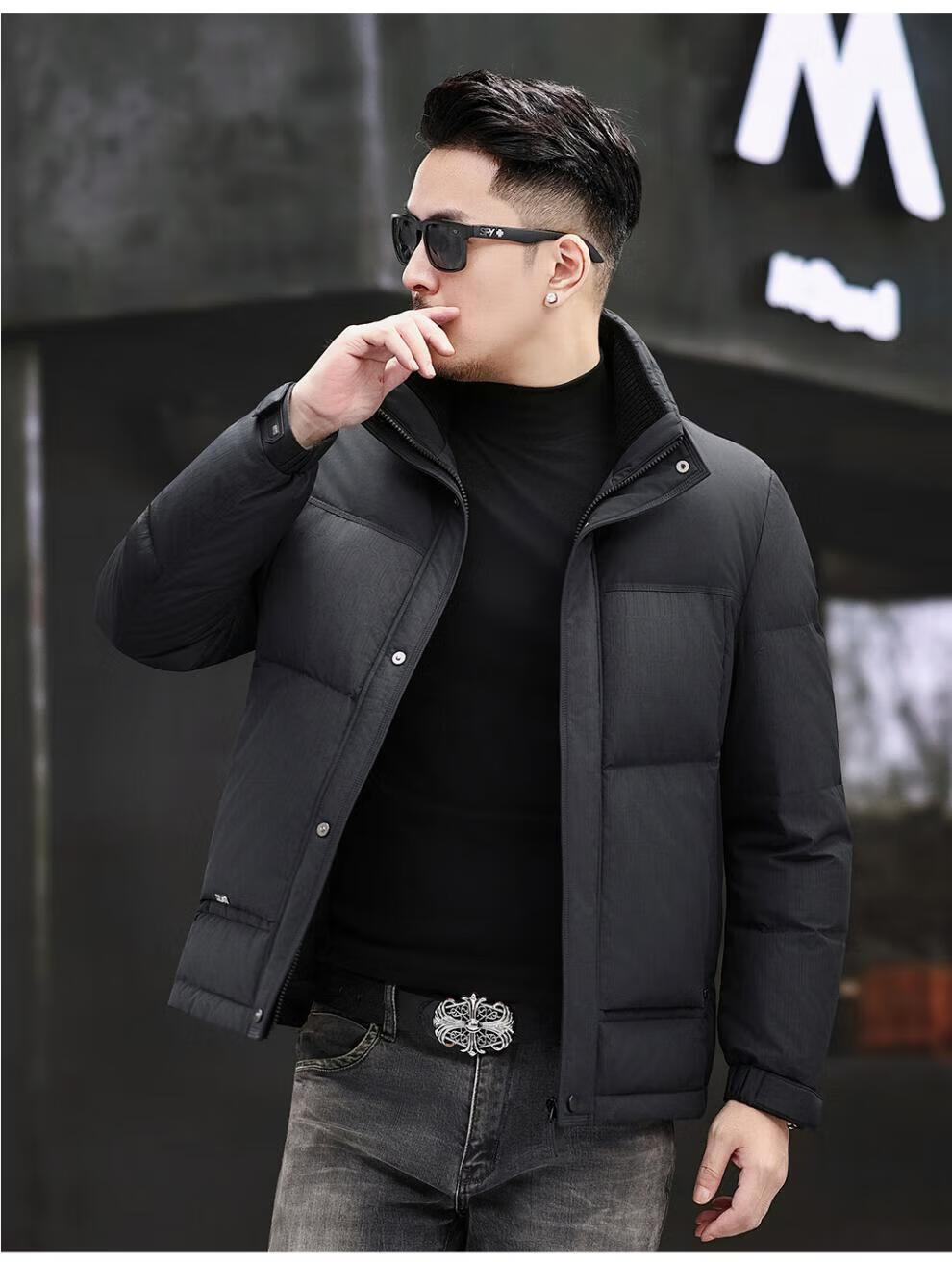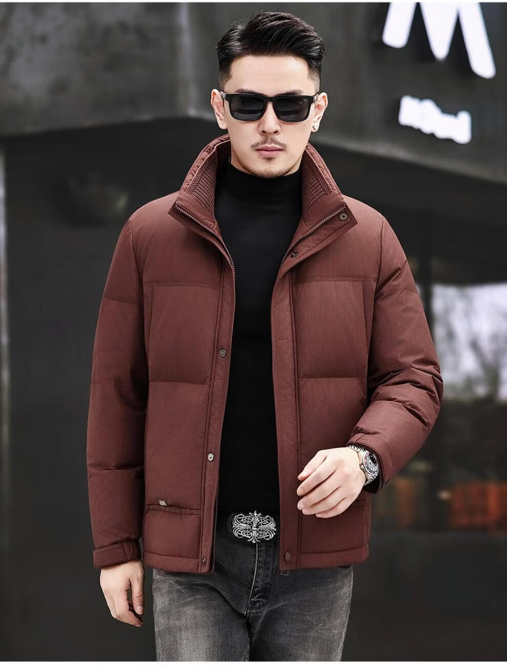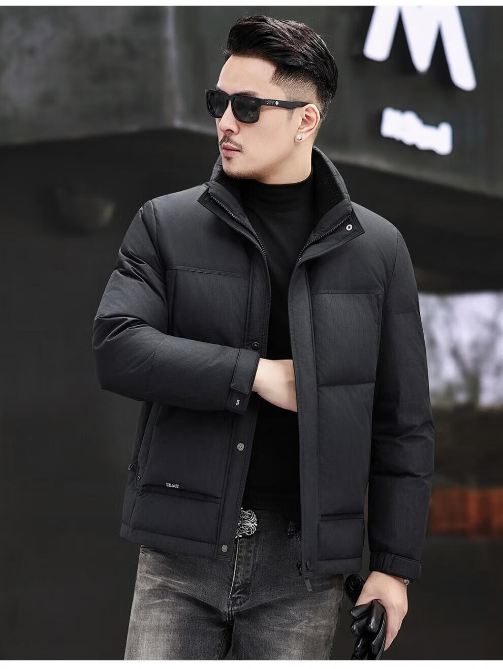 JEEP SPIRIT Jeep Fashion Stand Collar Down Jacket Men's 2026 Winter New Middle-aged Business Short Warm and Coldproof Jacket Trend B65 Gray Green 2XL 185 Recommended 150-170Jin Jin is equal to 0.5 kg