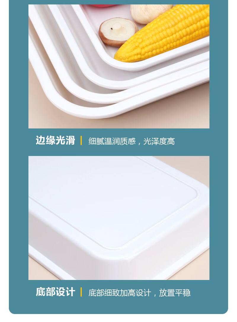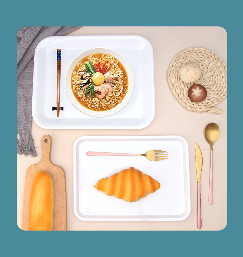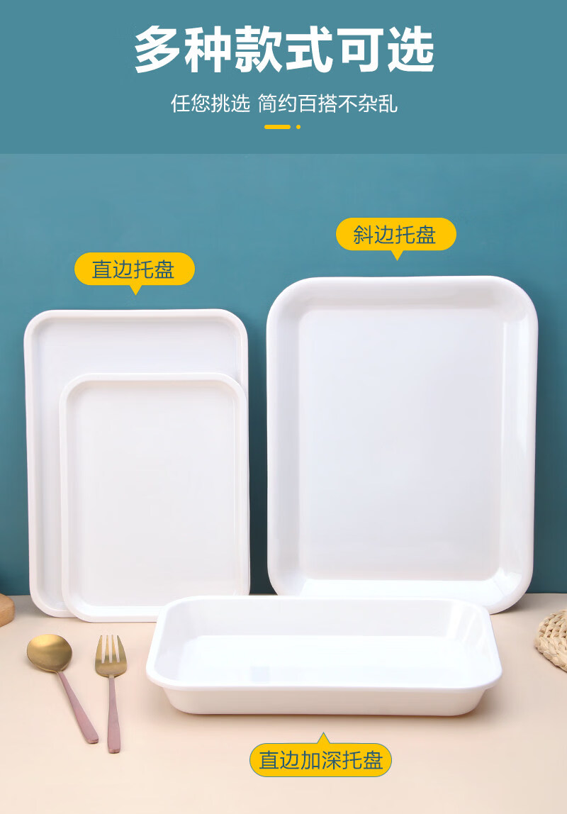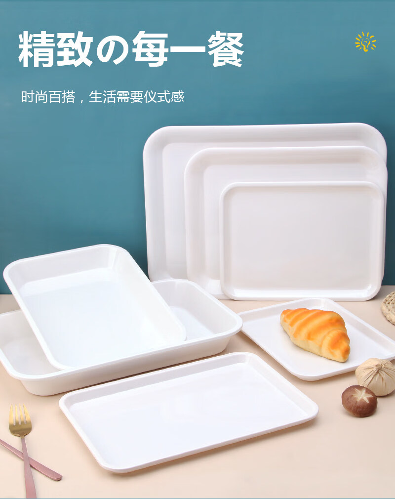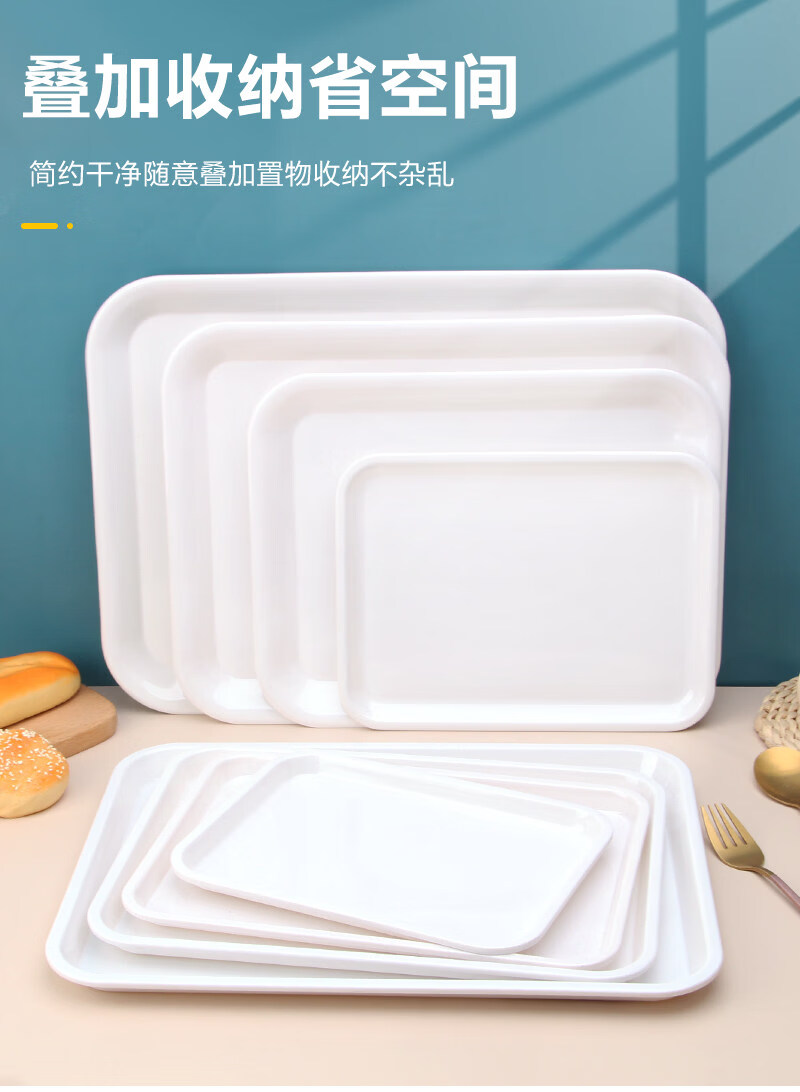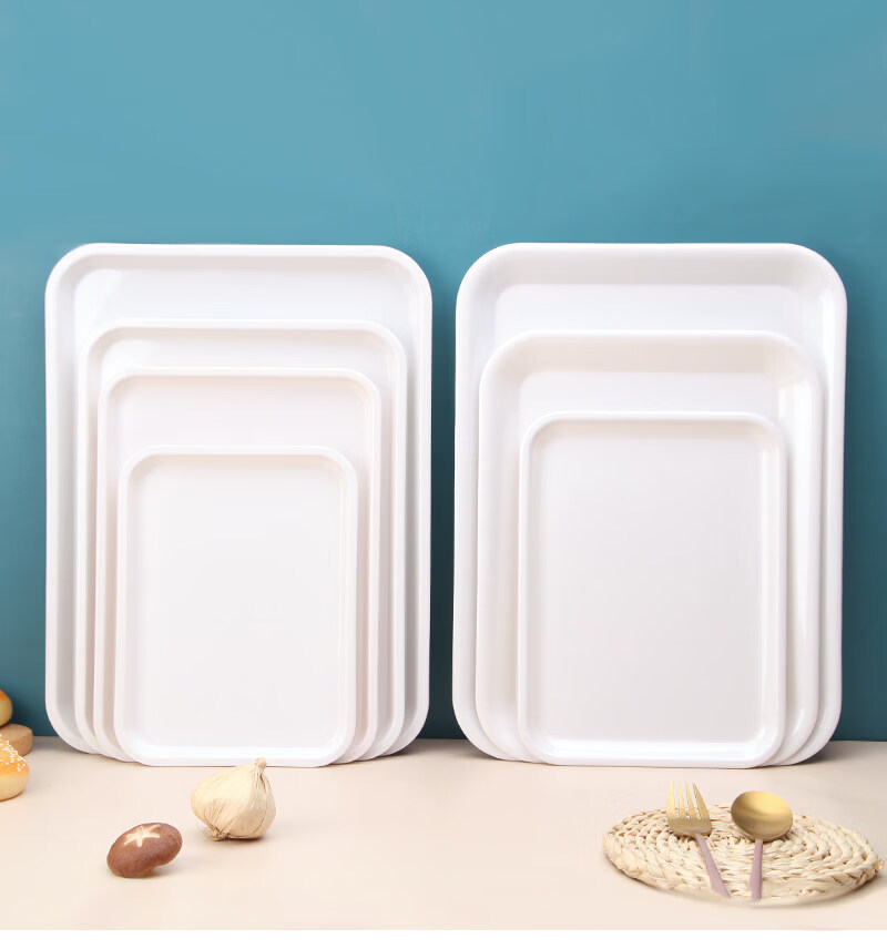 Tuojin imported quality plastic tray from Germany, water cup, tea tray, melamine rectangular tray, white household kindergarten dinner plate, straight edge tray_medium size_thick and affordable