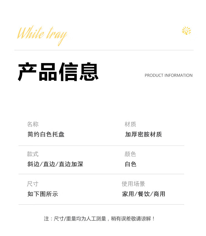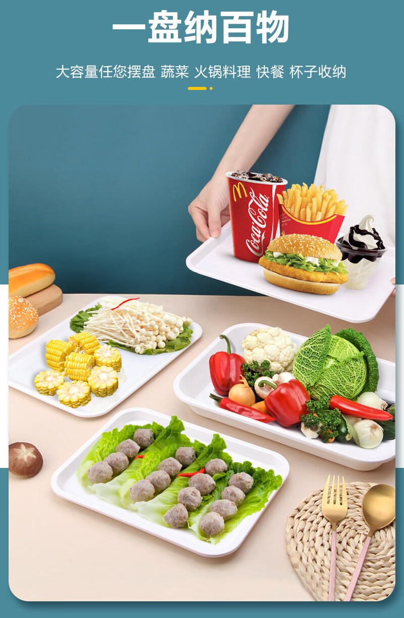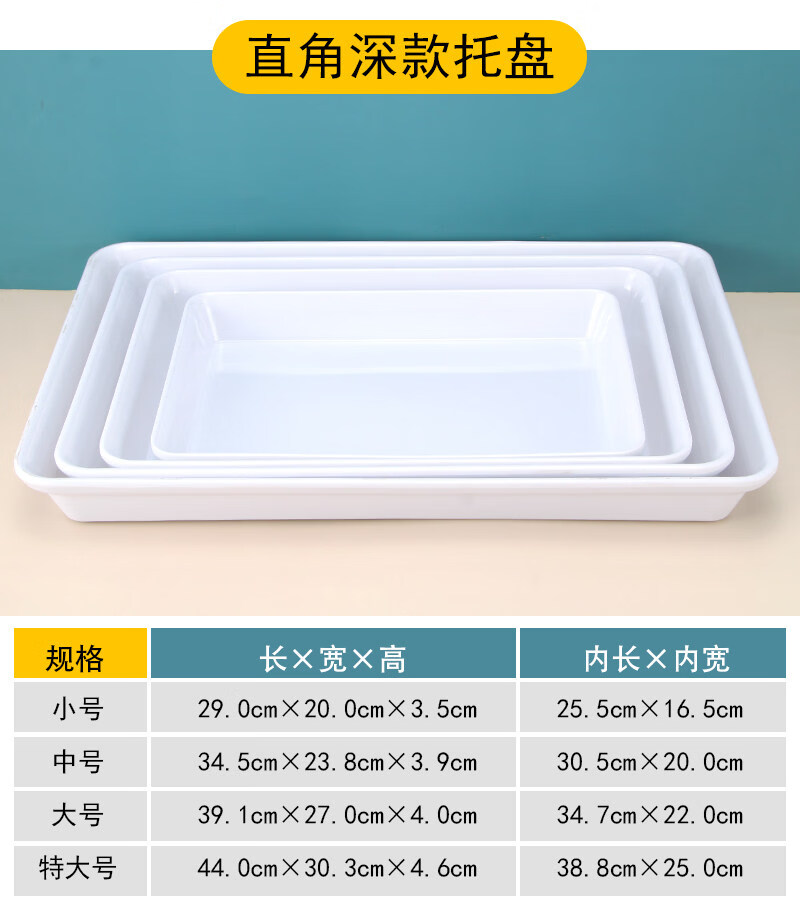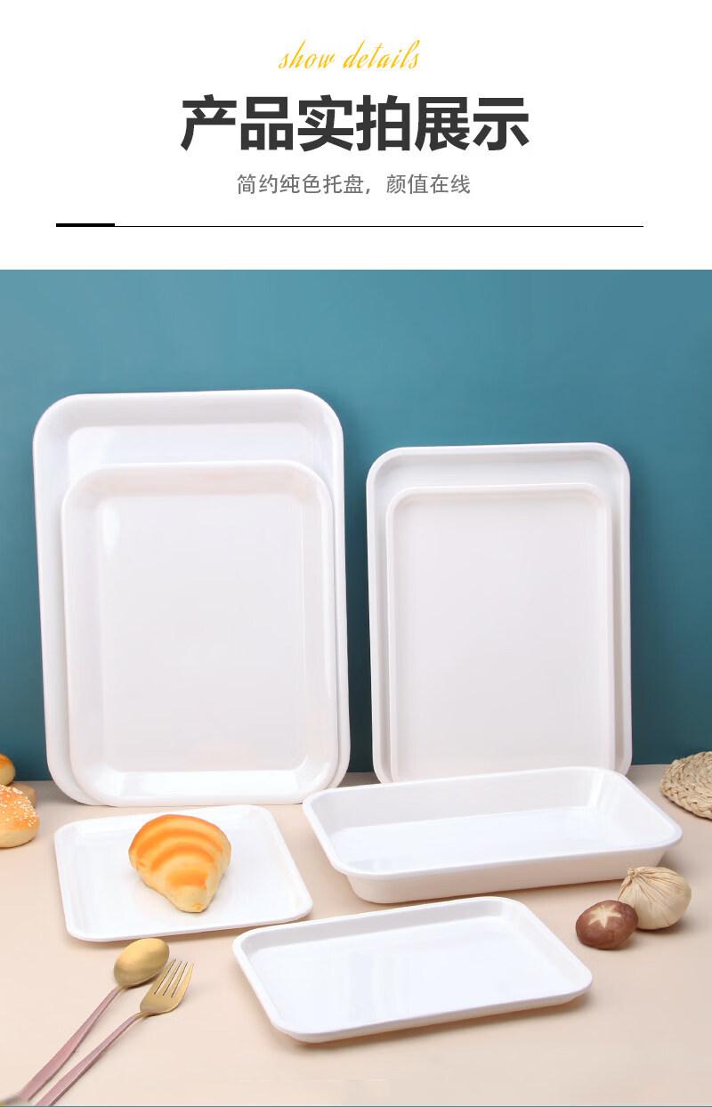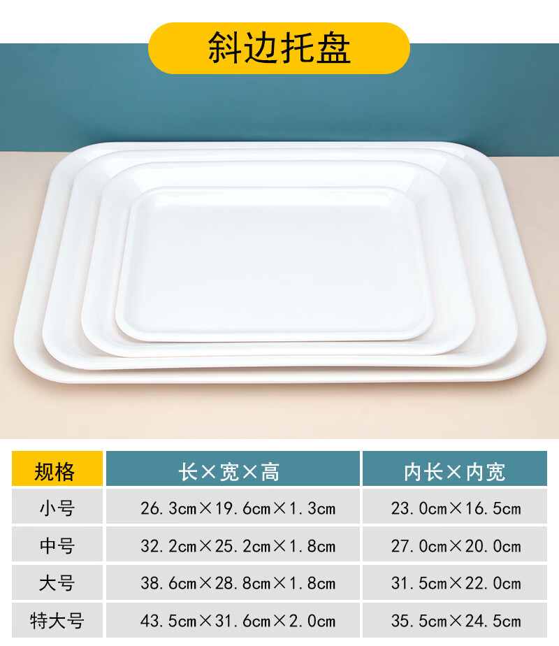 Tuojin imported quality plastic tray from Germany, water cup, tea tray, melamine rectangular tray, white household kindergarten dinner plate, straight edge tray_medium size_thick and affordable