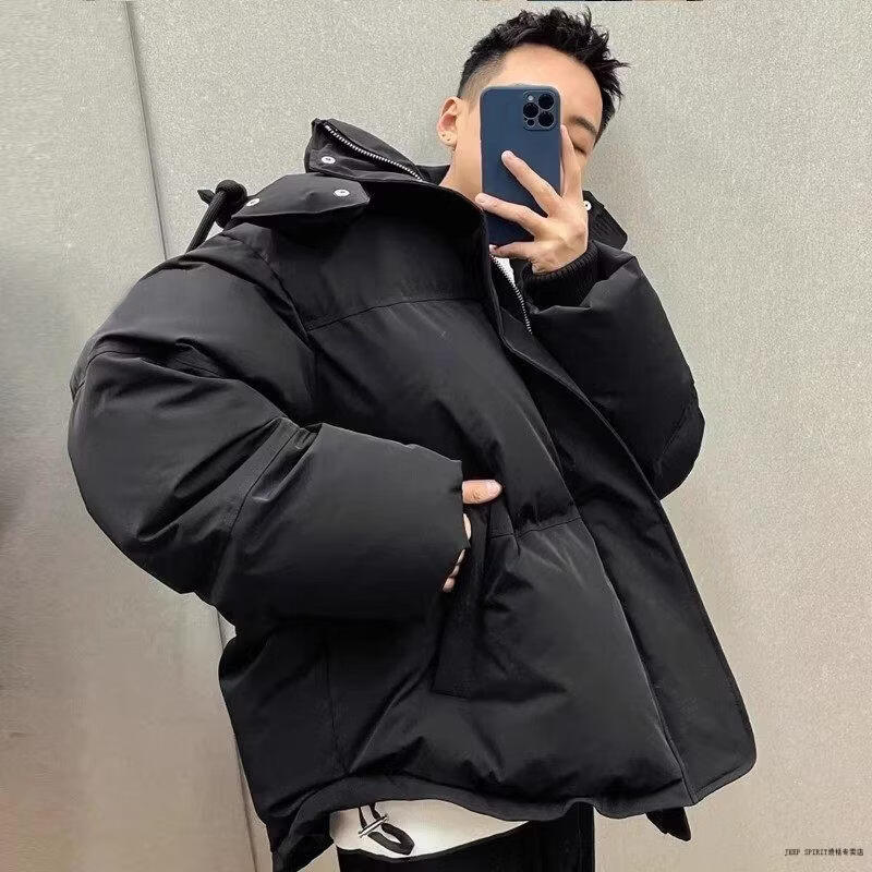 JEEP SPIRIT thickened short down jacket for men and women 2026 new winter youth student love bread coat loose jacket gray gray male XS recommended (85-110) Jin Jin equals 0.5 kg