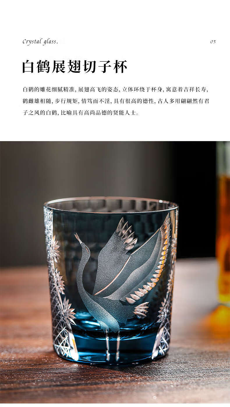 Sailoto Edo Kiriko K9 starburst cup high-end handmade lead-free crystal cup whiskey foreign cup crystal cup gift cup single black gift box ink orchid crane crystal 0ml
