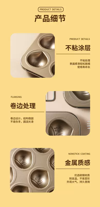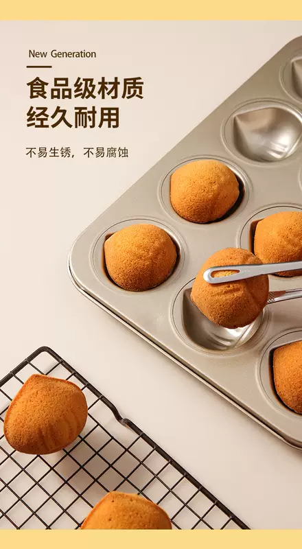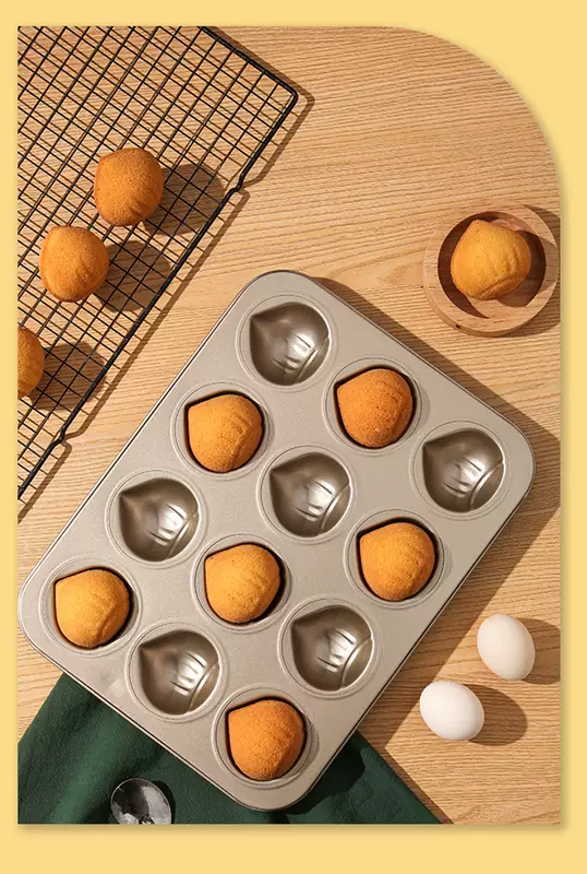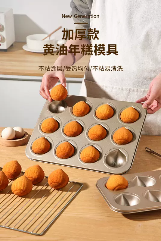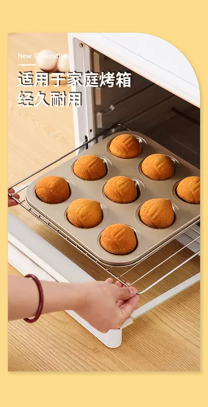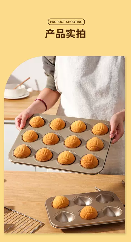 Yusenyi Internet celebrity cream rice cake mold non-stick chestnut 12 madeleines 6 chestnut mill cake baking 9 baking tray oven 9 muffin cake mold (100 paper trays free)