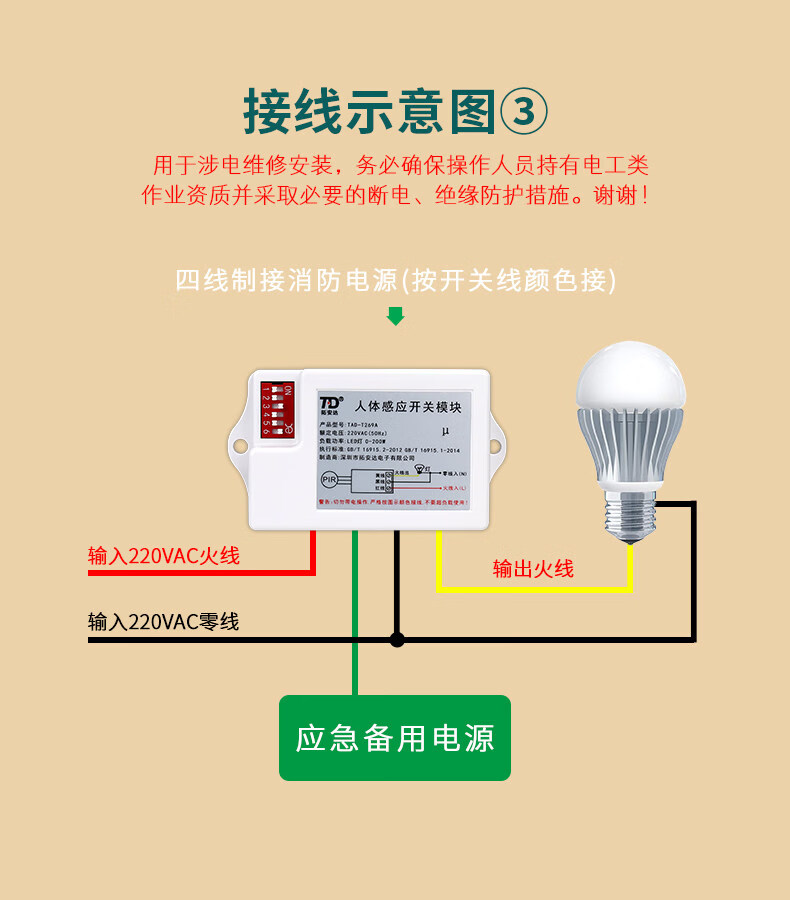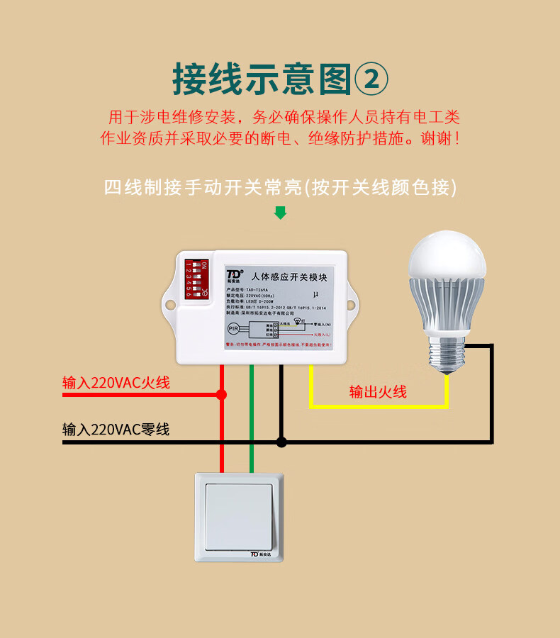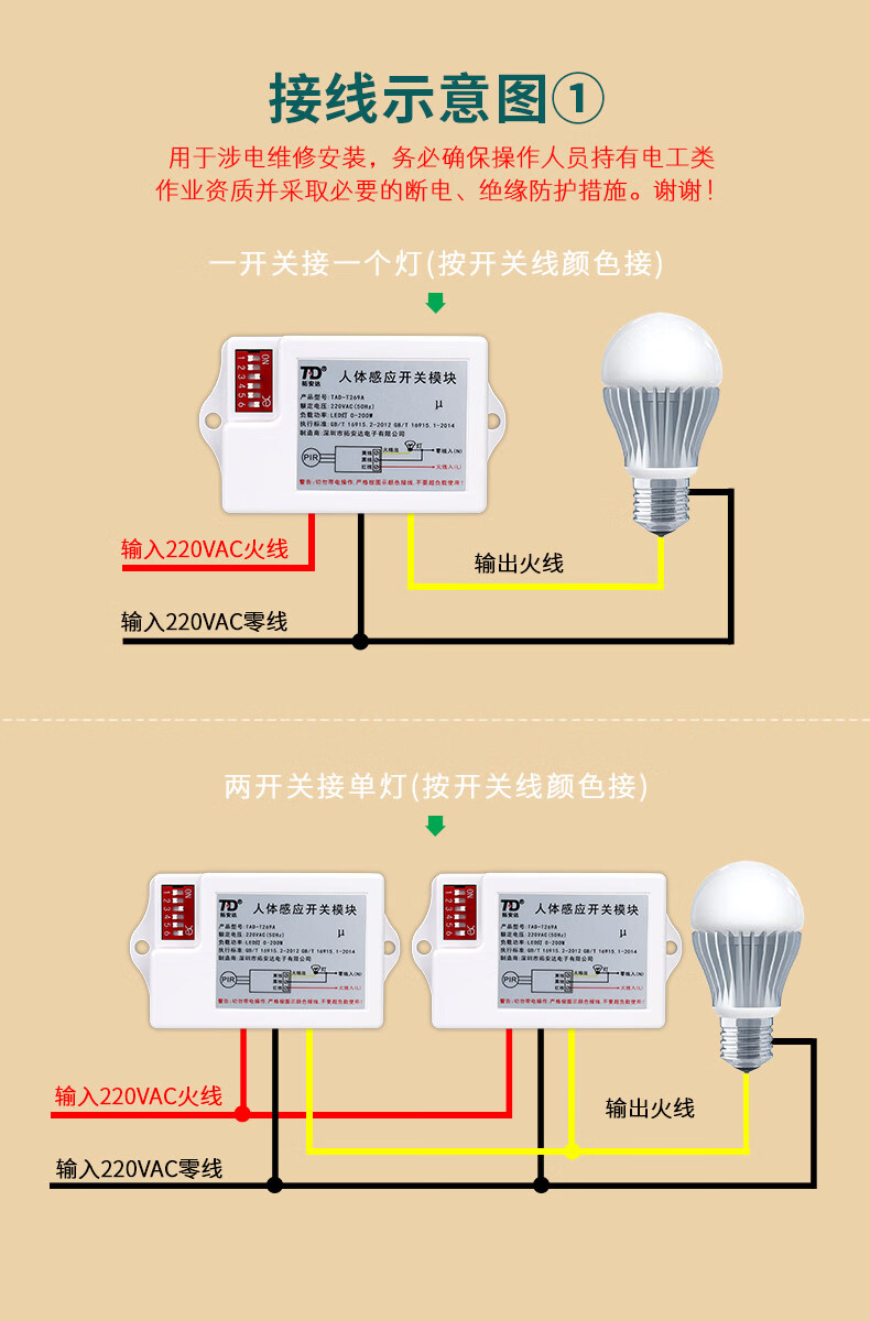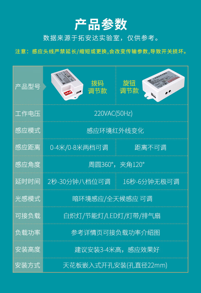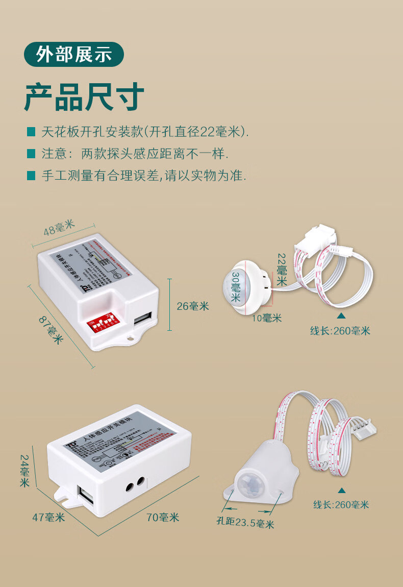 Human body sensor switch module 220V corridor toilet Led downlight with two-piece infrared sensor three-wire_wire system 10A