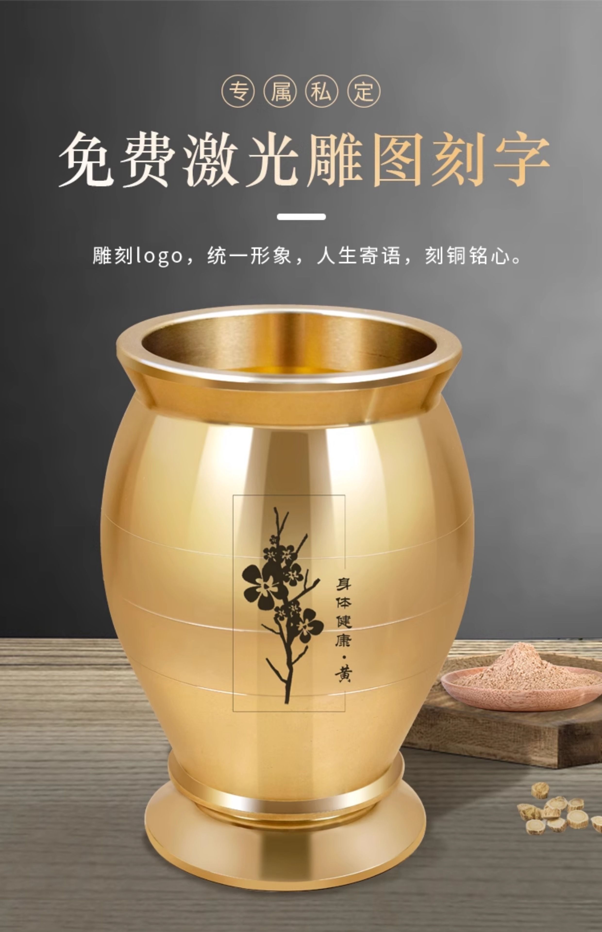 Sailotou brass traditional Chinese medicine pounding jar household old-fashioned copper mortar punch barrel brass cup mortar grinder garlic pounder thickening upgrade plus size leather pad