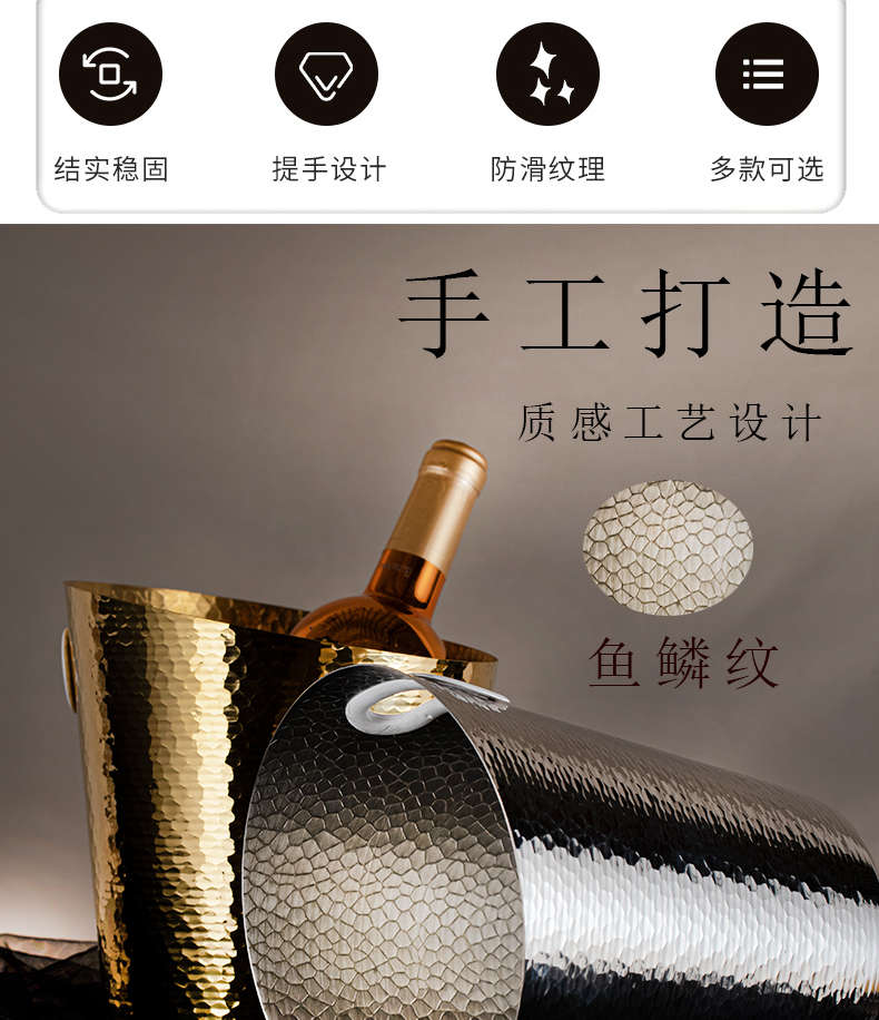 Yusen Yi hammer point champagne bucket high-end handmade ice bucket fish scale pattern red wine ice bucket ktv bungalow decoration gold fish scale pattern ice bucket