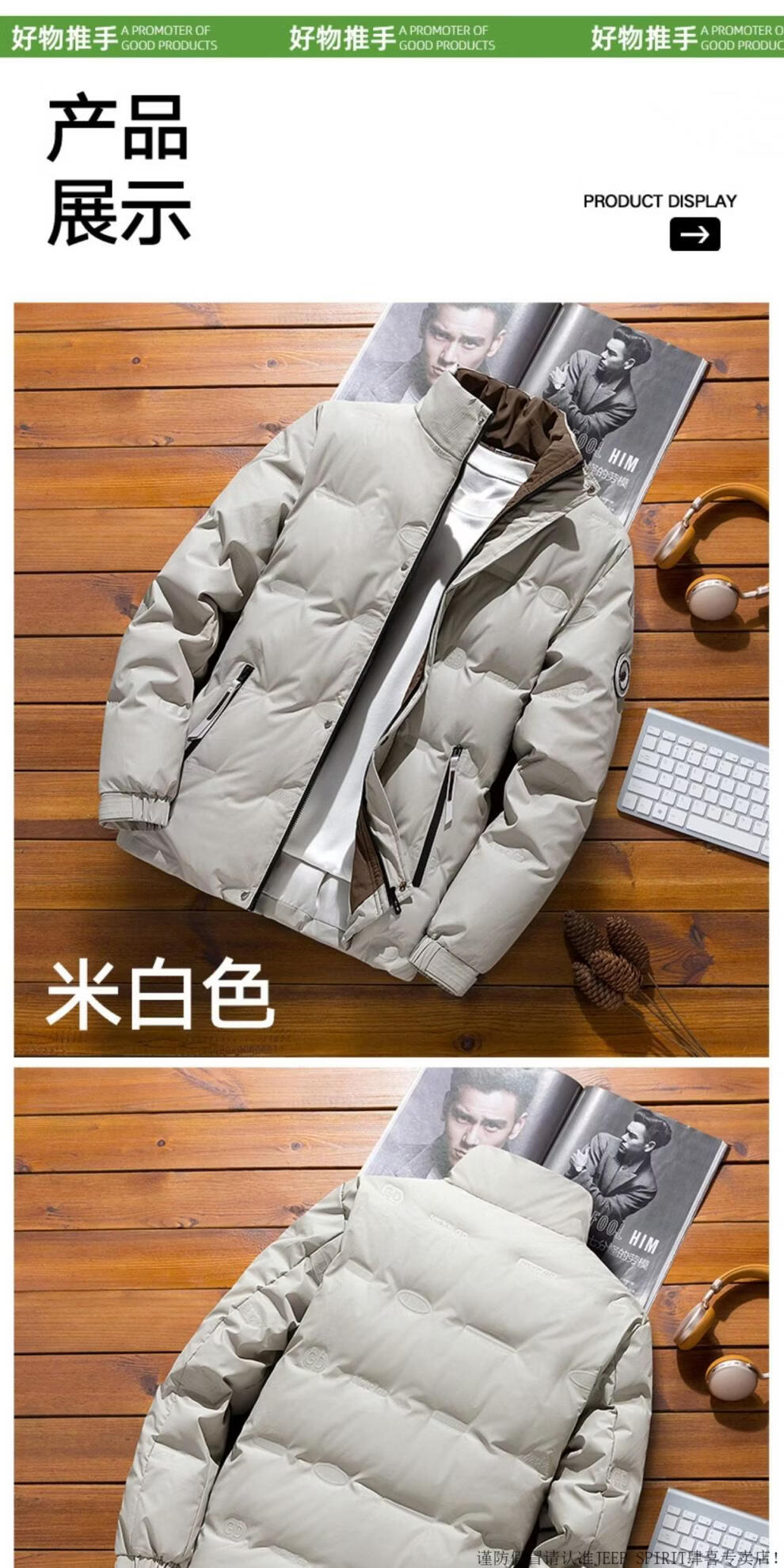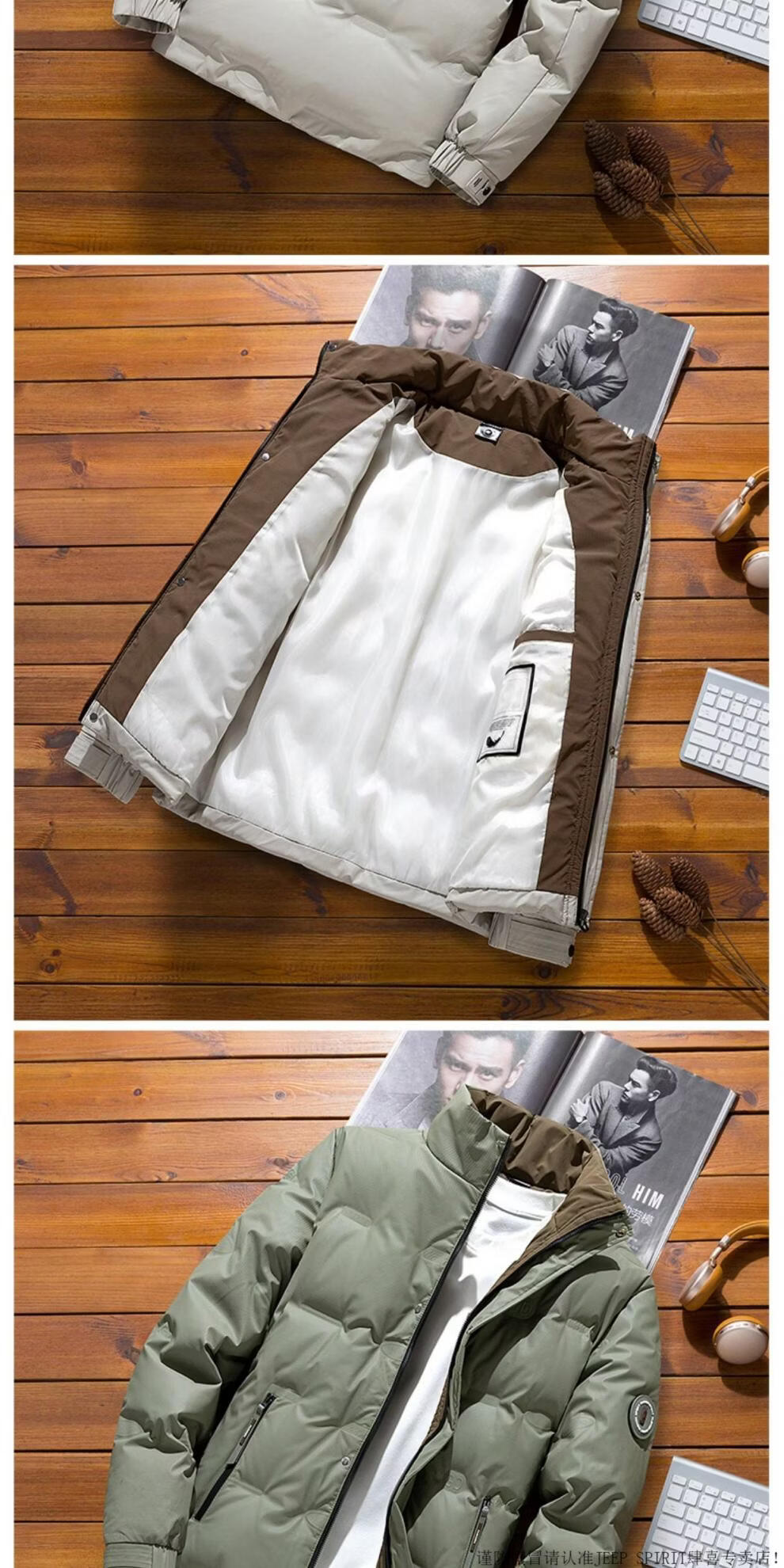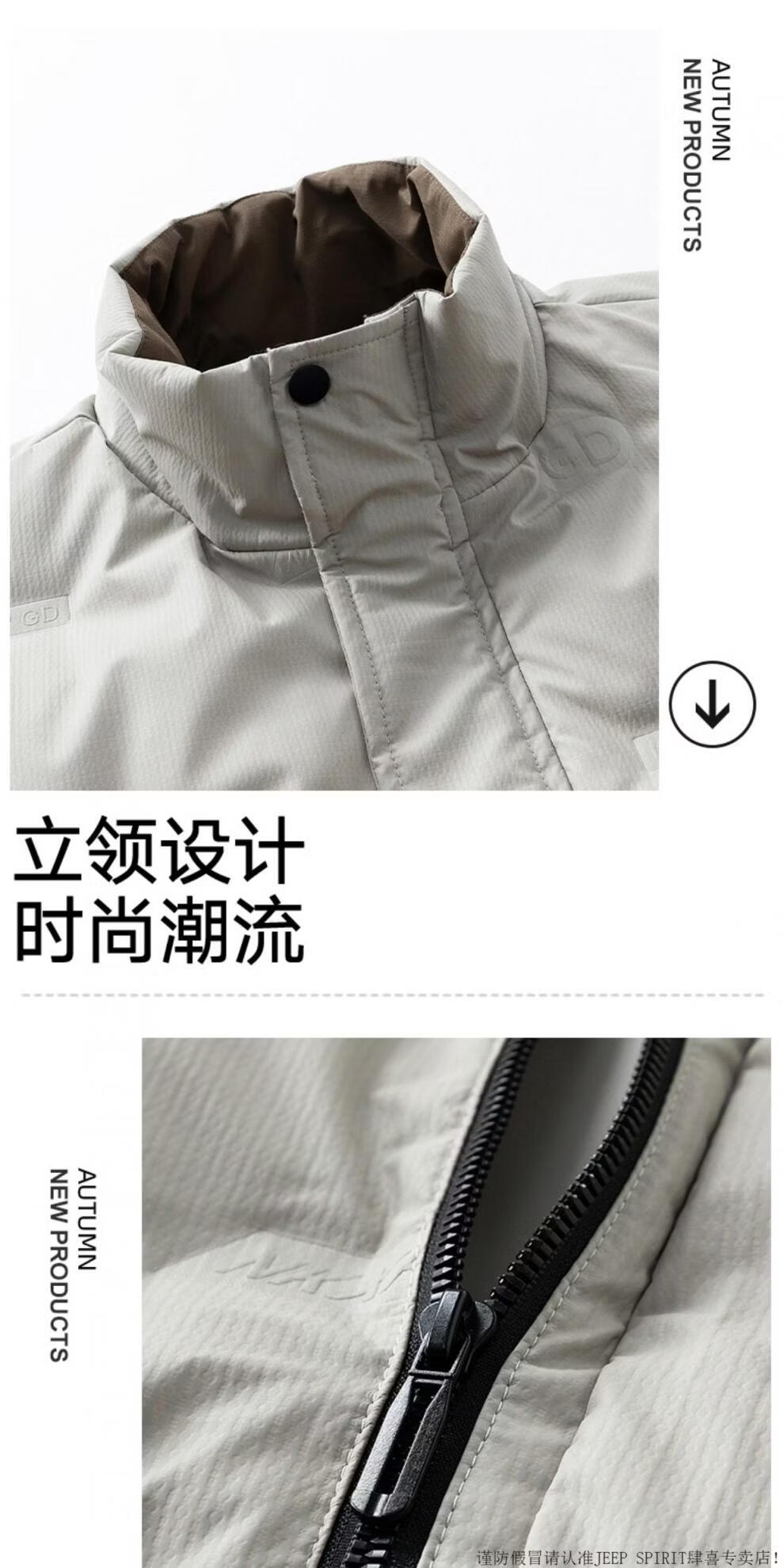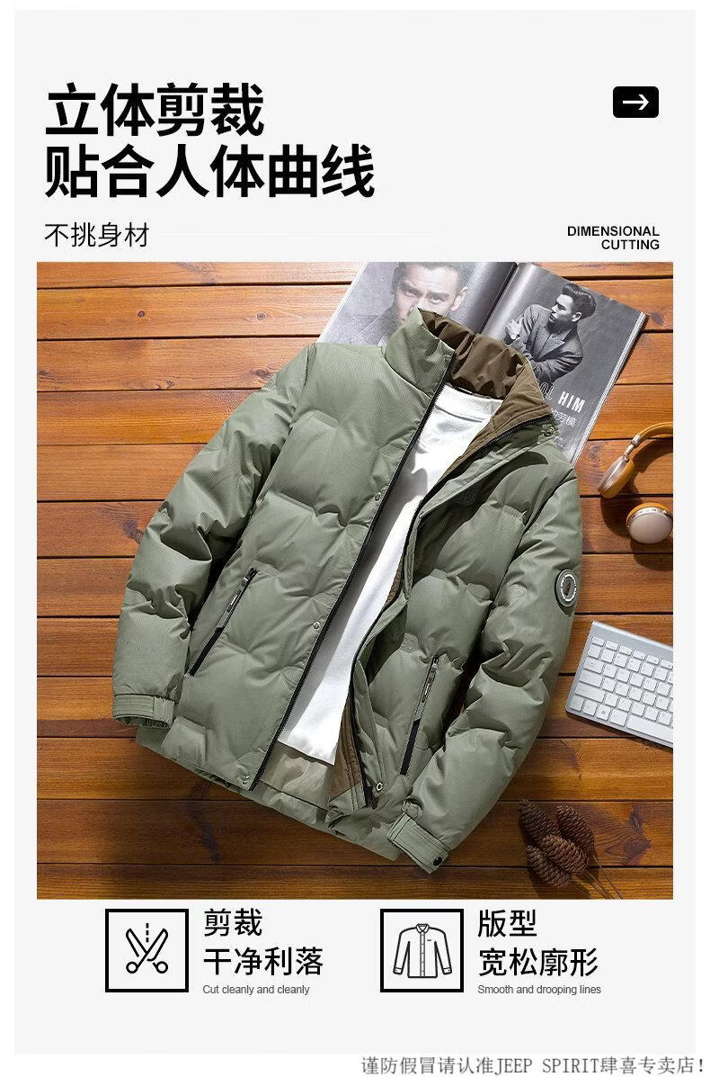 JEEP SPIRIT осенне-зимний мужской пуховик 2025 года, новые утолщенные короткие повседневные топы, красивая куртка с воротником-стойкой, кремово-белый пух, рекомендованный M 80-105Jin Jin равен 0,5 кг