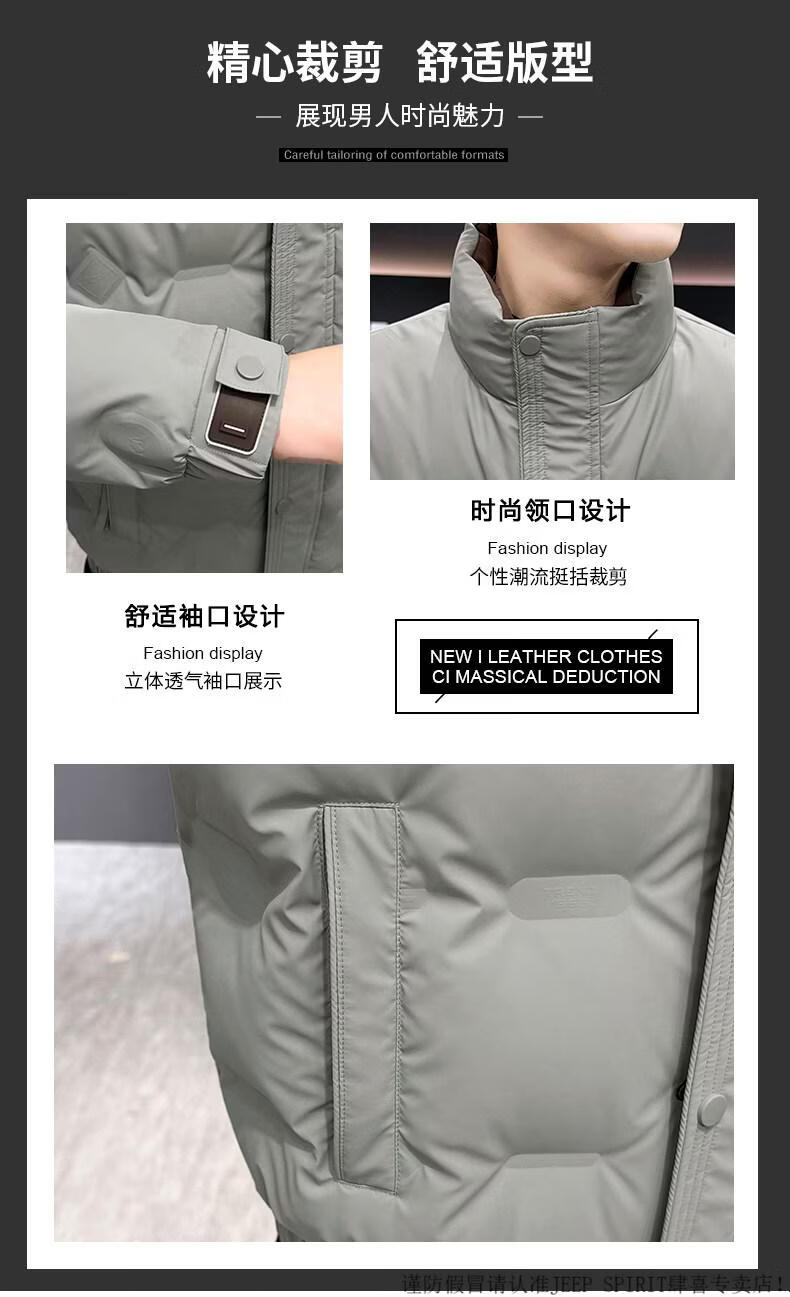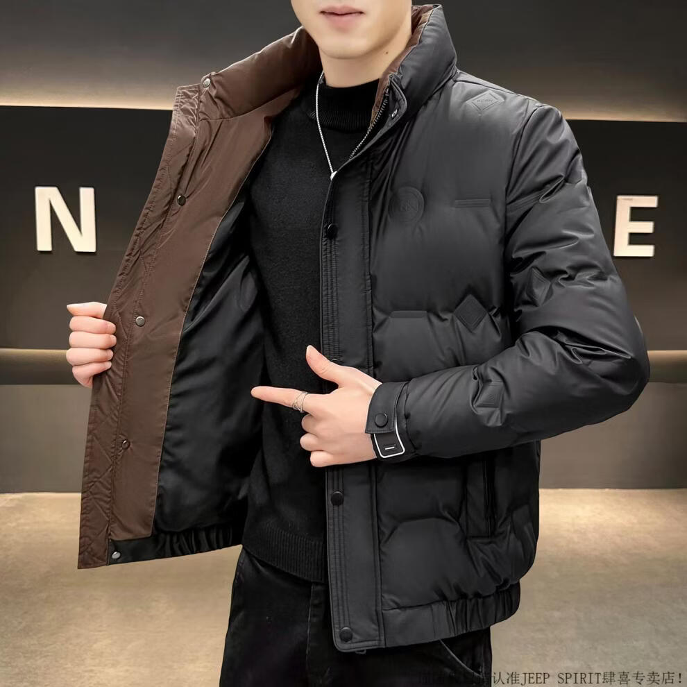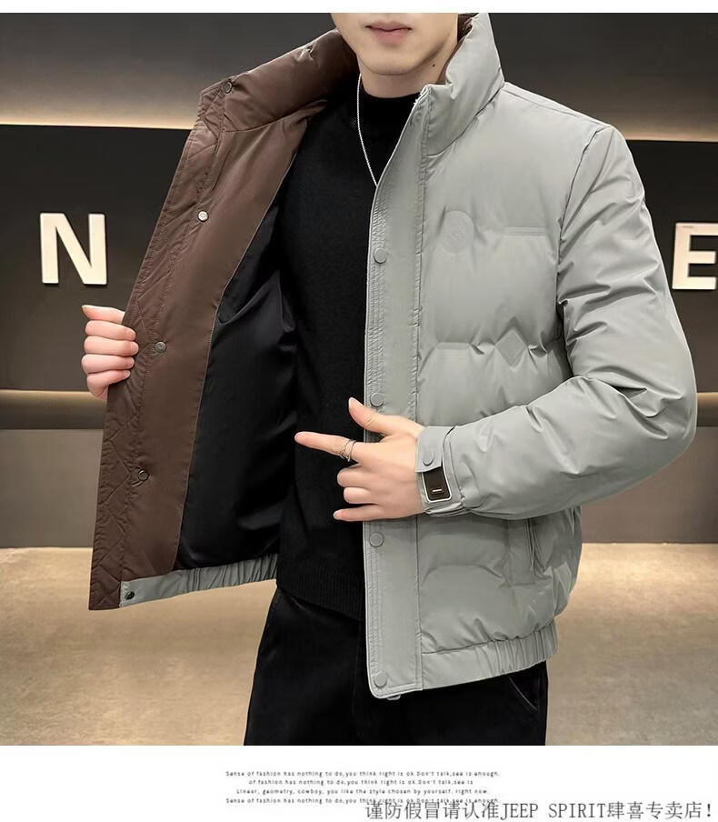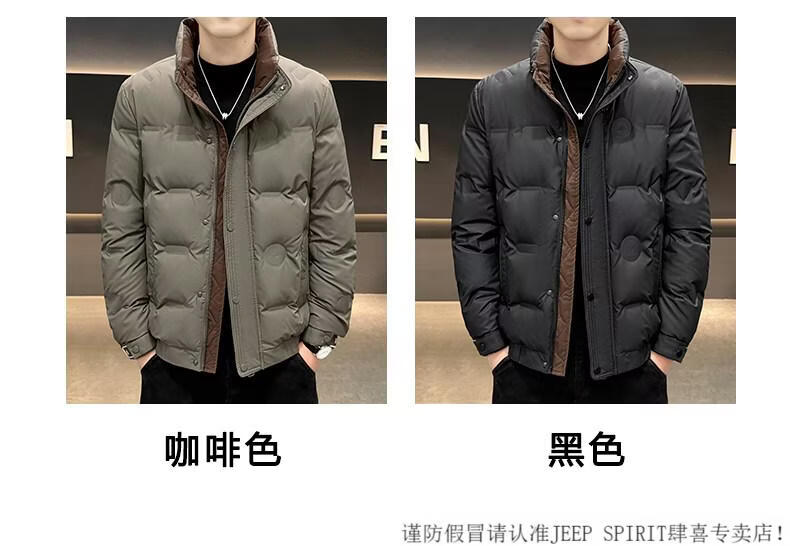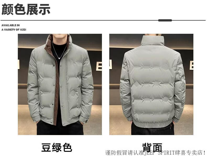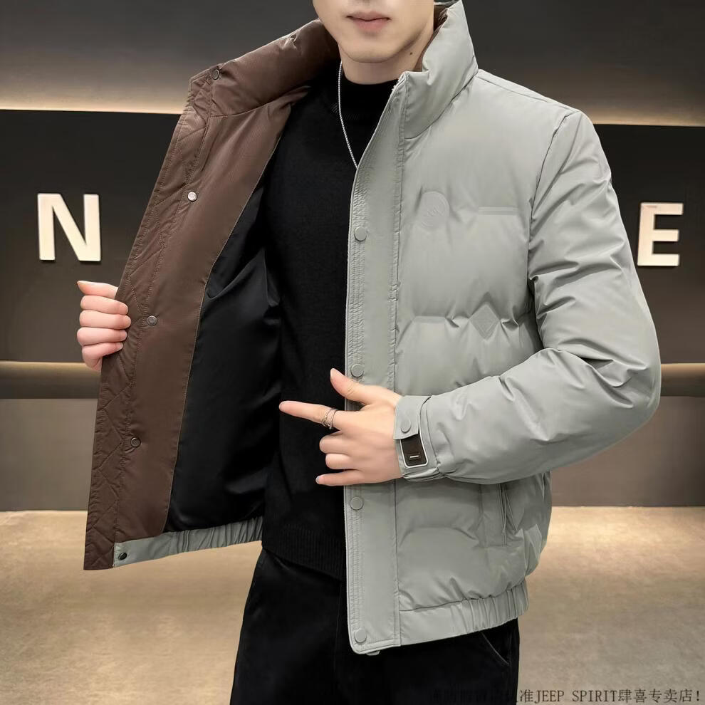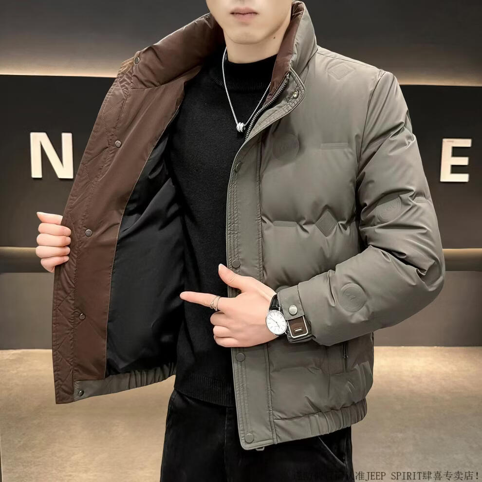 JEEP SPIRIT short stand collar down jacket for men 2025 new fashionable and handsome youth warm jacket winter tops pea green L