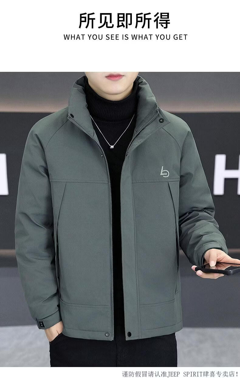 JEEP SPIRIT Light Mature Style Casual Down Jacket Men's Autumn and Winter Lightweight Stand-up Collar Warm Jacket Simple Subzero Coldproof Jacket Black M
