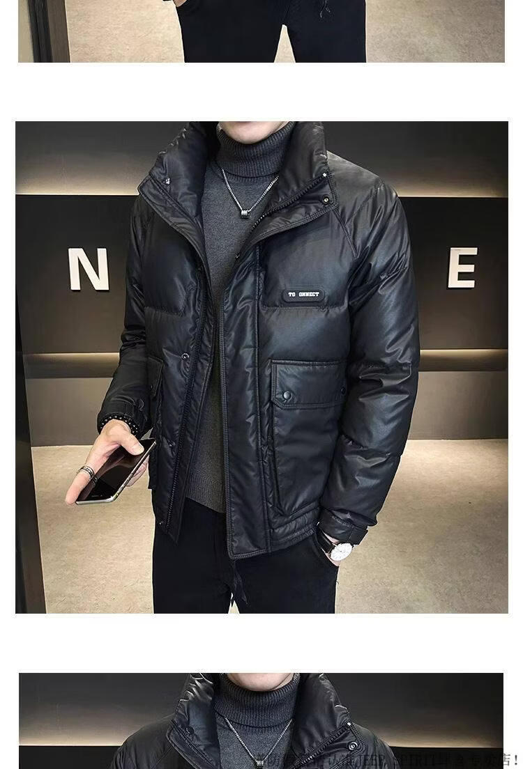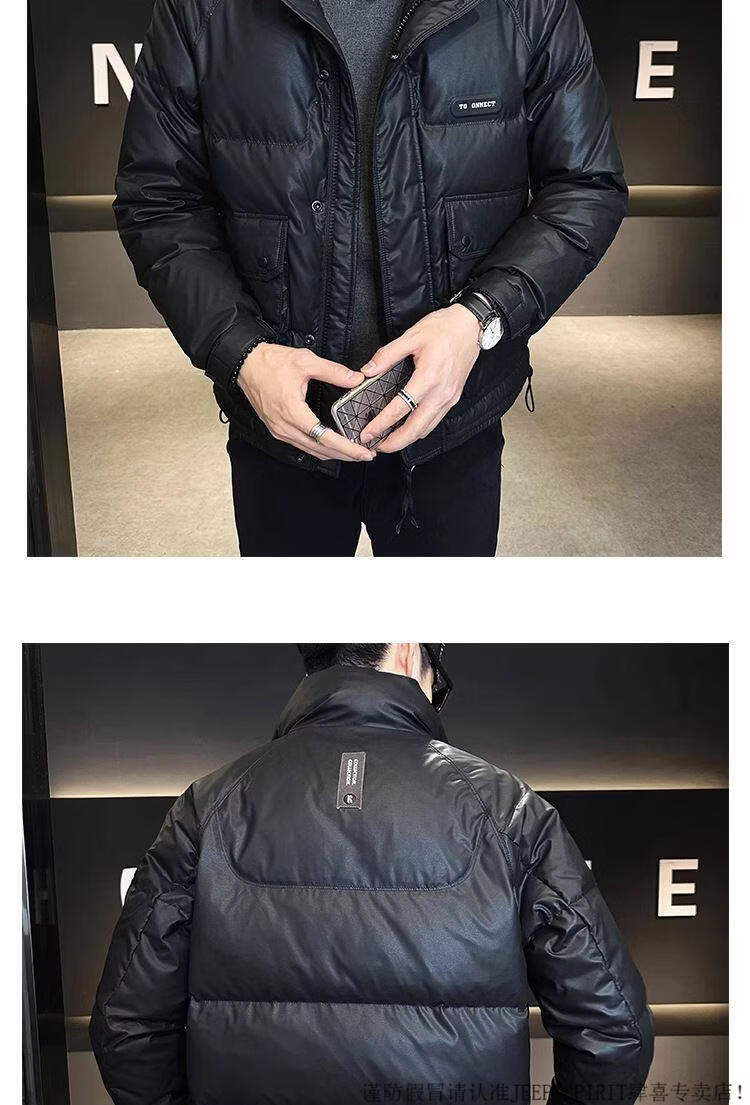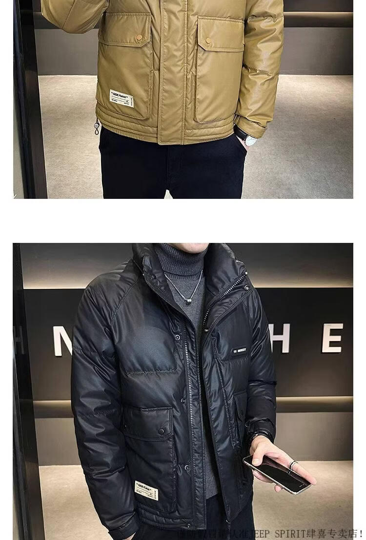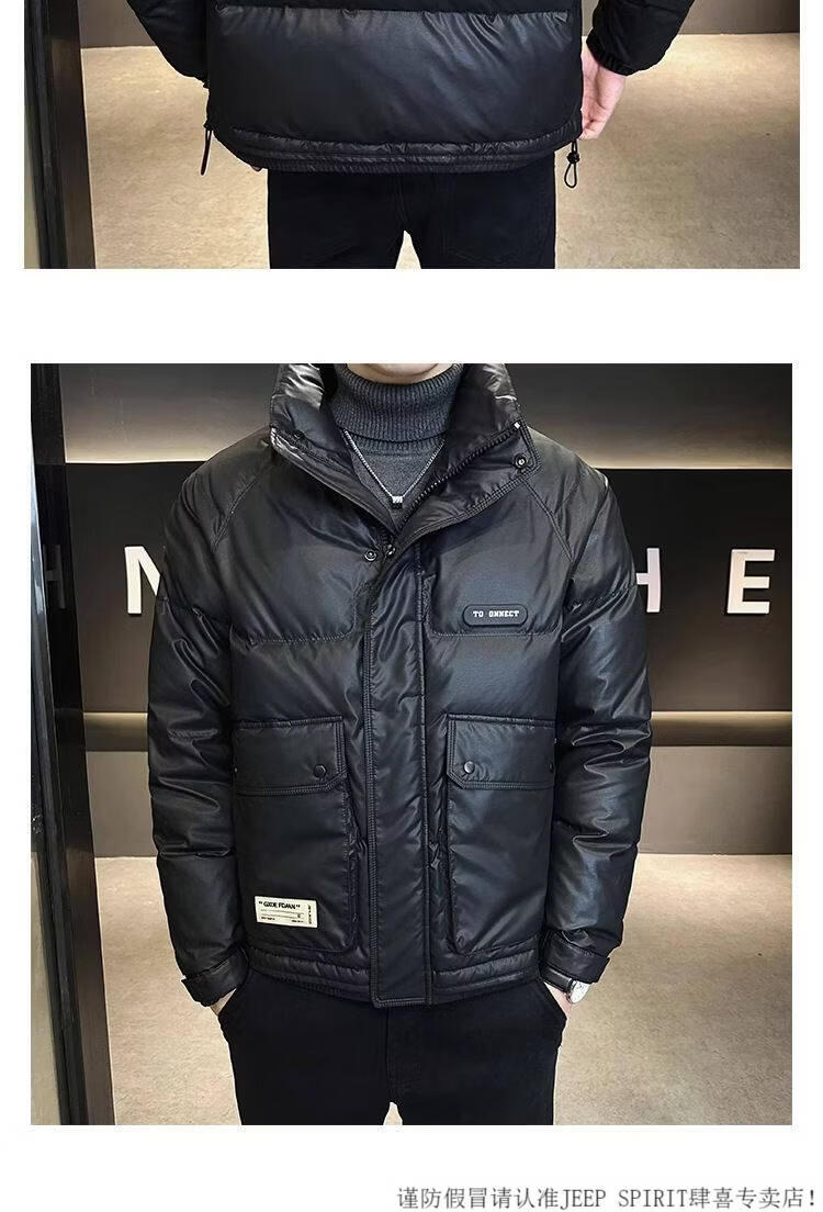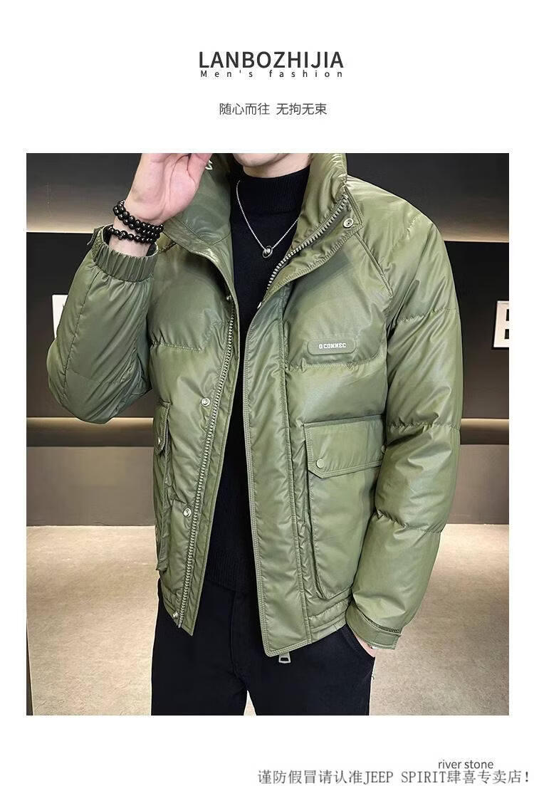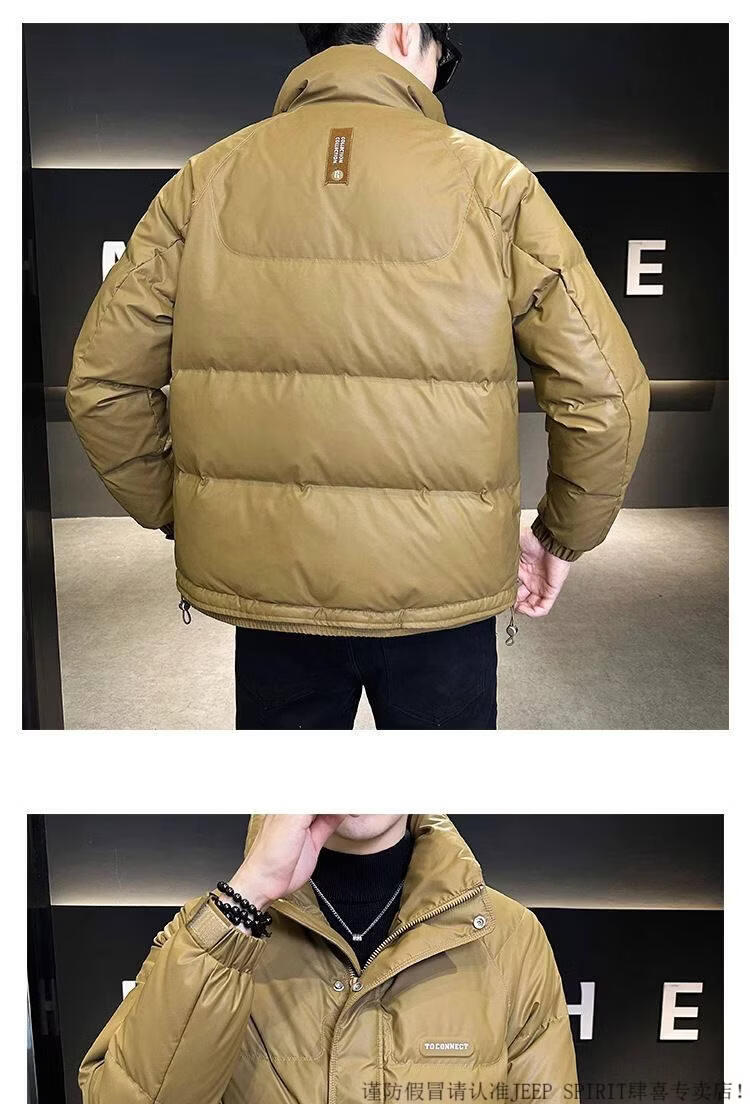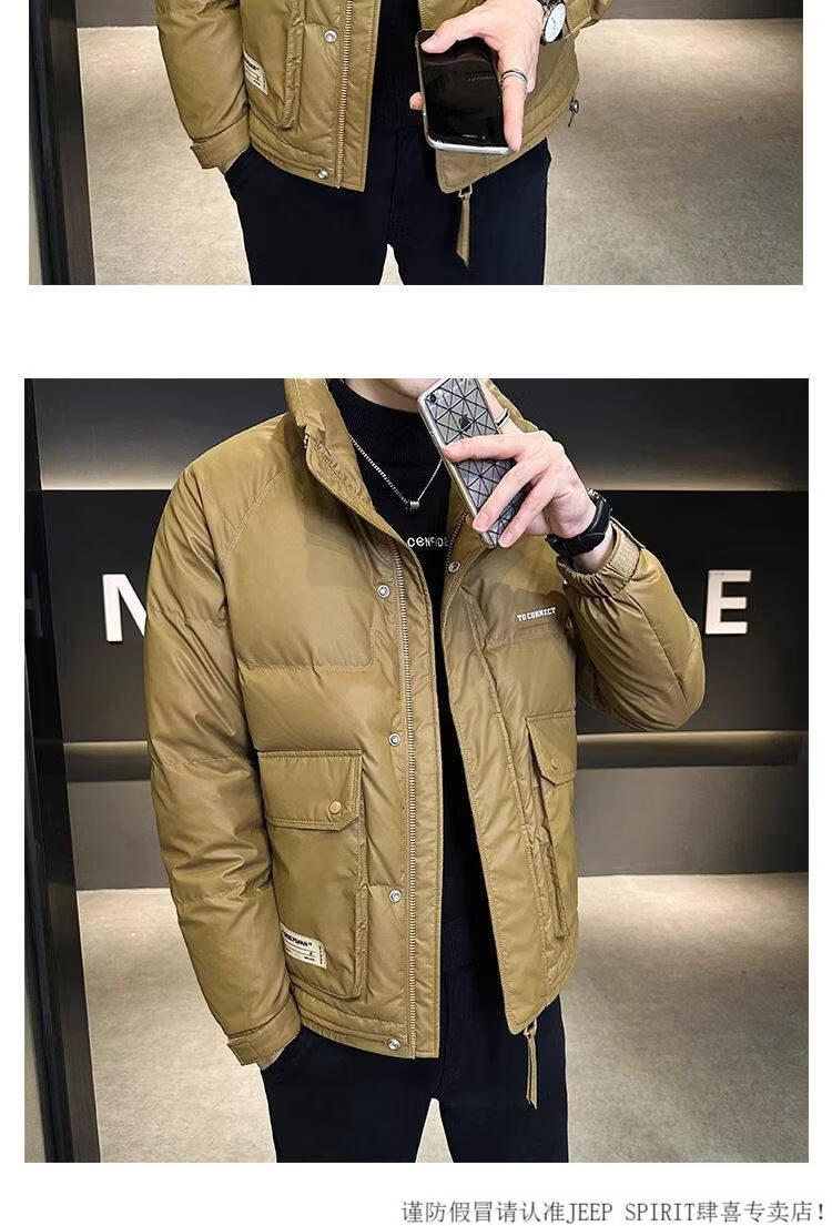 JEEP SPIRIT Leather Down Jacket Men's Winter 2025 New Men's Youth Short Winter Wear Thickened Stand Collar Jacket Army Green M