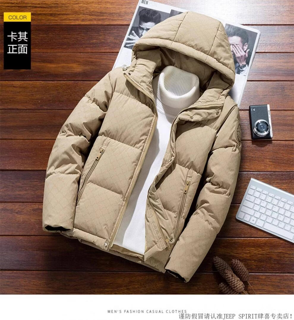 JEEP SPIRIT Down Jacket Men's Autumn and Winter 2025 New Winter Hooded Thickened Short Handsome Winter Duck Down Jacket Black Duck Down 2XL