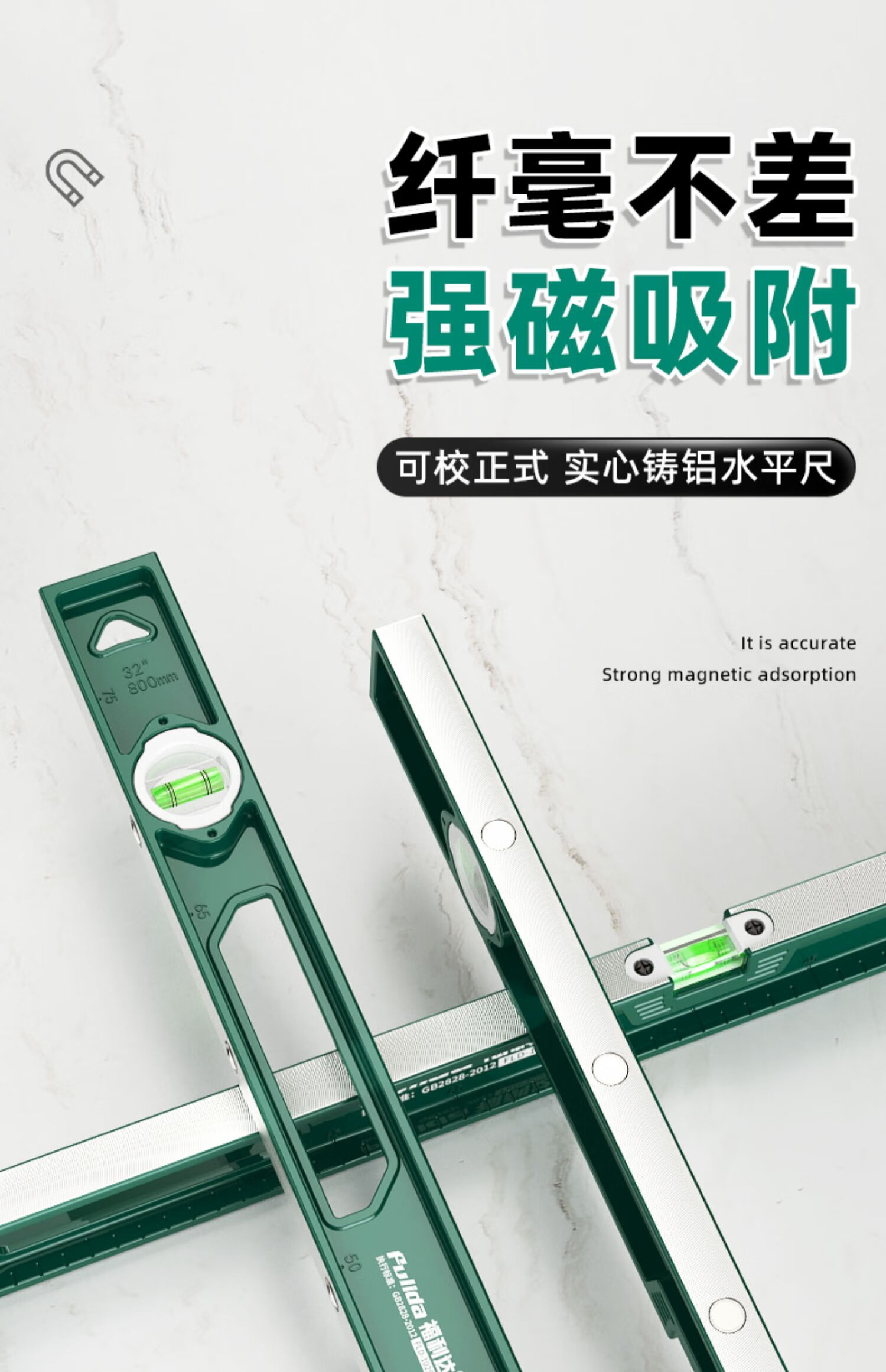 Taslon spirit level high-precision flat water ruler with strong magnetic level ruler fan small aluminum alloy solid cast aluminum anti-fall drawing line industrial grade solid cast aluminum 80cm strong magnetic tape measure