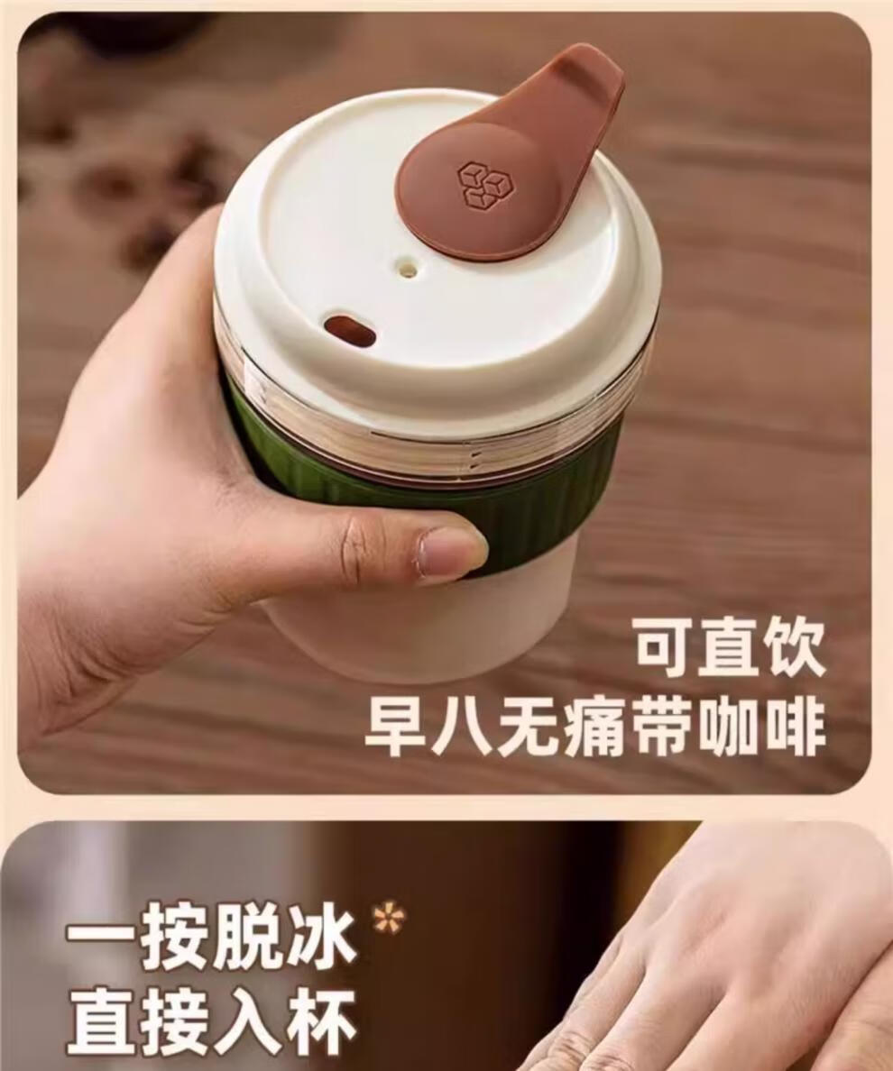 Sailoto Ice Tray Water Cup Ice Making Mold, Compact and Easy-to-Go Cup to Carry Coffee Ice Cubes, Portable Cold Brew Beverage Ice Cup, Brown Mocha Ice Cup + 1 Press Ice Tray