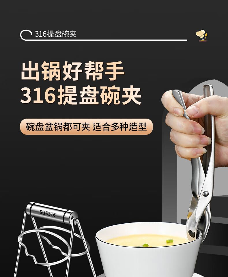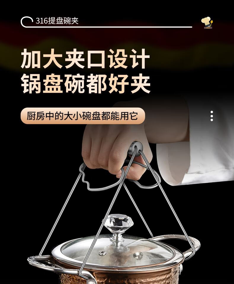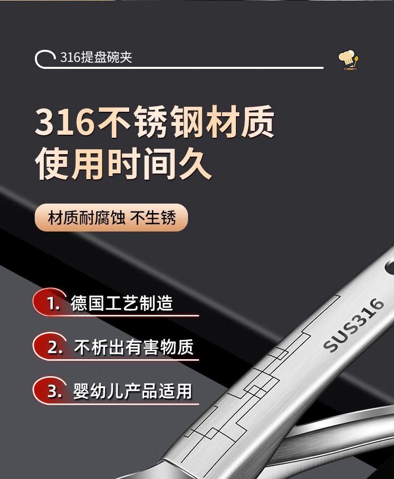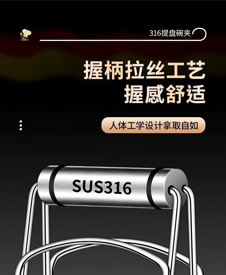 RSRDDY anti-scalding bowl clamp 316 stainless steel steamed vegetable clamp plate bowl clamp anti-slip 304 plate lifter grade 316 stainless steel