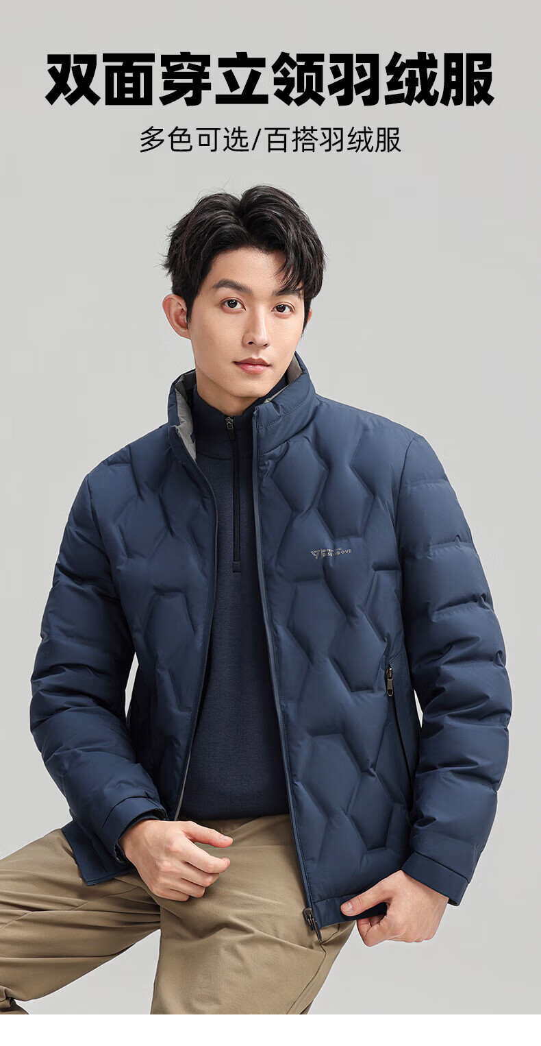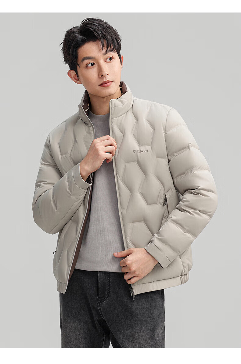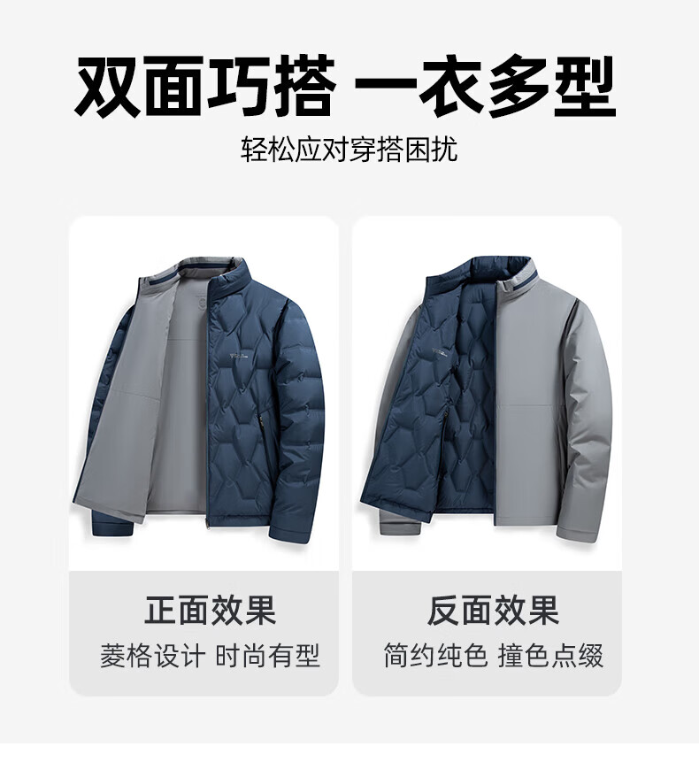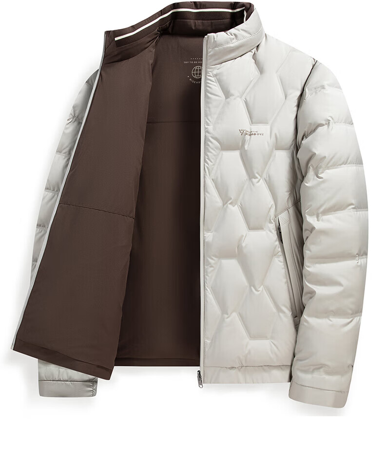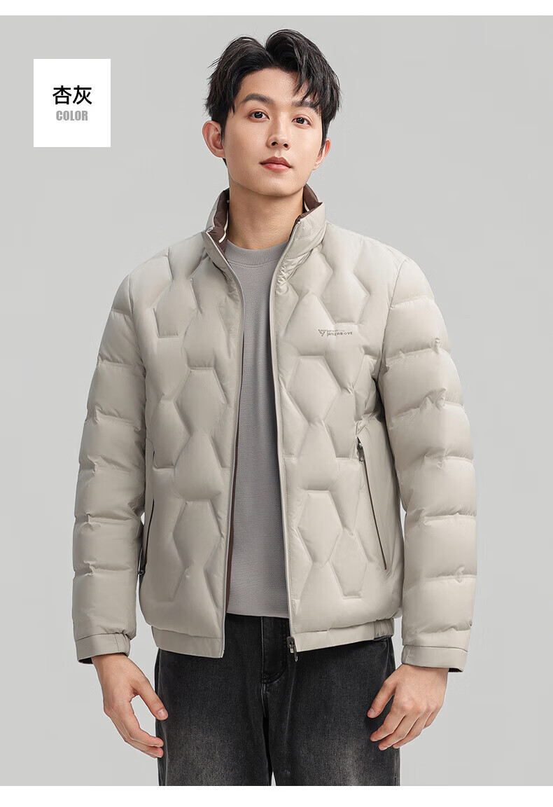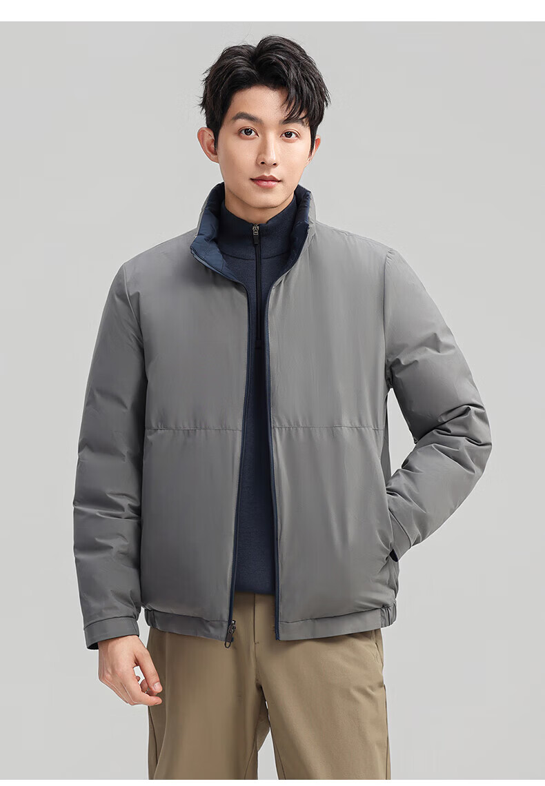 ROMON Двусторонний пуховик с воротником-стойкой. Мужская осень-зима 2025. Новая модная повседневная универсальная короткая теплая куртка для молодежи и людей среднего возраста Абрикосово-серый 4XL (195) Рекомендуемый вес 180-200Цзиньцзинь равен 0,5 кг