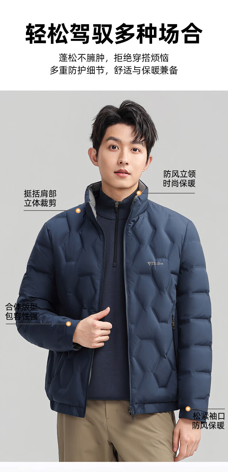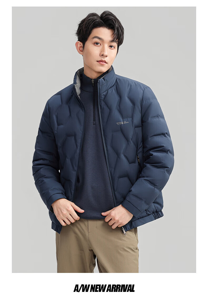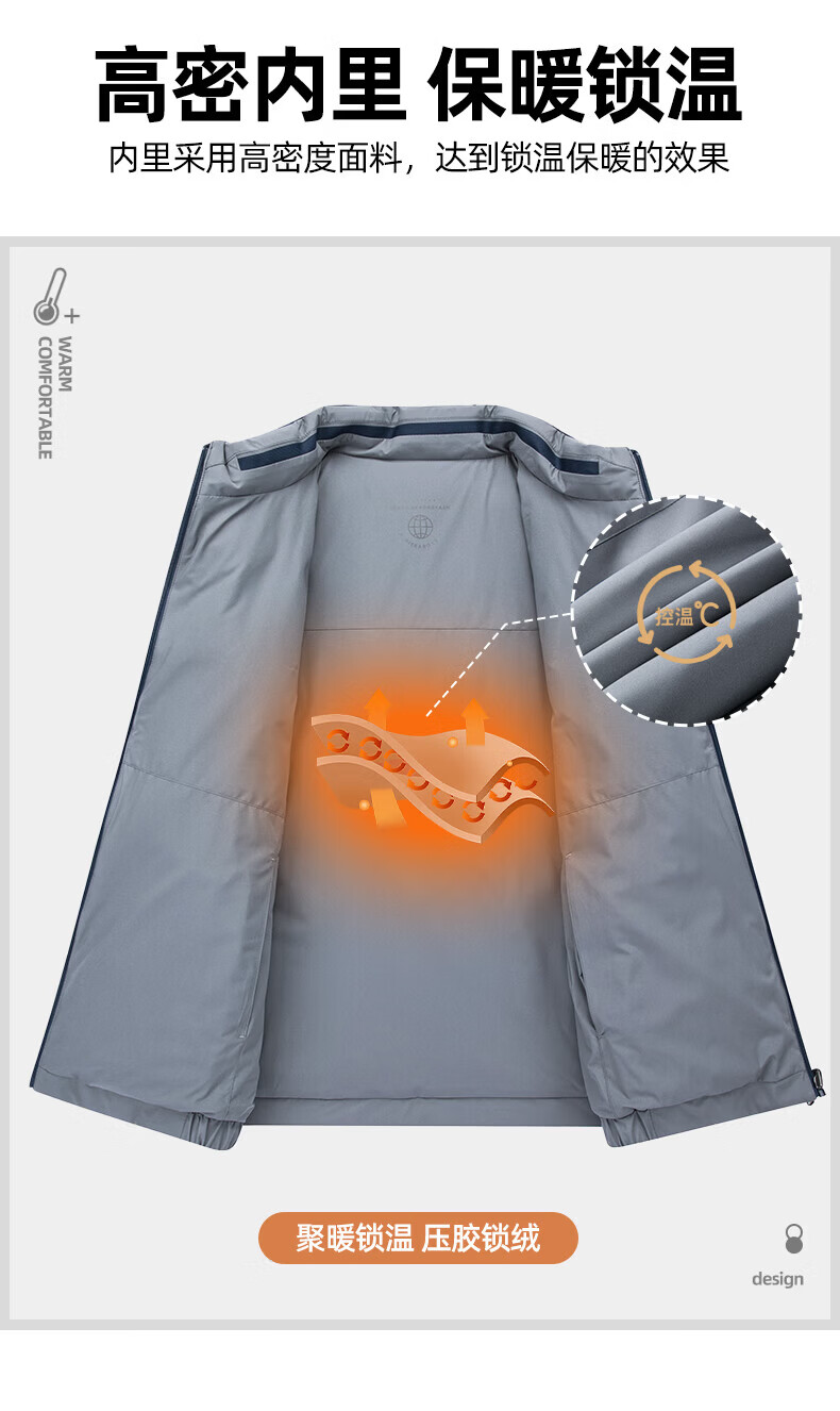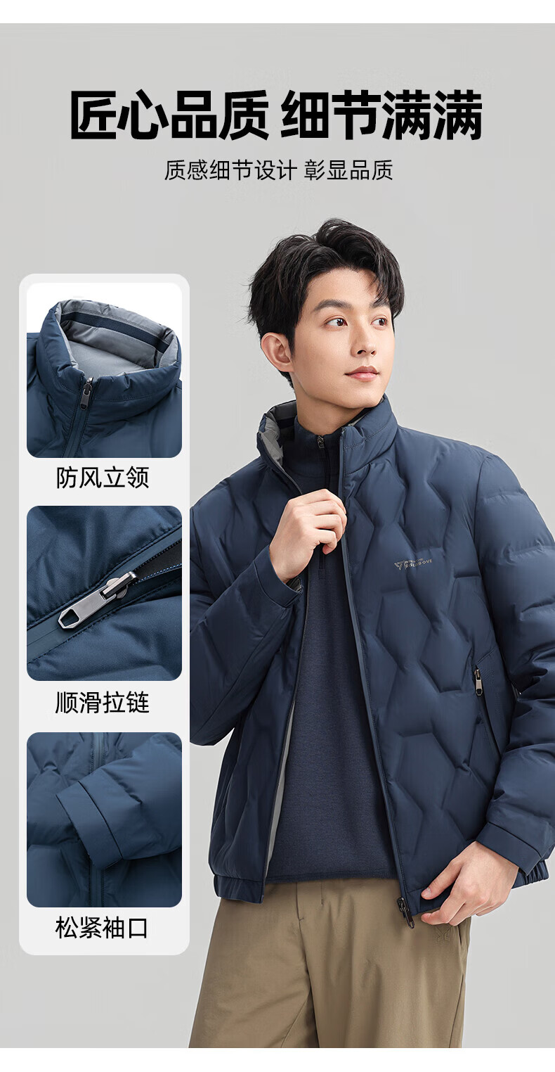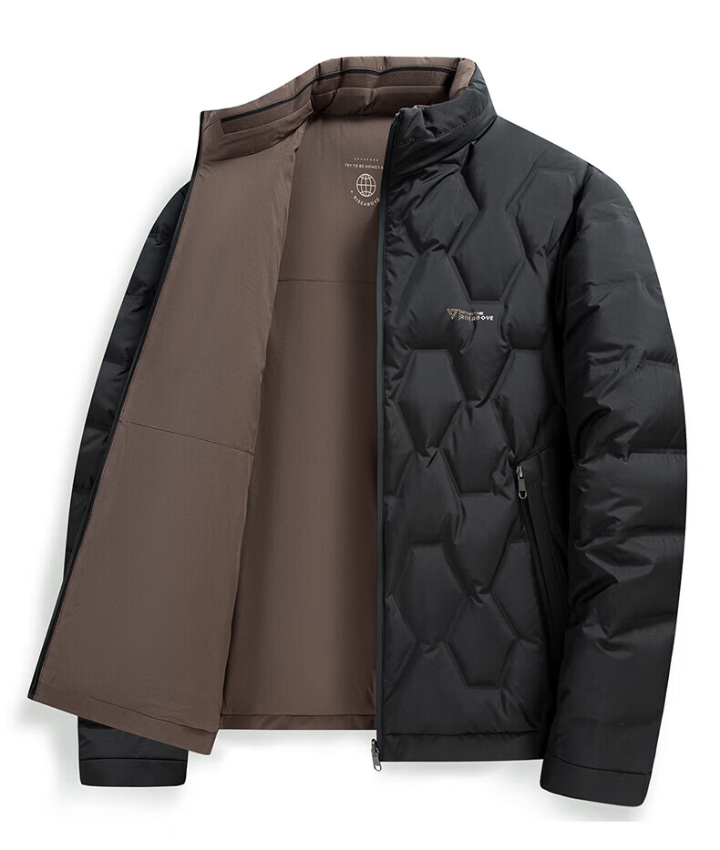 ROMON Двусторонний пуховик с воротником-стойкой. Мужская осень-зима 2025. Новая модная повседневная универсальная короткая теплая куртка для молодежи и людей среднего возраста Абрикосово-серый 4XL (195) Рекомендуемый вес 180-200Цзиньцзинь равен 0,5 кг