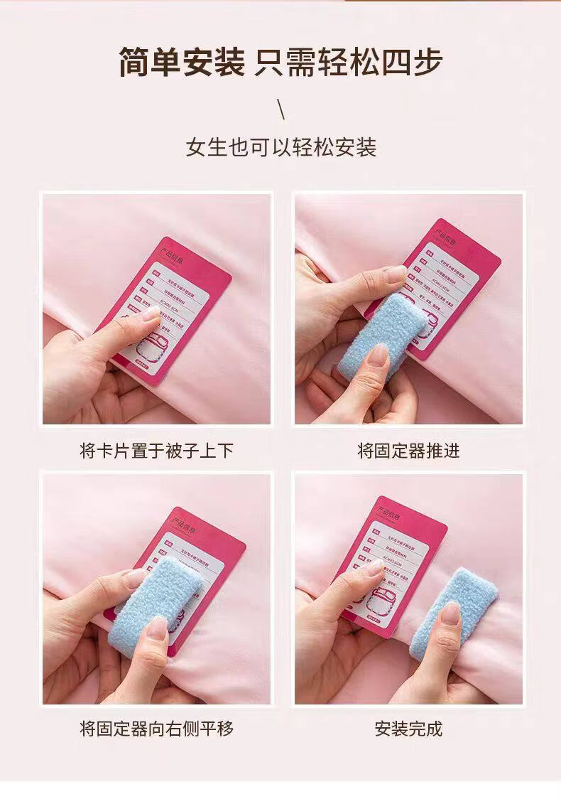 Shantou Lincun thick quilt retainer pinless safety anti-run quilt artifact anti-slip clip buckle quilt cover quilt cover sheet sheet retainer romantic pink-plush needleless style 4 pieces