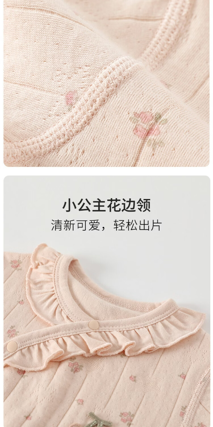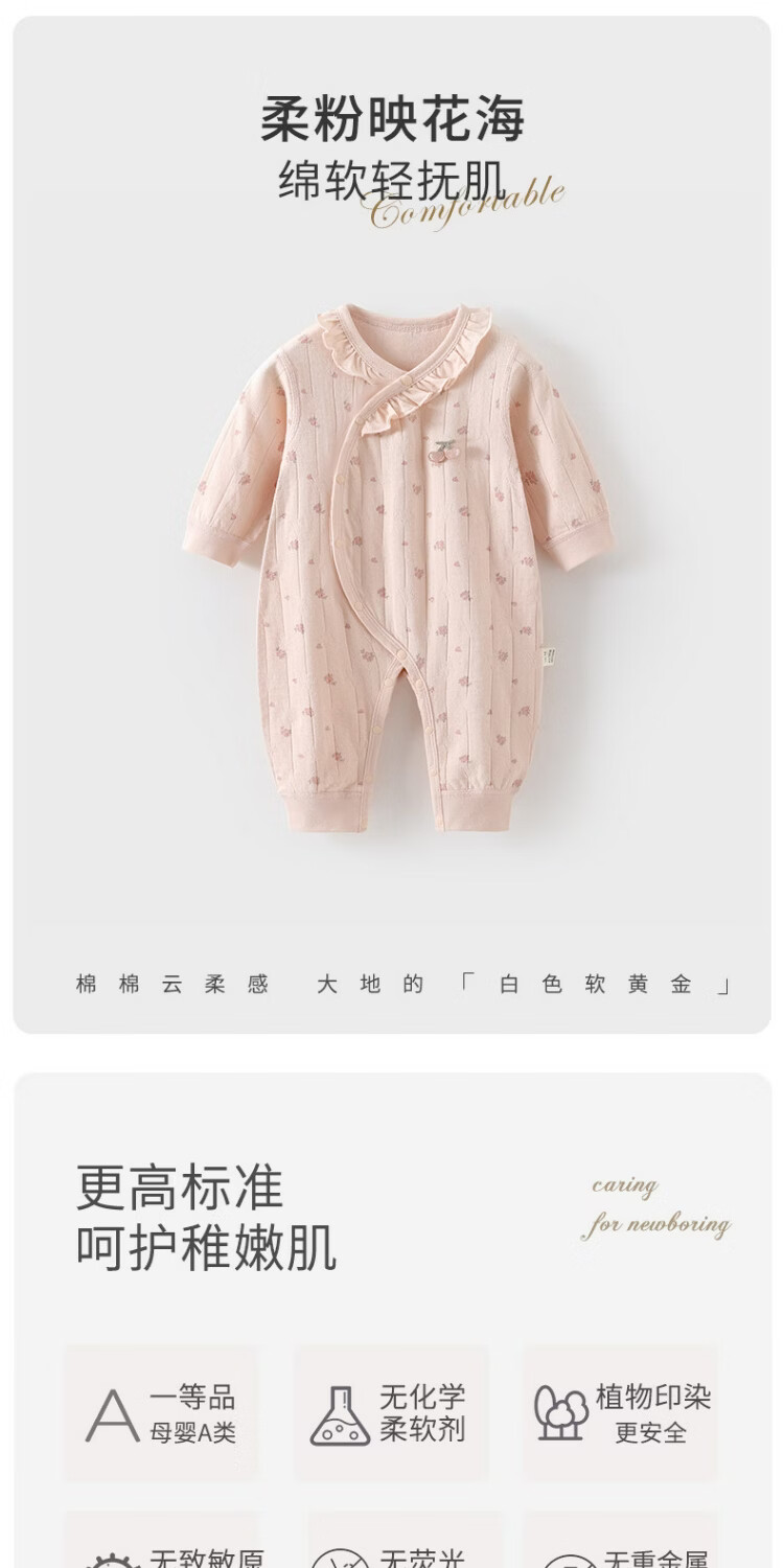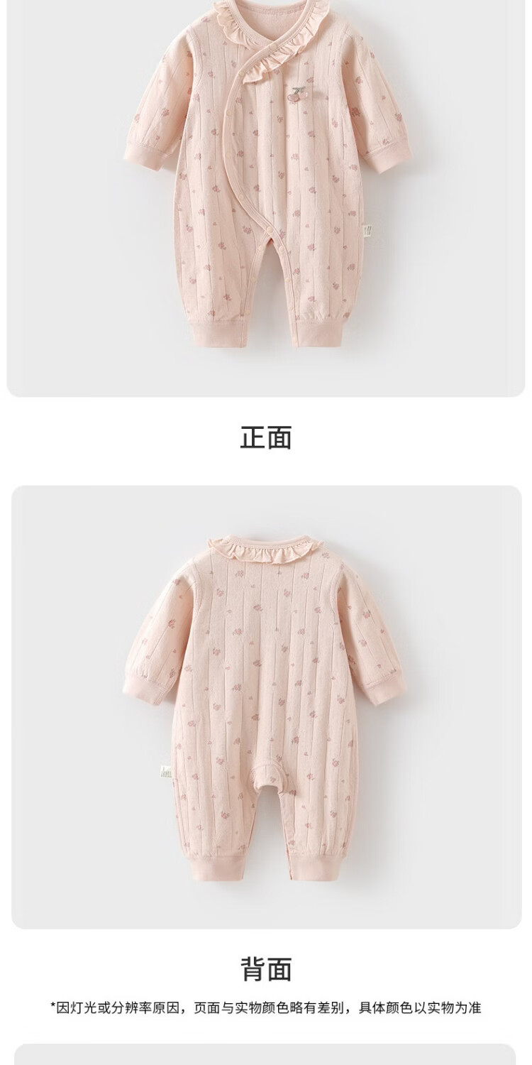 JOYNCLEON newborn pure cotton one-piece baby winter underwear, four-season baby crawling clothing, milky cherry blossom 73cm 6-9 months recommended weight 7.2-9kg