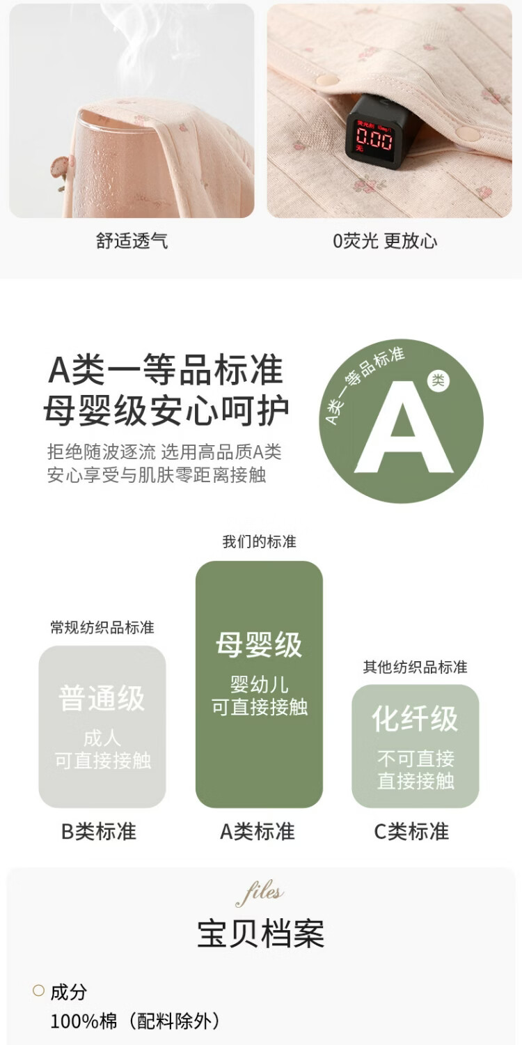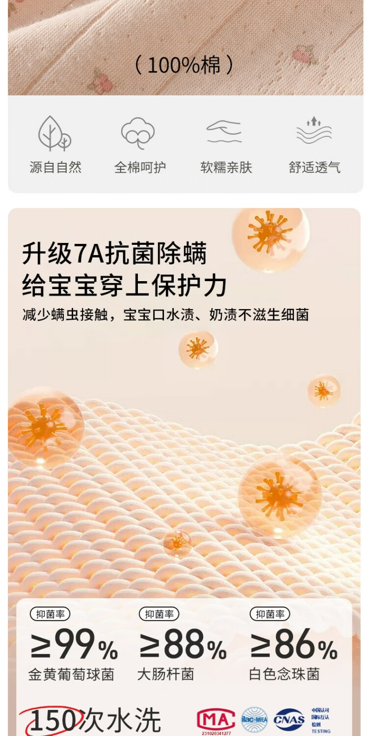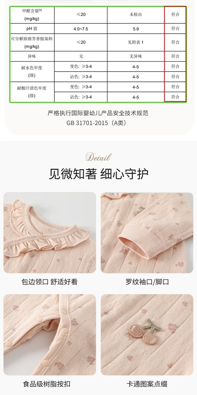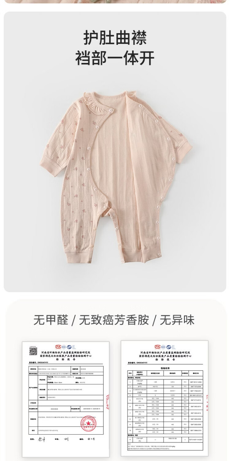 JOYNCLEON newborn pure cotton one-piece baby winter underwear, four-season baby crawling clothing, milky cherry blossom 73cm 6-9 months recommended weight 7.2-9kg