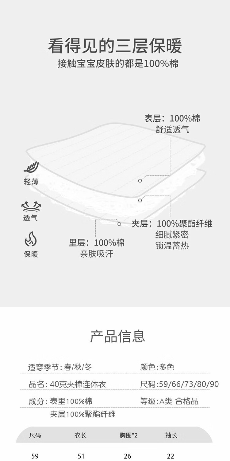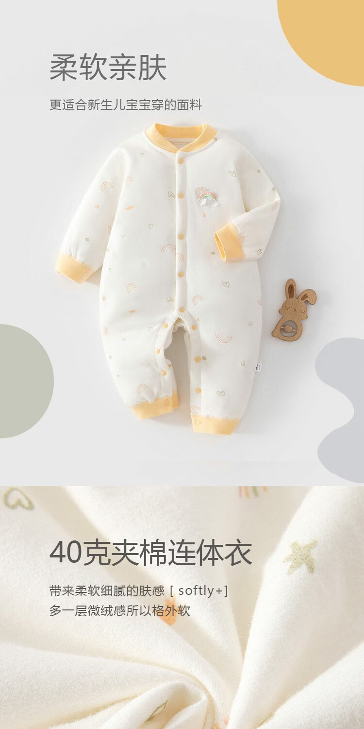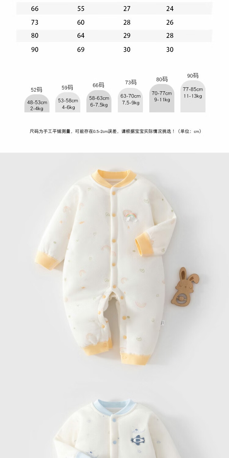 JOYNCLEON Newborn baby jumpsuit winter quilted thickened newborn baby jumpsuit spring and autumn warm cotton rompers yellow rainbow 40g quilted 59cm 1-3 months recommended weight 3.5-6.9kg