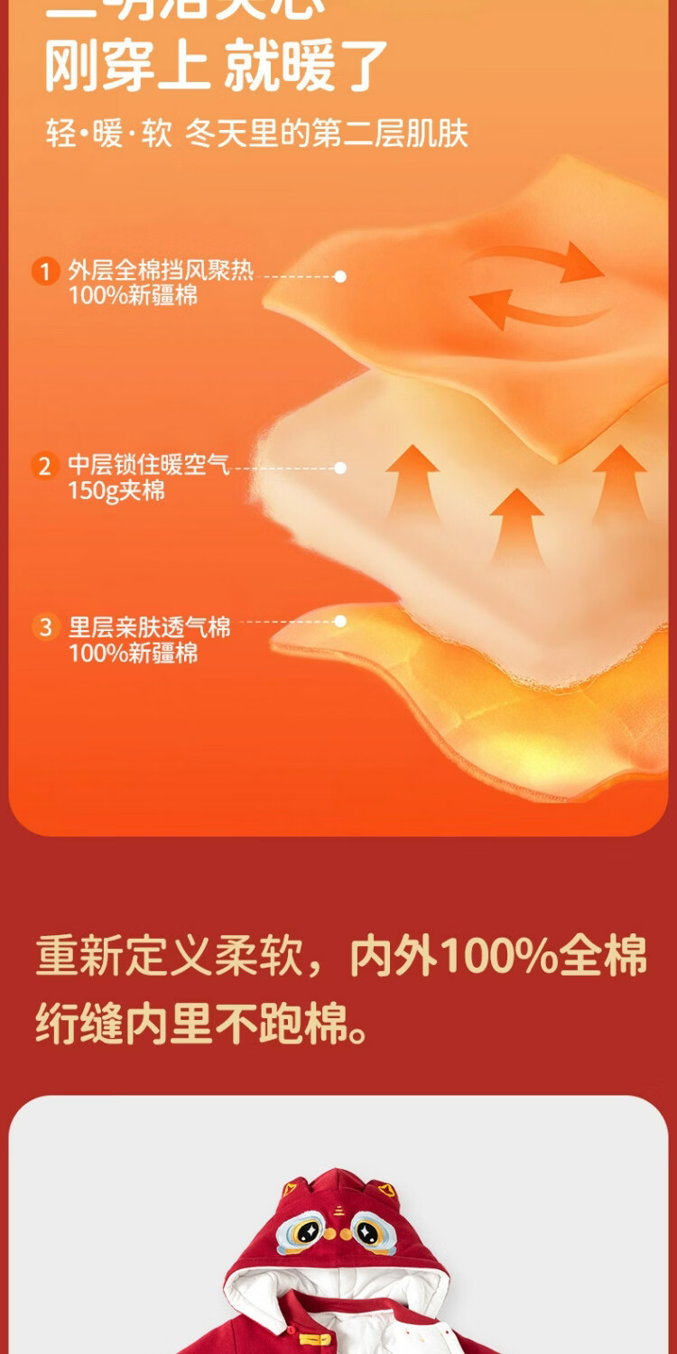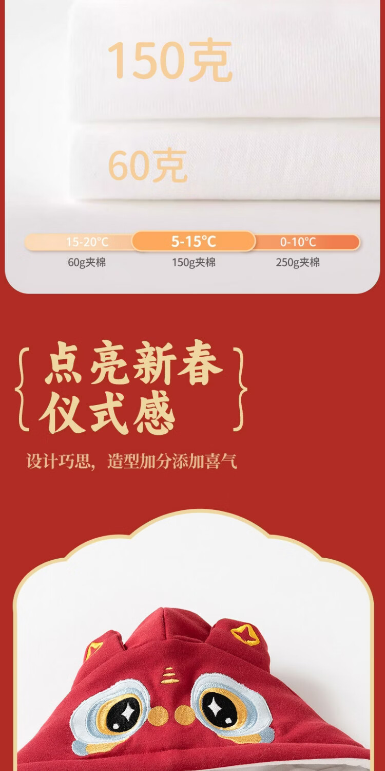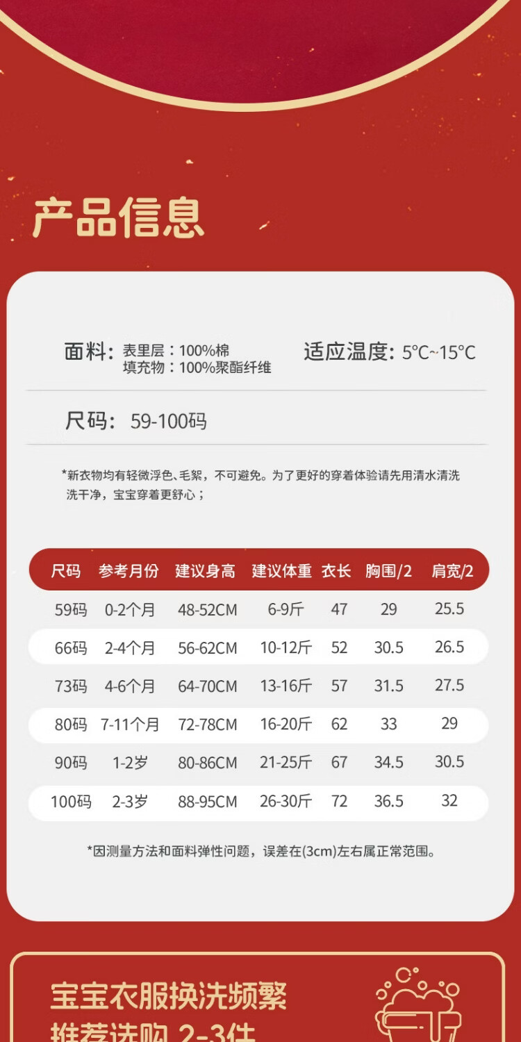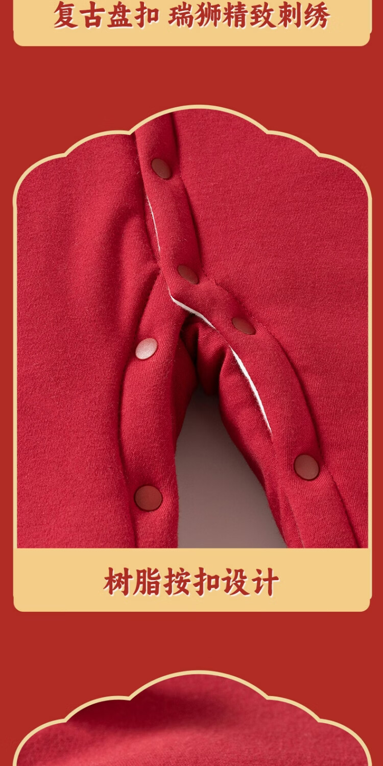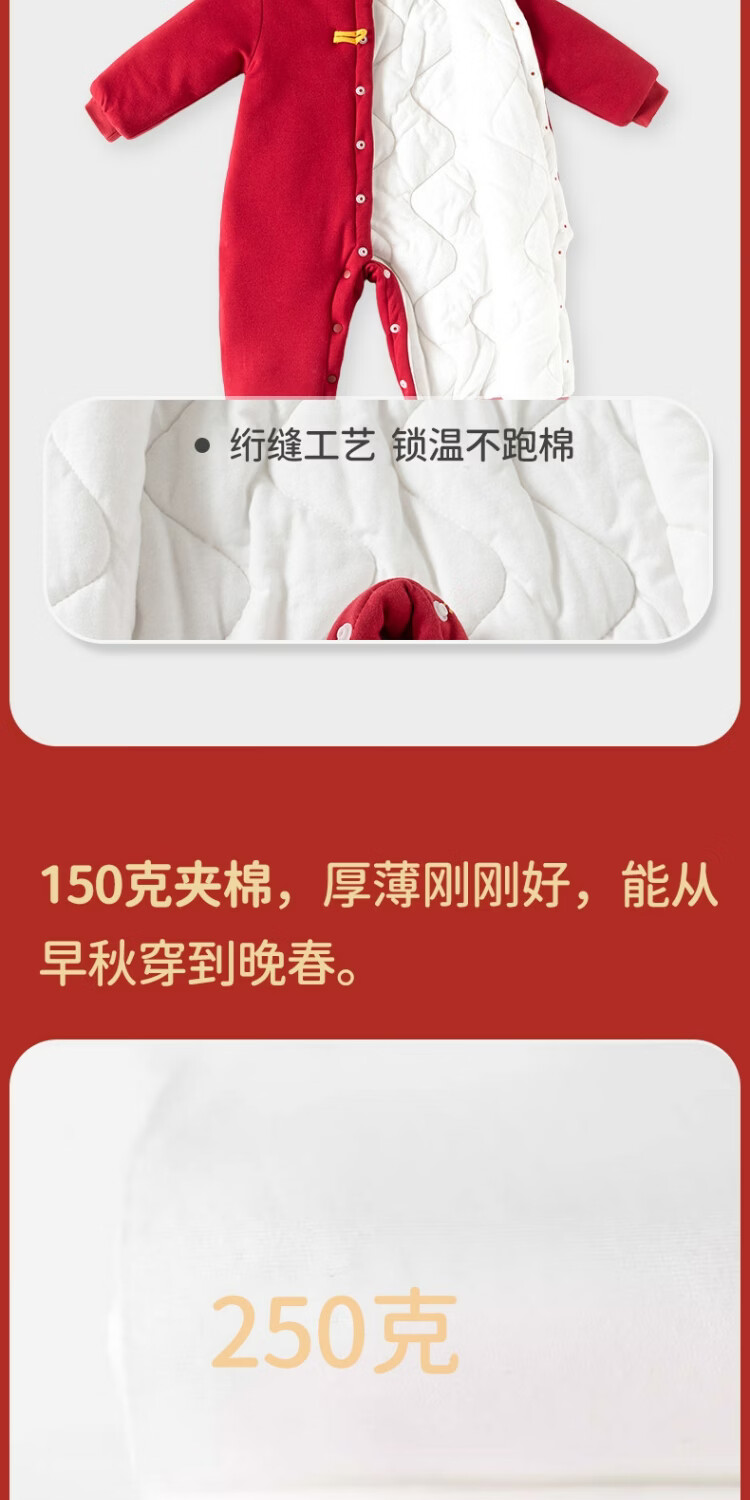JOYNCLEON Newborn baby quilted one-piece winter red New Year's greetings suit for men and women, cute tiger 59cm 1-3 months recommended weight 3.5-6.9kg