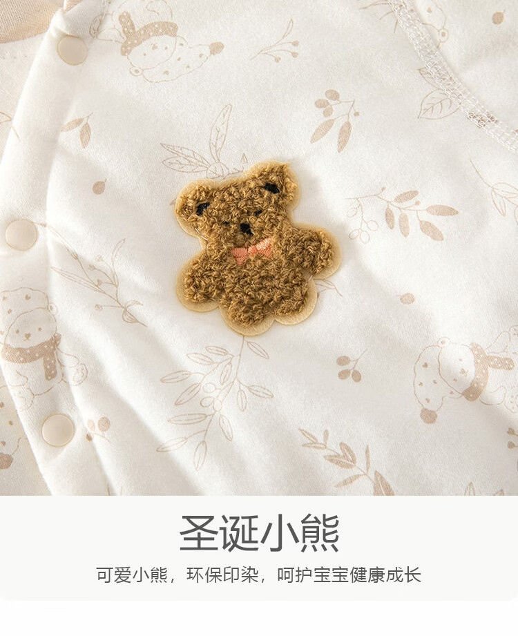 JOYNCLEON Baby Winter Warm Thickened Jumpsuit, Baby Padded Jumpsuit, Spring and Autumn Outdoor Clothes, Infant and Toddler Clothes, 40g Cotton Jumpsuit, Christmas Bear, 80cm, 9-12 months, recommended weight 8.5-10kg