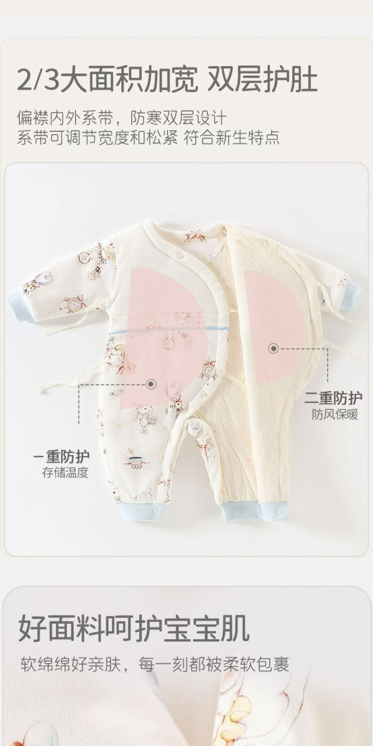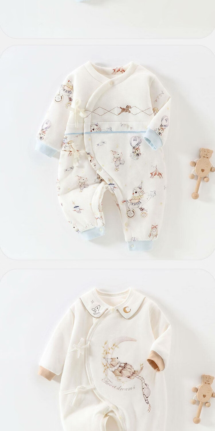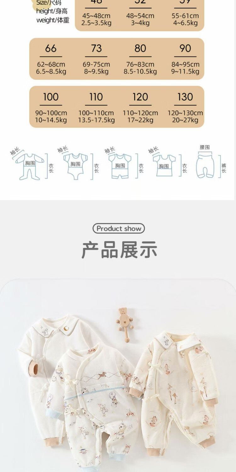 JOYNCLEON baby jumpsuit, newborn quilted and thickened harem, small month old baby clothes, infant and toddler outing clothing, Orange Rhyme Time 59cm, 1-3 months, recommended weight 3.5-6.9kg