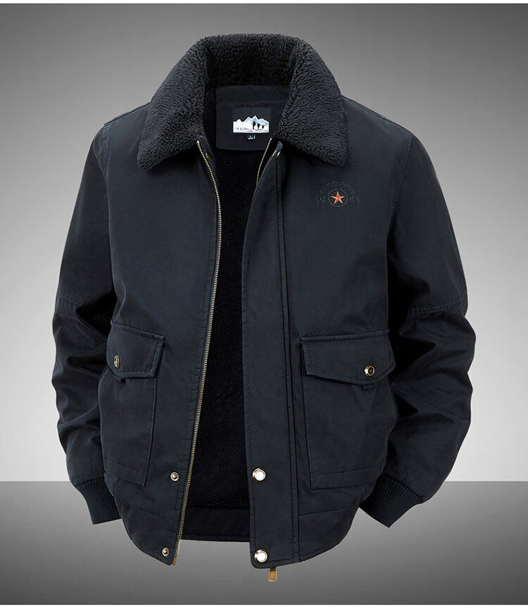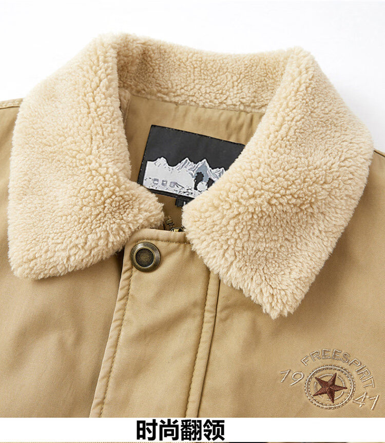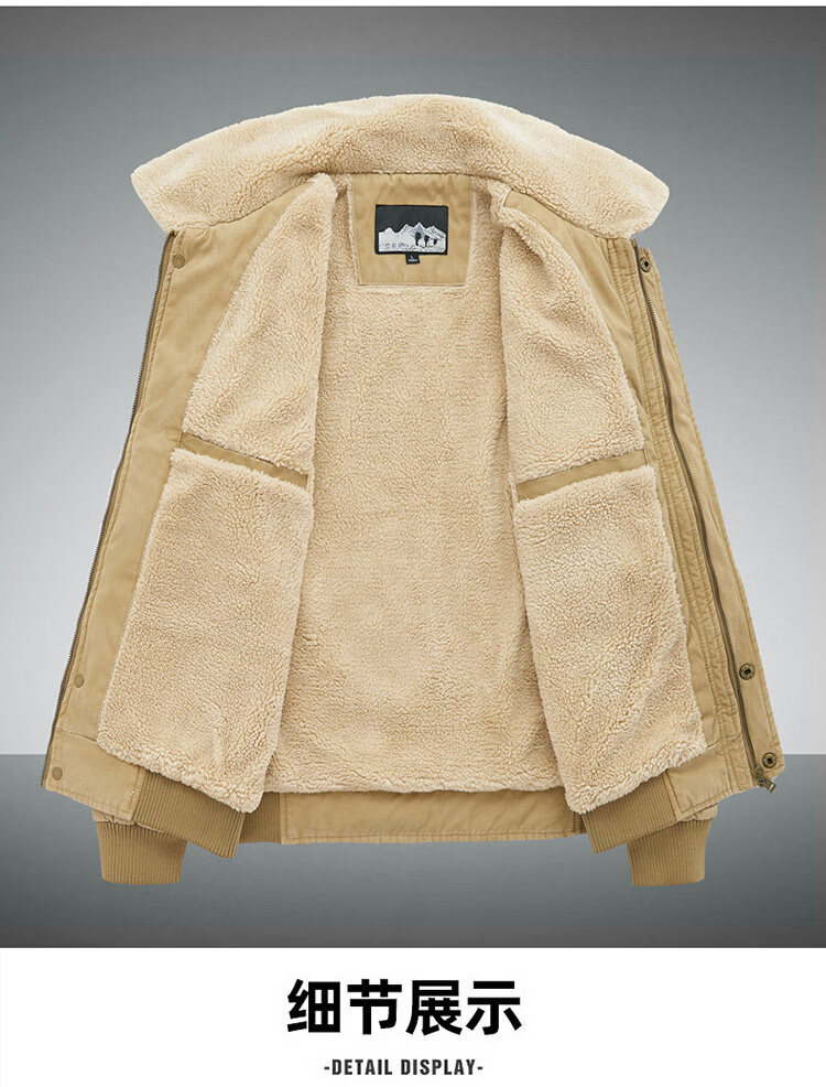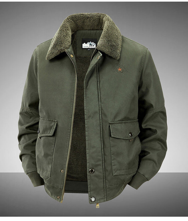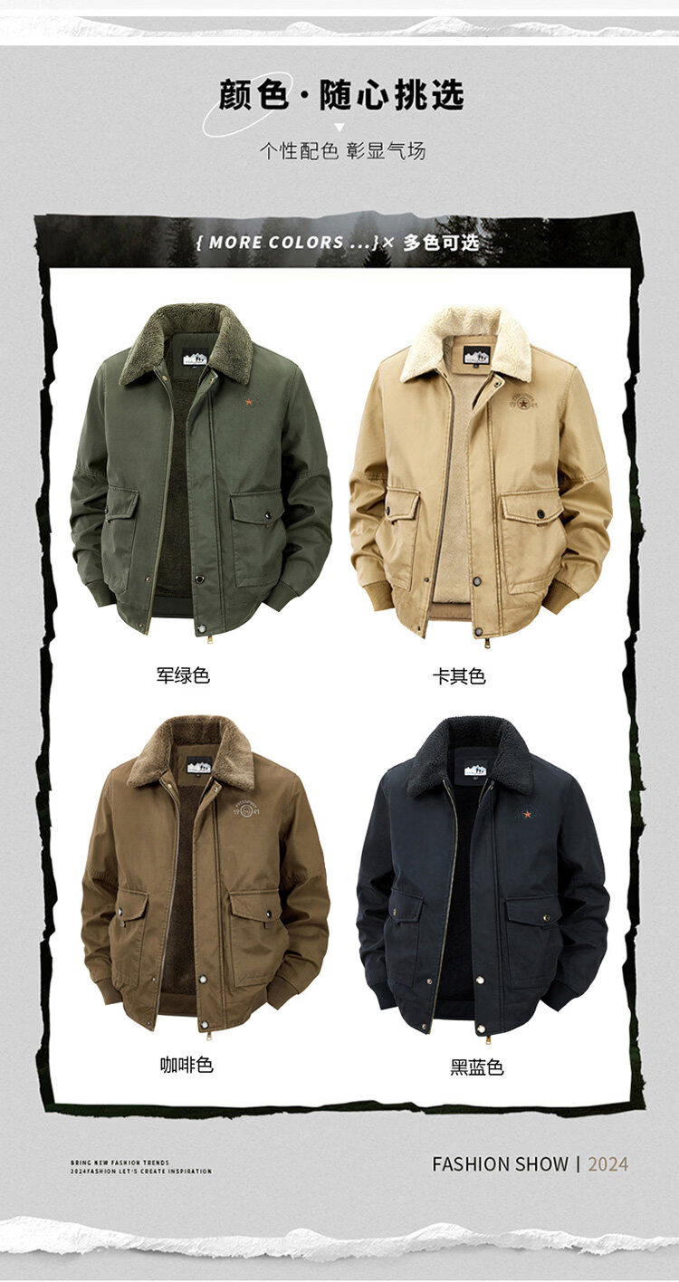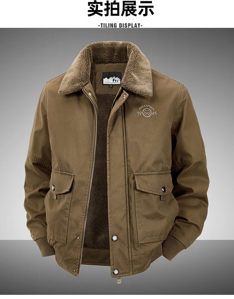 JEEP SPIRIT autumn and winter middle-aged velvet thickened cotton coat men's winter loose lapel casual loose cotton top 2188 Army green velvet thickened M 100-120Jin Jin equals about 0.5 kg
