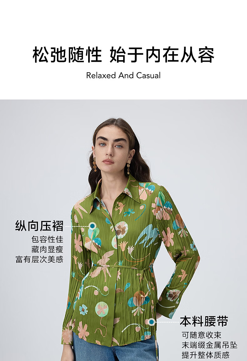 Langzi Yang series Langzi three-dimensional pleated lace-up shirt design waist top 2026 spring new olive green S