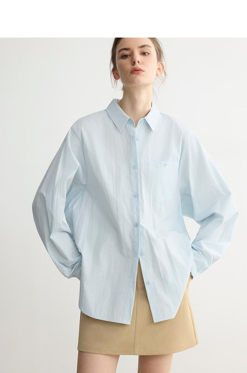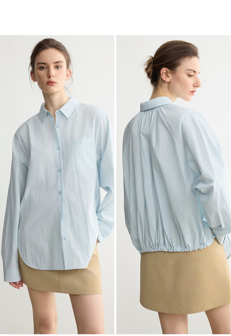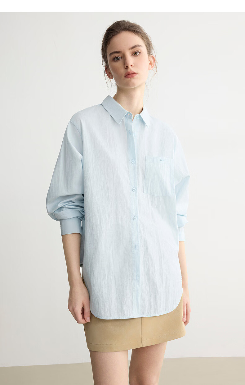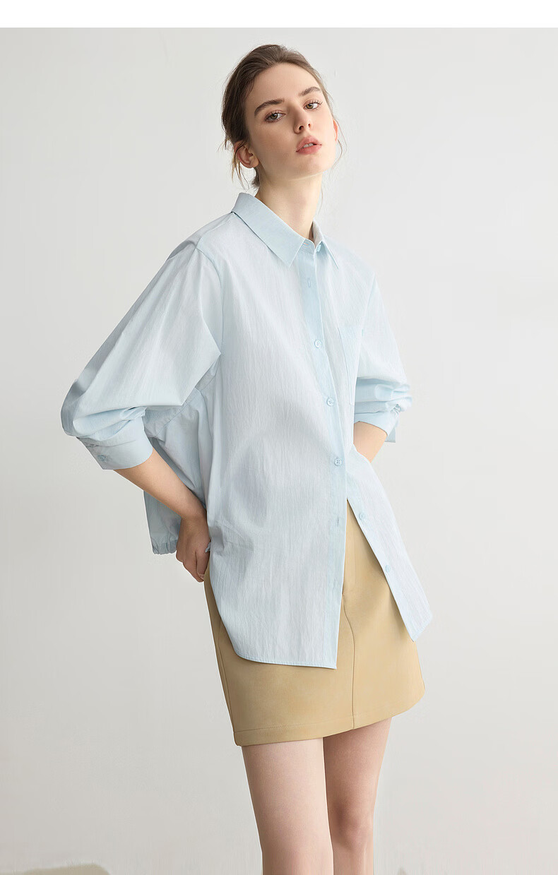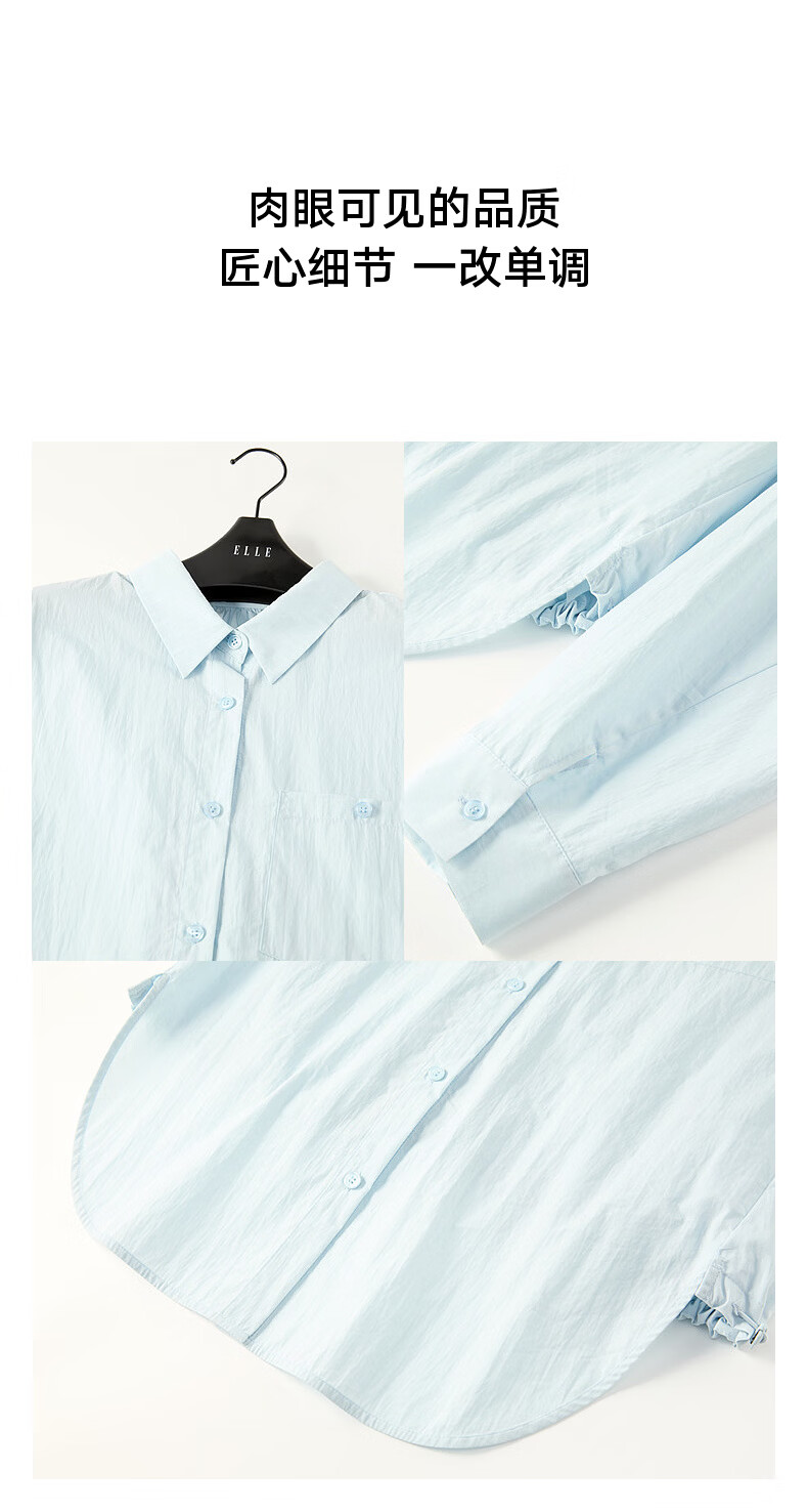 ELLE blue high-end loose long-sleeved shirt for women 2026 spring new lapel commuter style fashionable shirt blue S