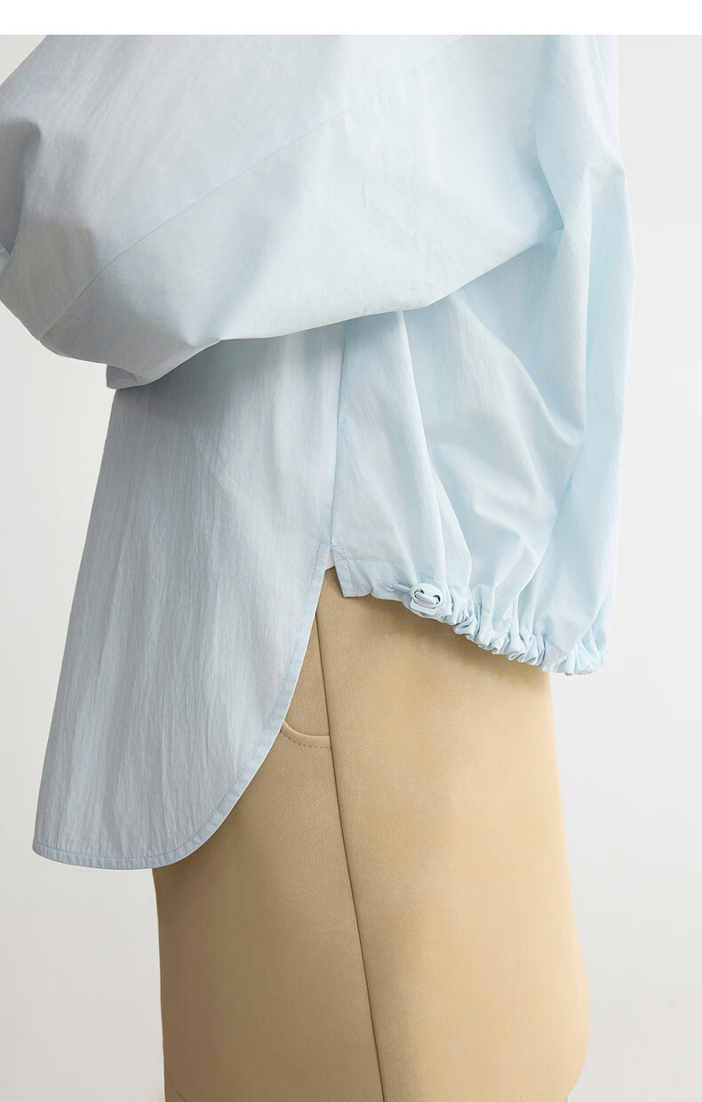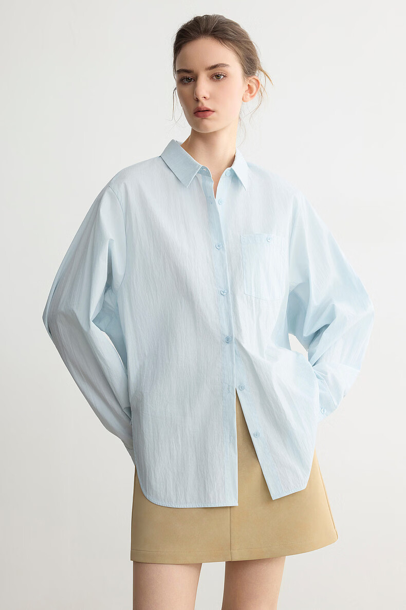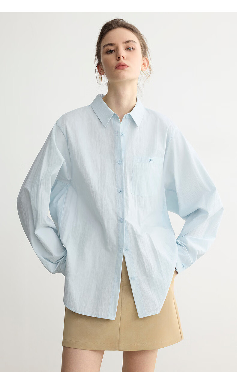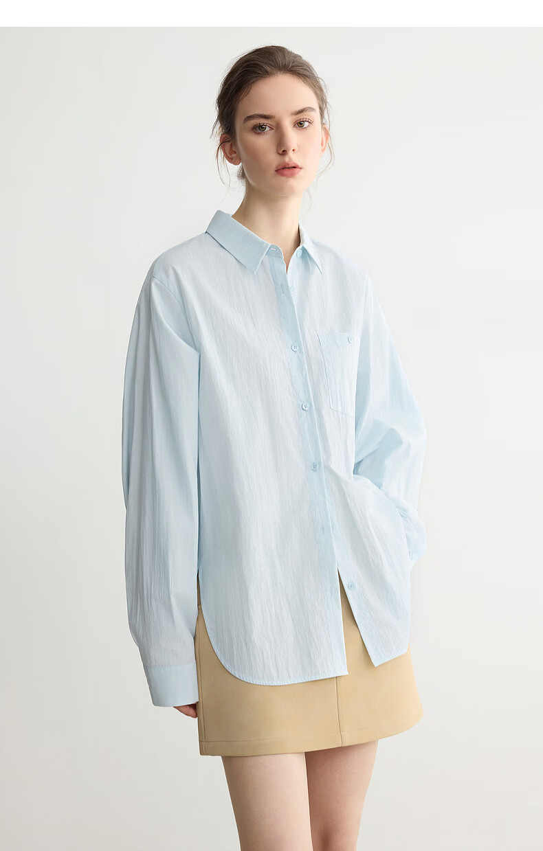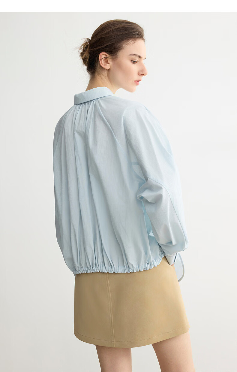ELLE blue high-end loose long-sleeved shirt for women 2026 spring new lapel commuter style fashionable shirt blue S