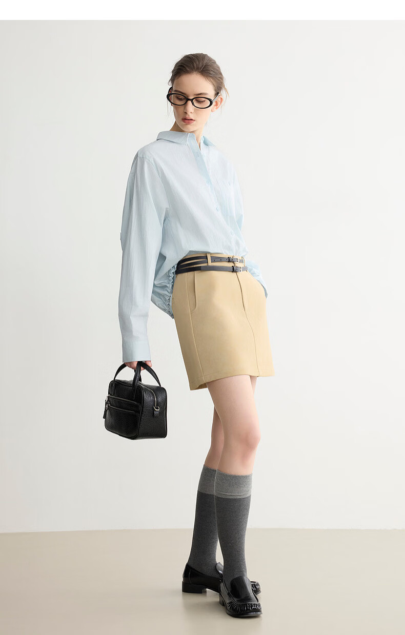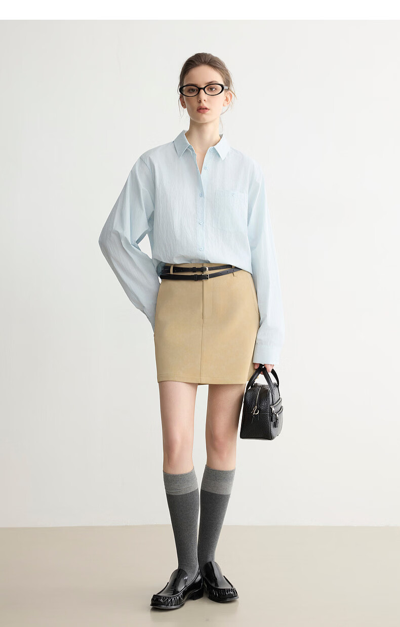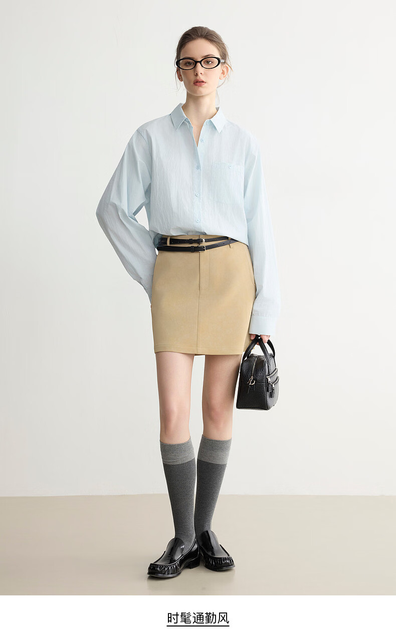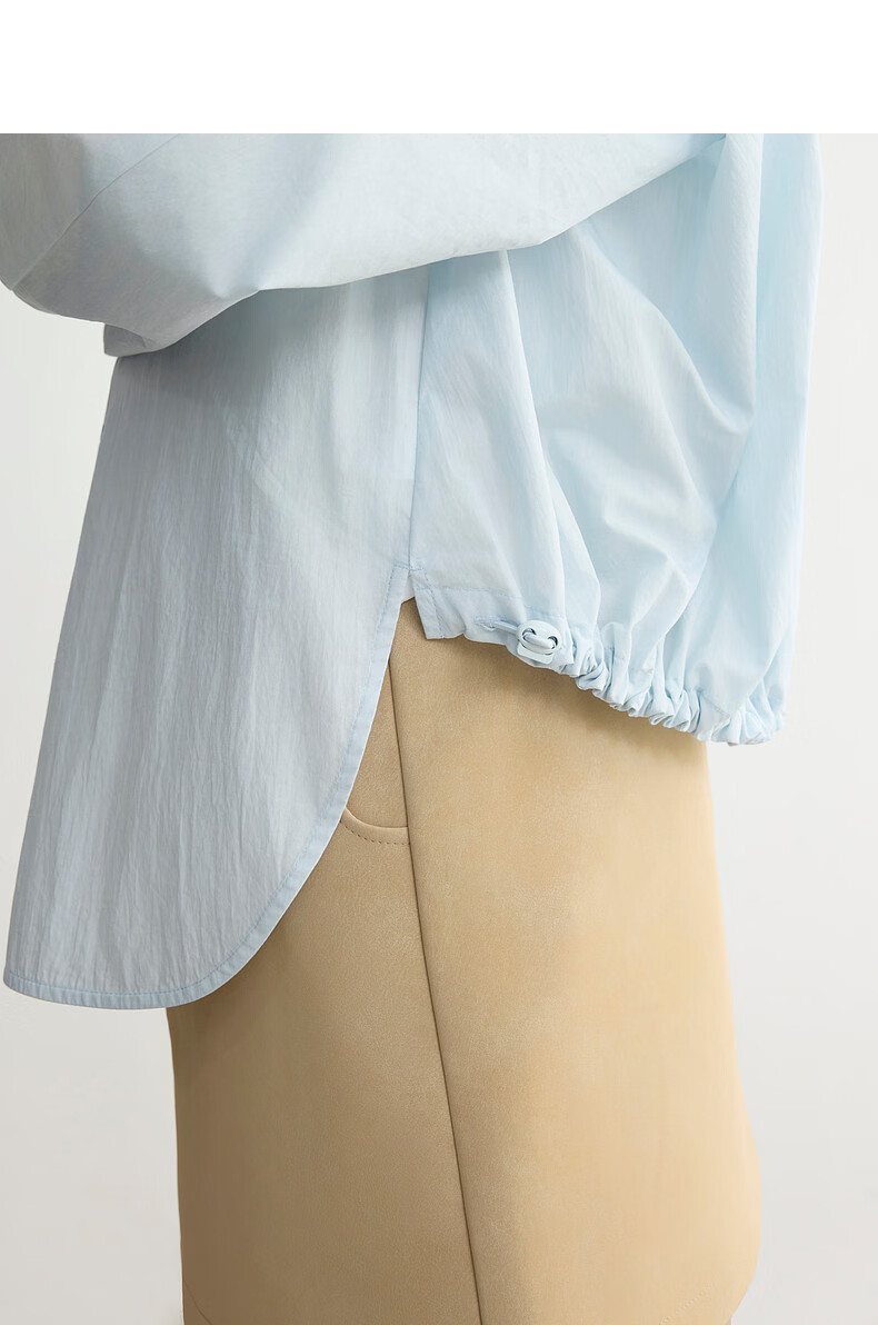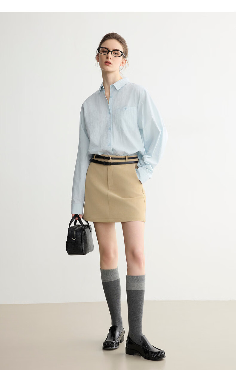 ELLE blue high-end loose long-sleeved shirt for women 2026 spring new lapel commuter style fashionable shirt blue S