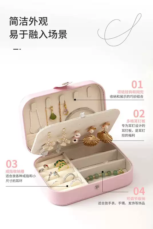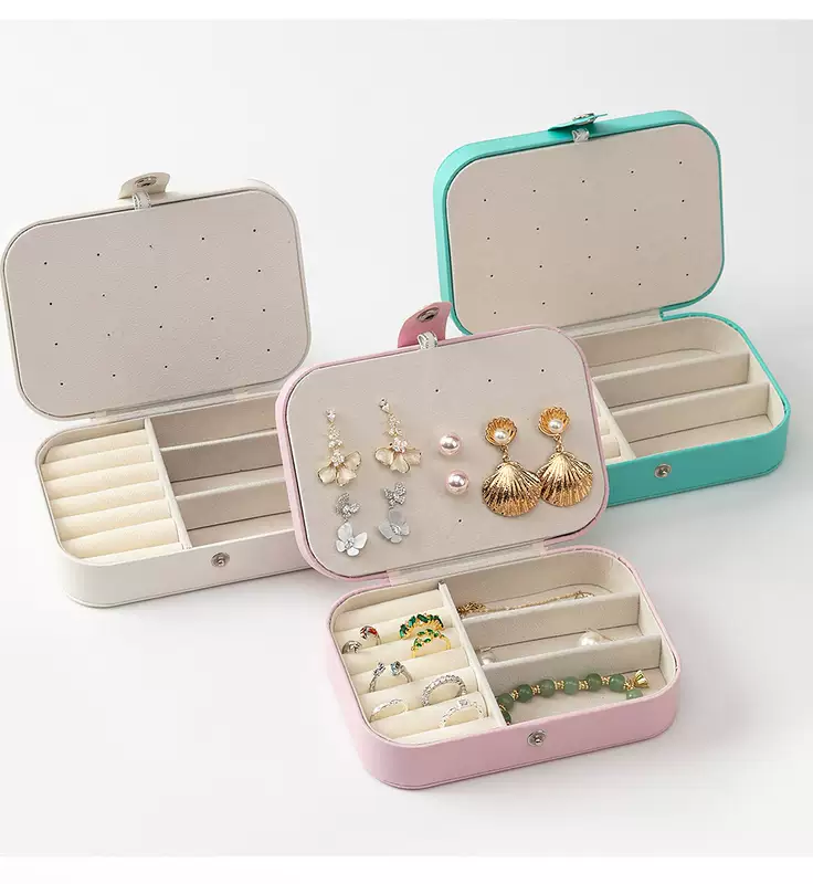 Yusenyi jewelry storage box simple high-end jewelry box earrings necklace ring high-end small portable women's earring jewelry box single layer blue and white can hold bracelets 16x11.5x5cm