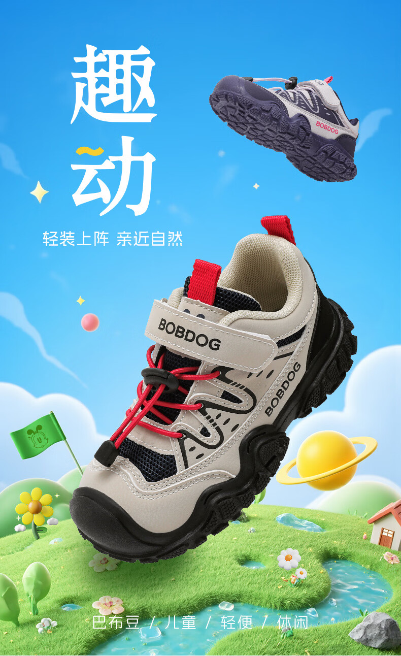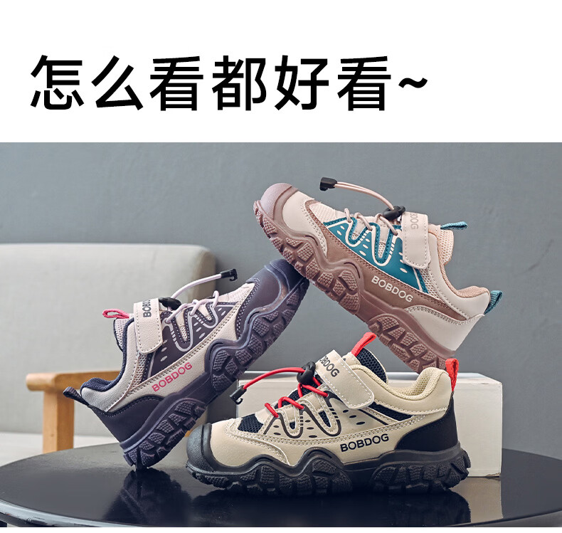 BOBDOG Children's Shoes Boys Mesh Sports Shoes 2026 Spring New Big Children Boys Casual Shoes Children's Shoes Women Light Rice/Black 30 Suitable for Feet Length 18.3CM