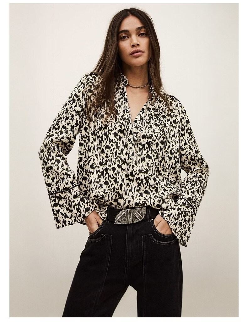 Ba&shbash2026 new early spring retro holiday style printed shirt temperament top women's long-sleeved shirt 1E26PIA ECRU L 2