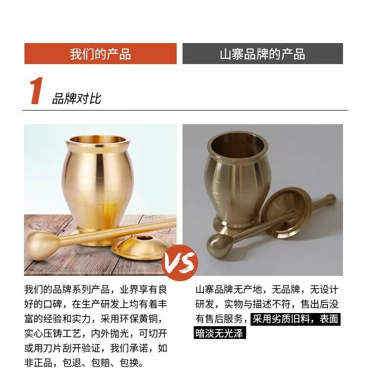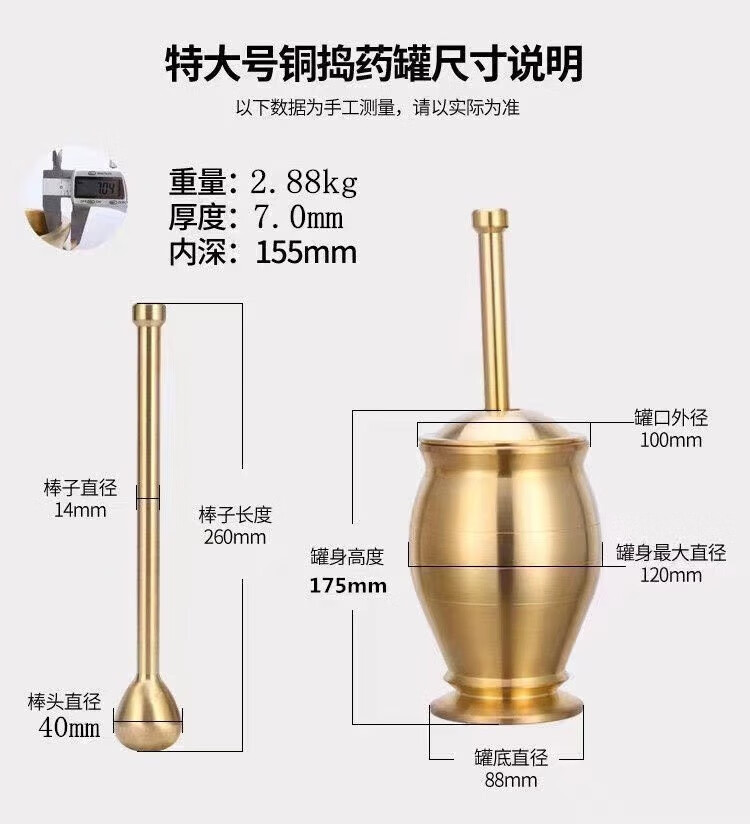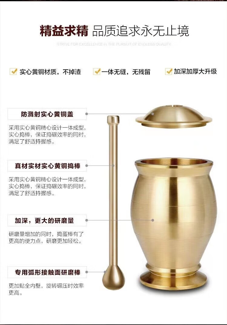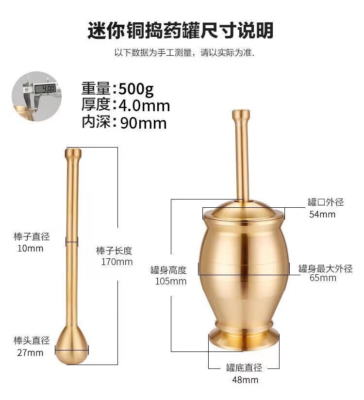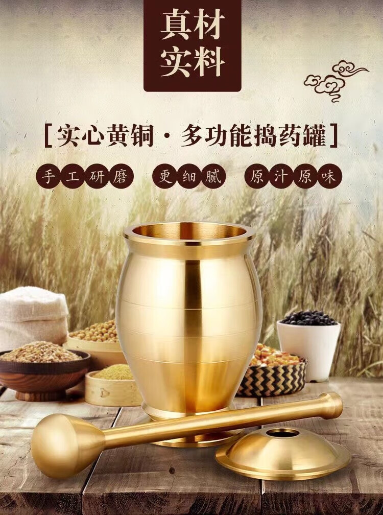 Chengfeng pure copper mashing jar, pestle, medicine cup, mortar, mortar, mortar, mortar, brass cup, masher, garlic paste grinder, solid brass mashing jar, medium size