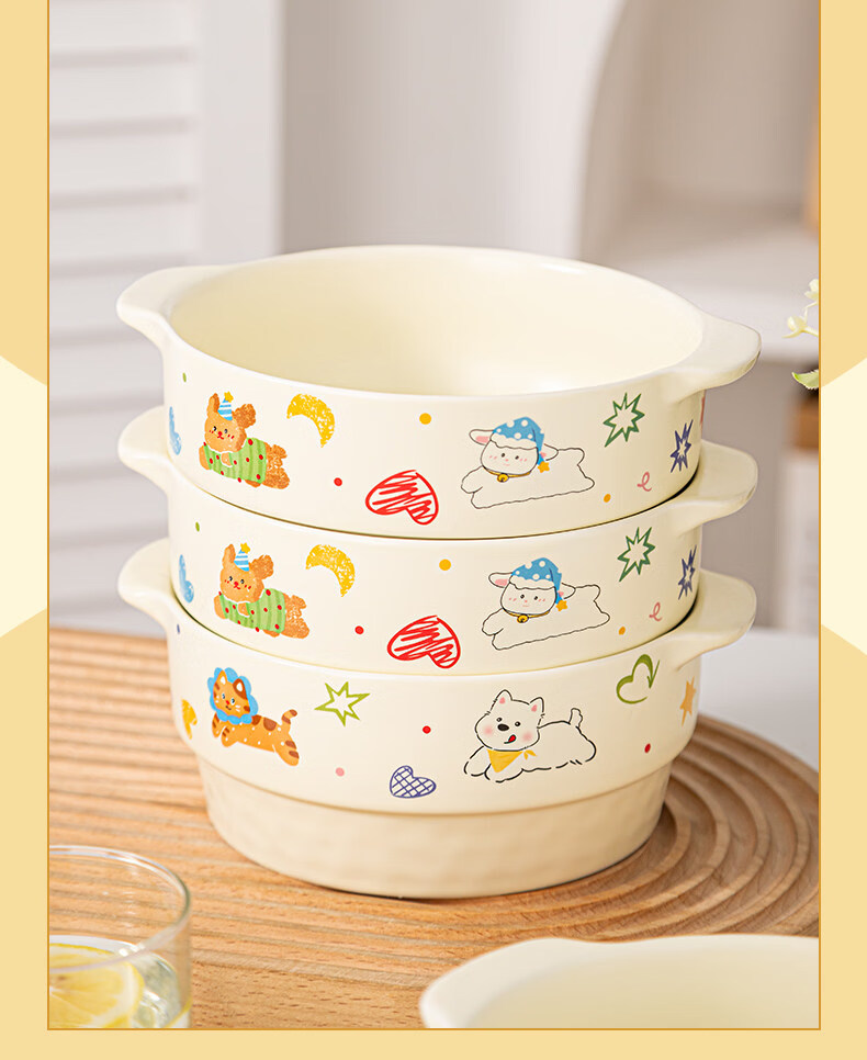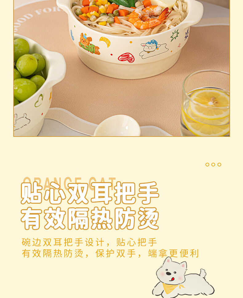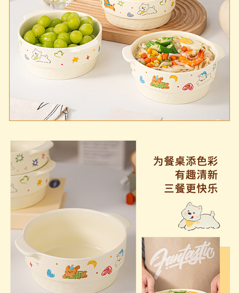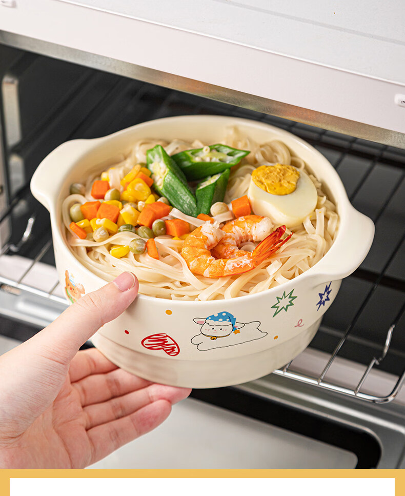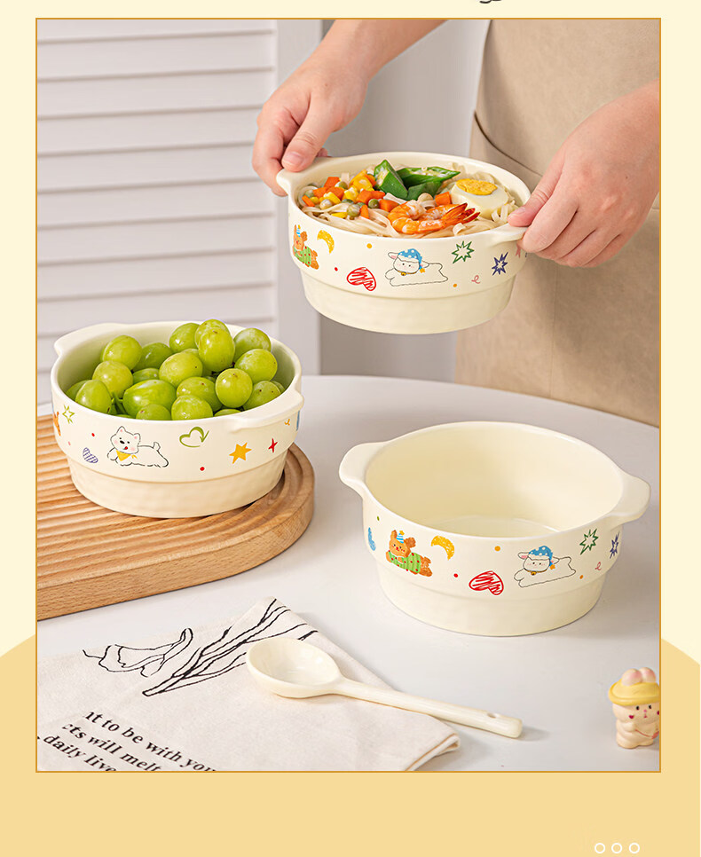 Tuojin cute double-eared soup bowl for home use 2026 new high-looking large bowl noodle soup bowl snail noodle bowl ceramic instant noodle bowl 7.75-inch double-eared bowl