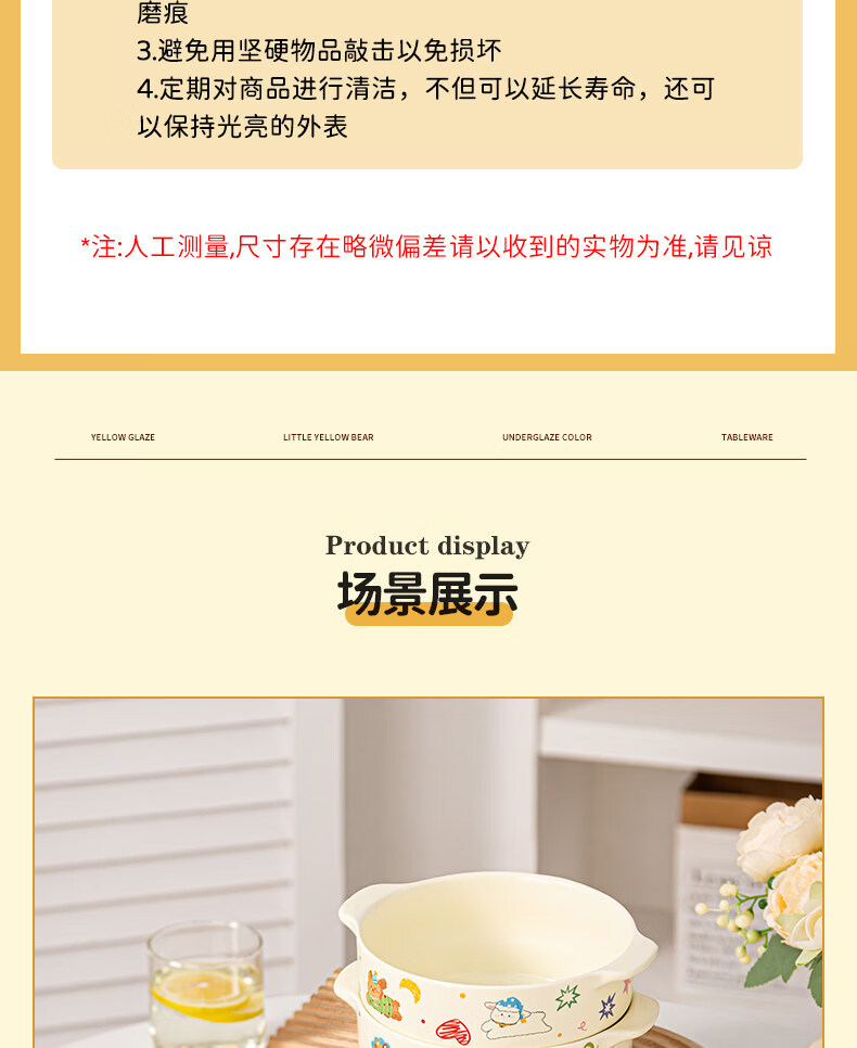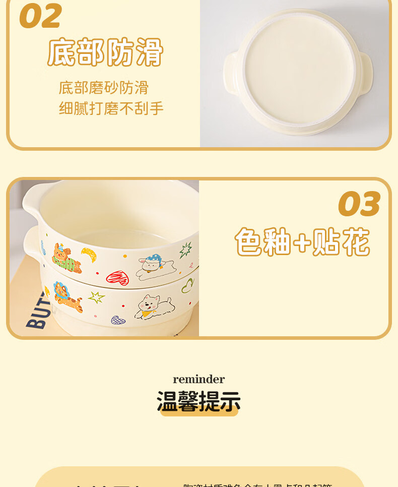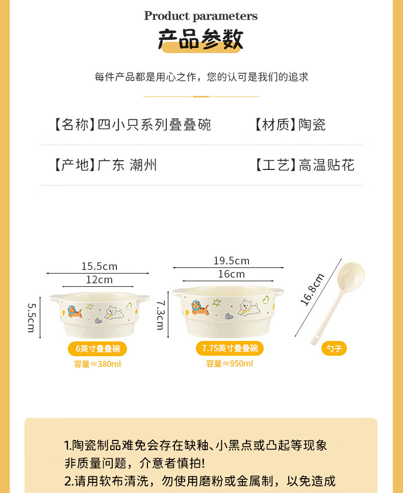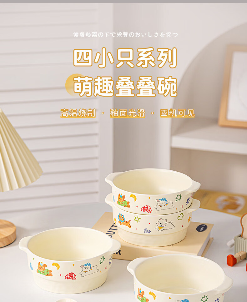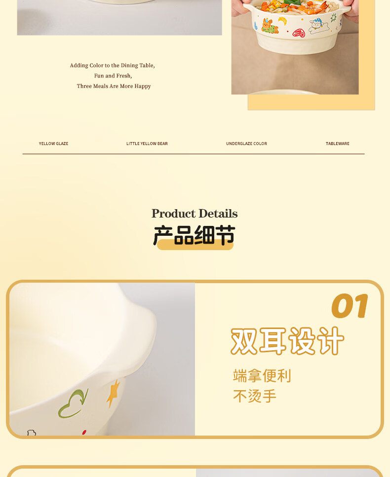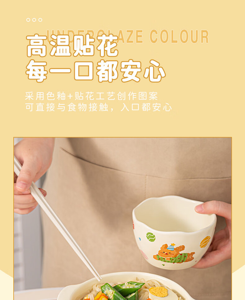 Tuojin cute double-eared soup bowl for home use 2026 new high-looking large bowl noodle soup bowl snail noodle bowl ceramic instant noodle bowl 7.75-inch double-eared bowl
